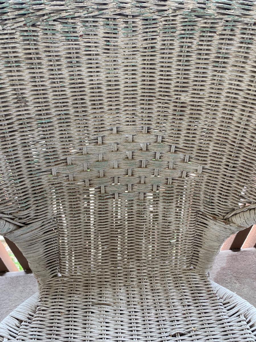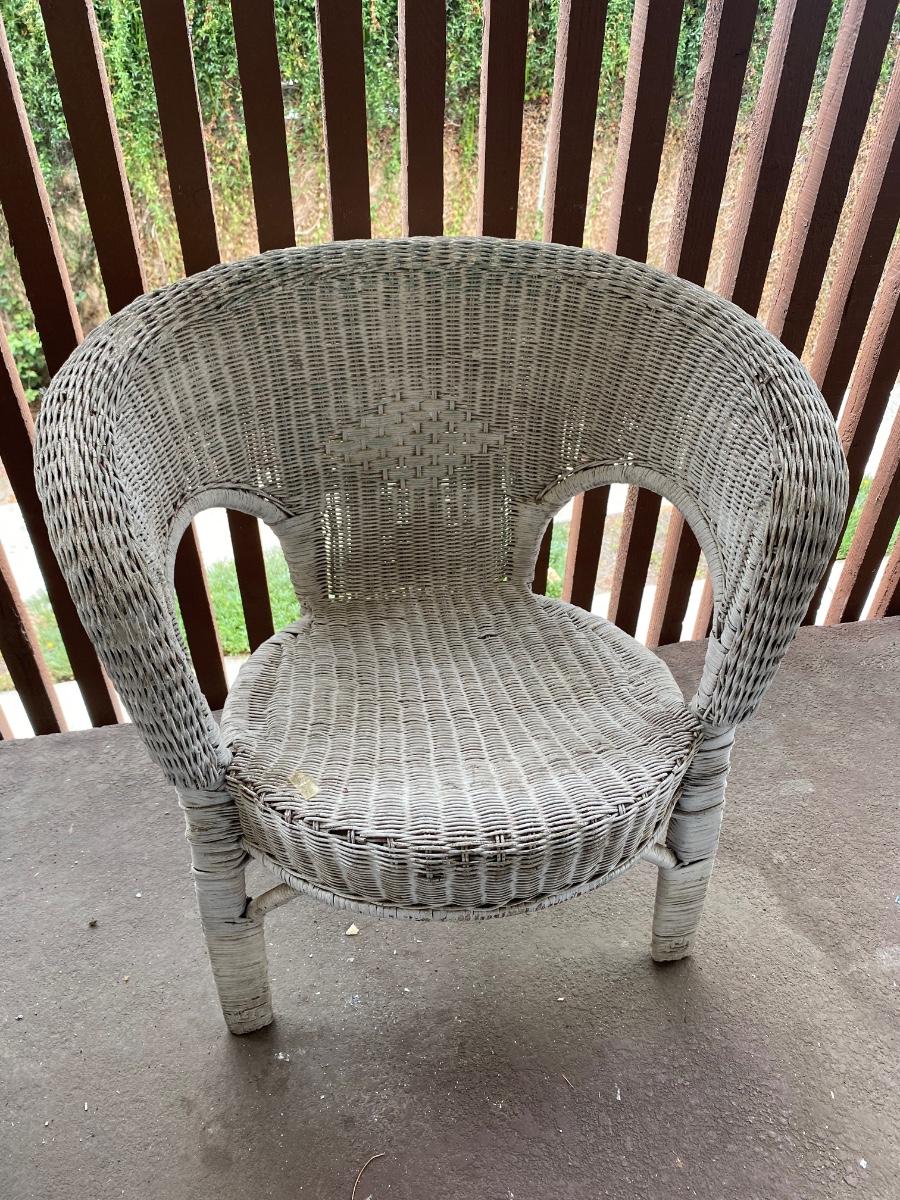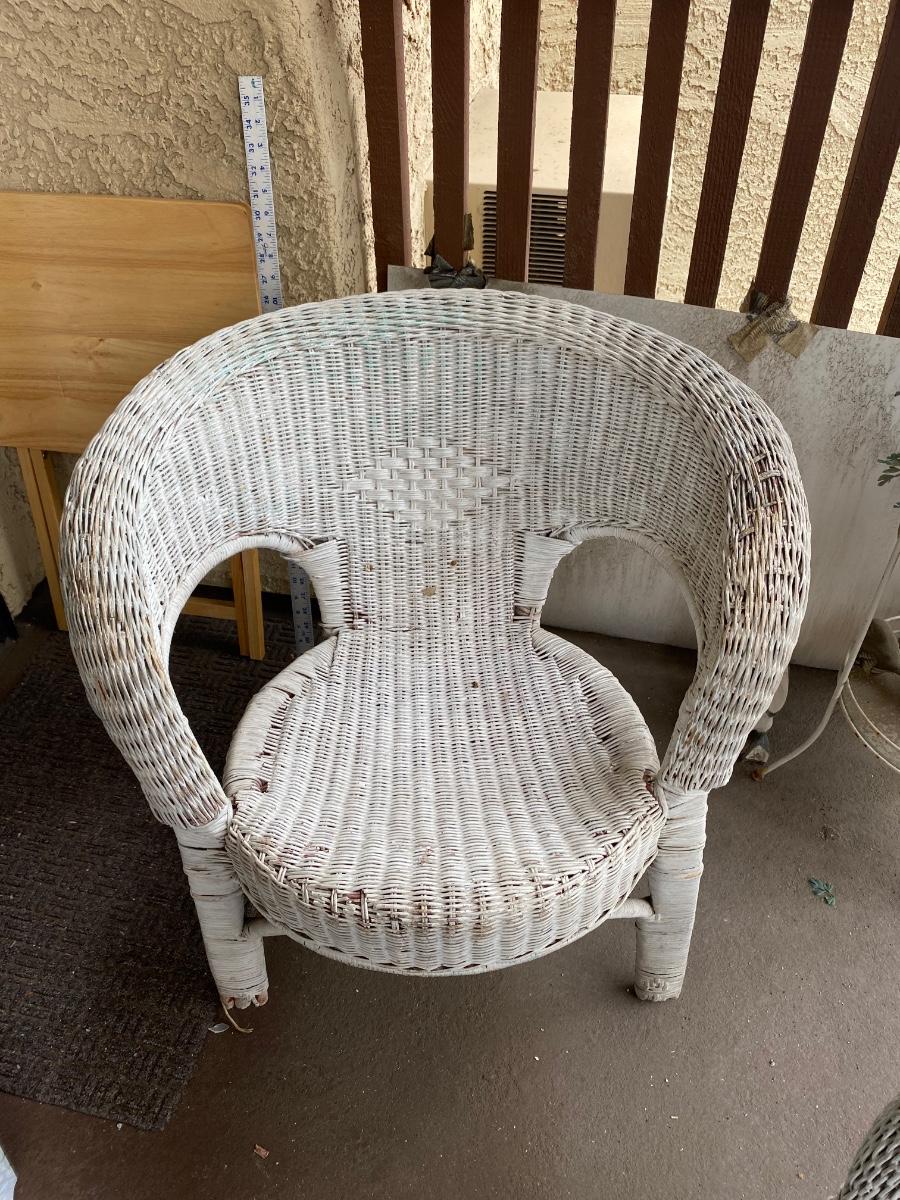Vintage Barrel Style Rattan Wicker Chairs Set of 2. In good weathered condition. No holes in weave, do need to be repainted. Sturdy. About 28" at top of back. **LOCAL PICK UP IN BREA OFF SITE, OWNER DOWNSIZING. PICK UP WILL BE SCHEDULED WITH WINNING BIDDER FOR AFTER JULY 14TH.