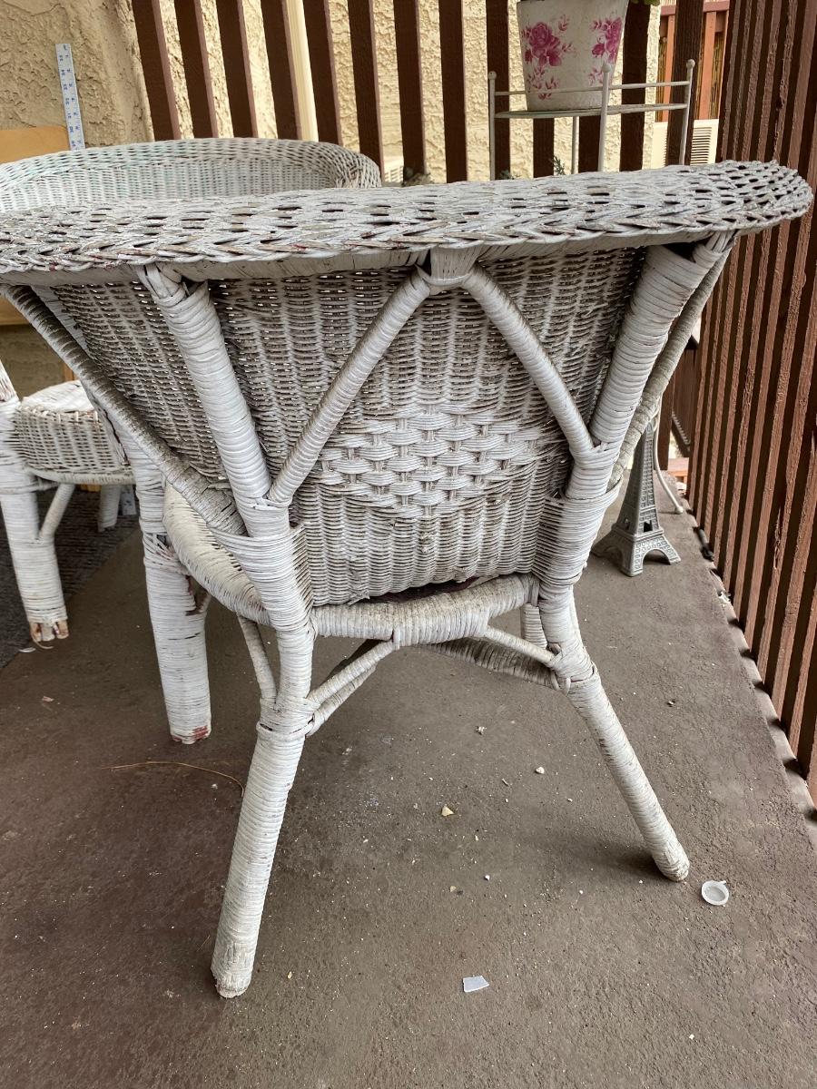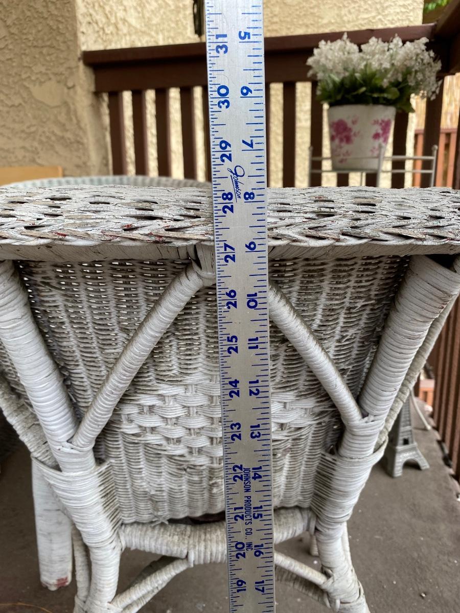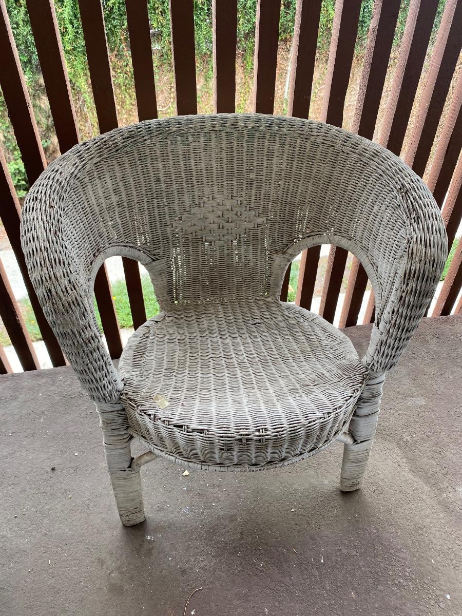 Vintage Barrel Style Rattan Wicker Chairs Set of 2. In good weathered condition. No holes in weave, do need to be repainted. Sturdy. About 28" at top of back. **LOCAL PICK UP IN BREA OFF SITE, OWNER DOWNSIZING. PICK UP WILL BE SCHEDULED WITH WINNING BIDDER FOR AFTER JULY 14TH.