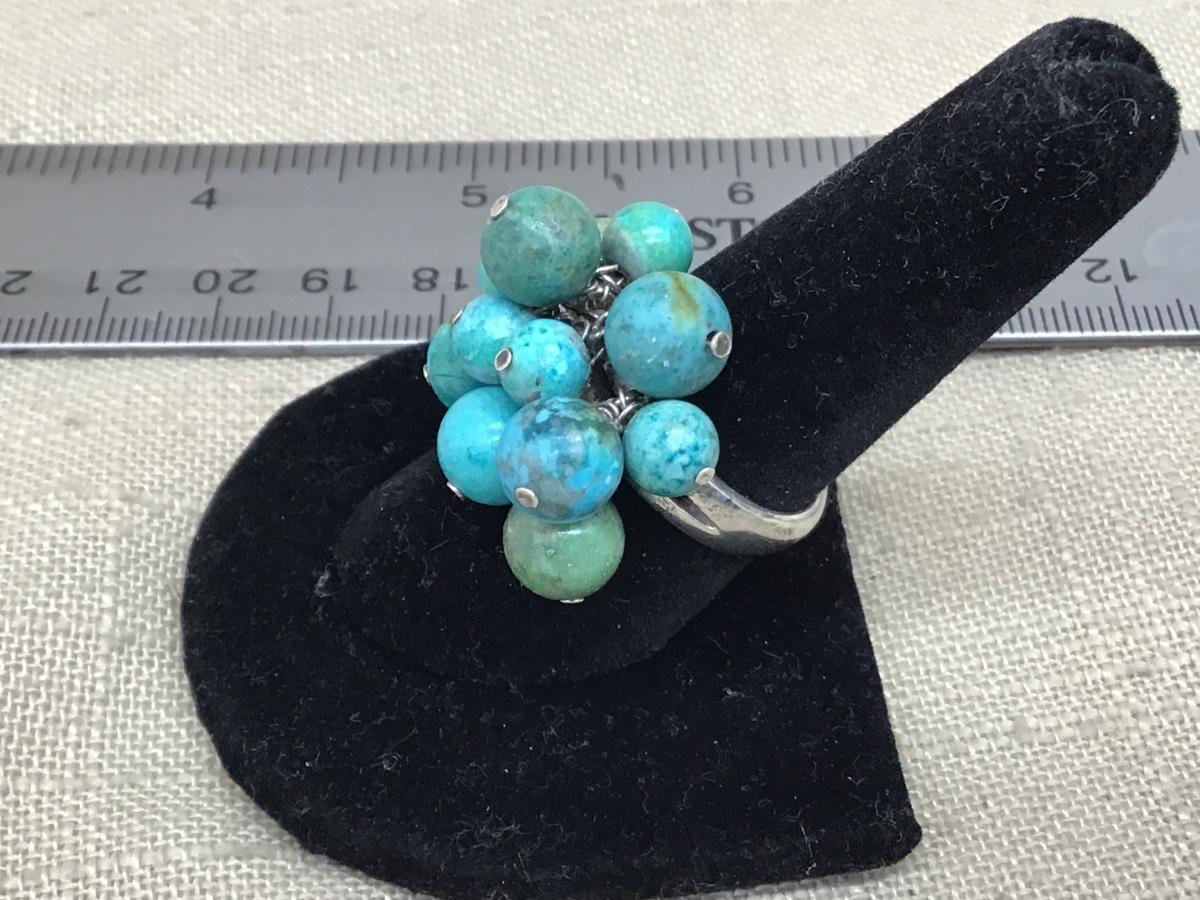Vintage Barse Turquoise 925 Silver Cluster Ring