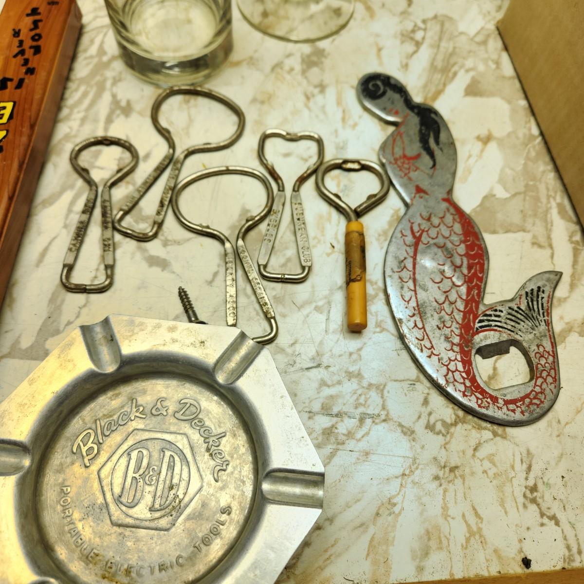 Vintage Barware Lot Coke Coca-Cola wall Bottle Opener beer glasses