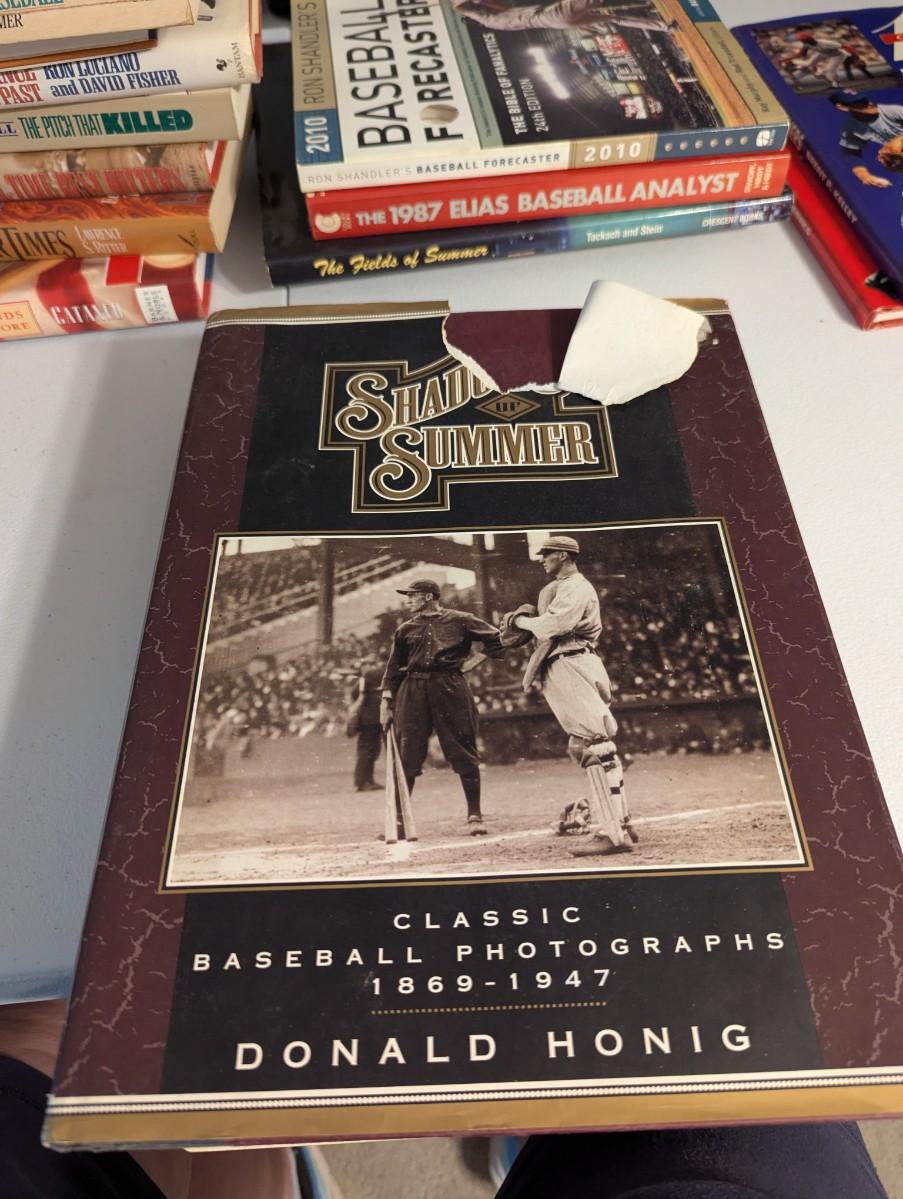 Books have been stored down stairs and have foxing - - Books are down stairs there is a sliding door to go out at the back of the house and go up some stairs to the driveway