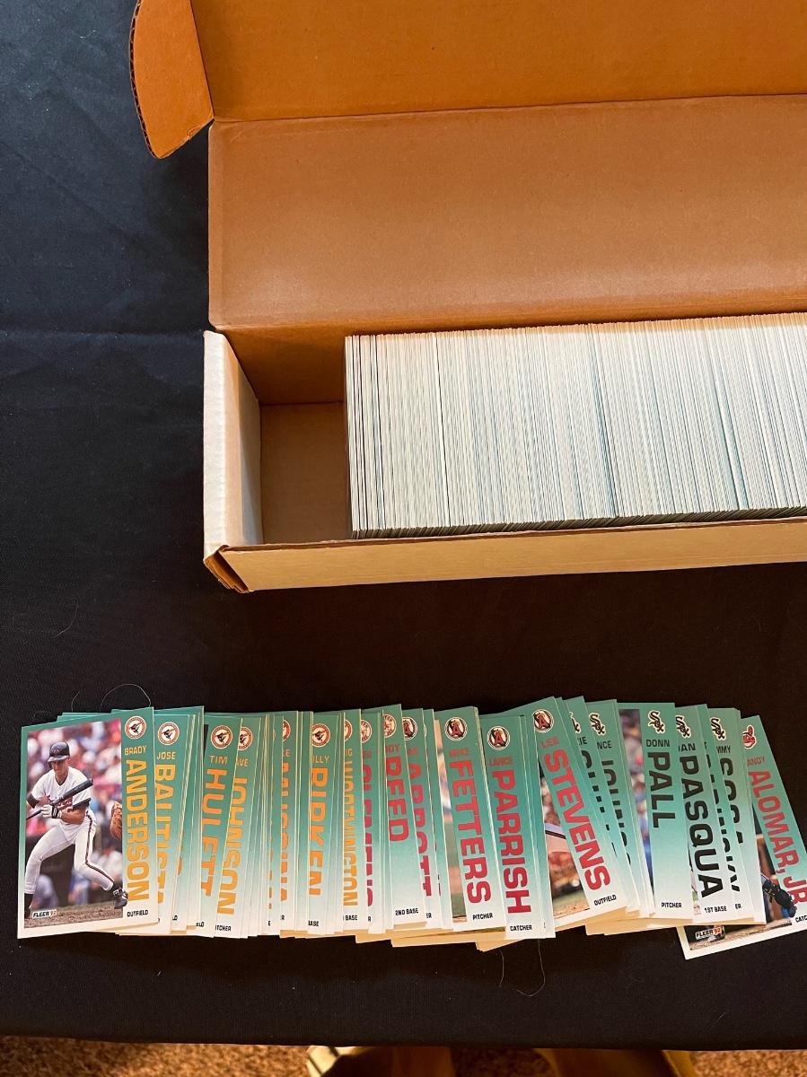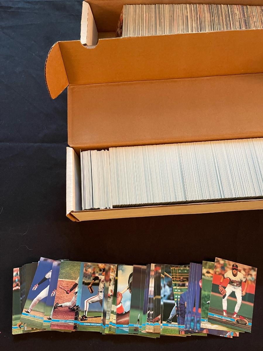 Complete 1992 Fleer baseball card collection, inc., doubles in alphabetical name and team order, 1991 Topps stadium club baseball card collection, Tuff Stuff authors/publications//signatures.