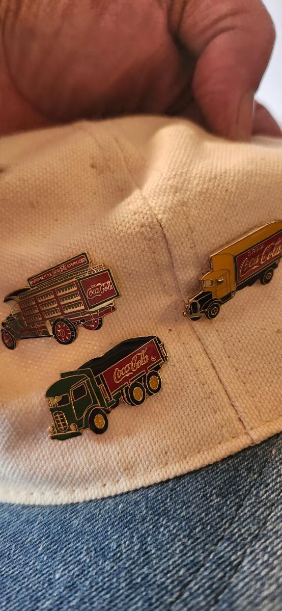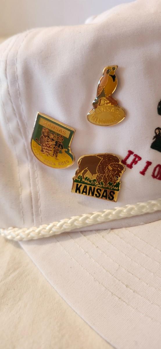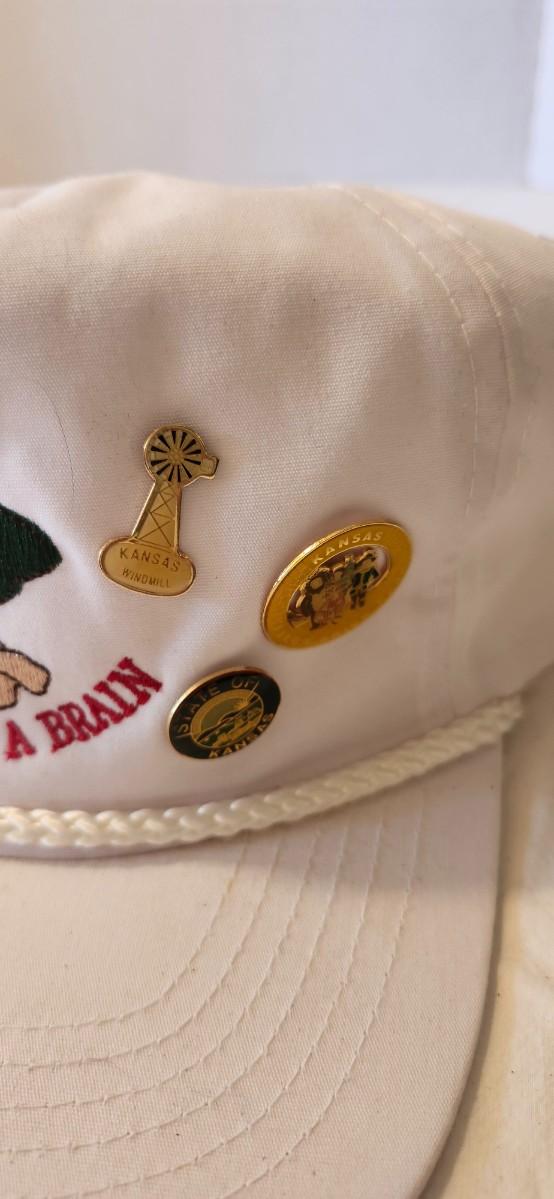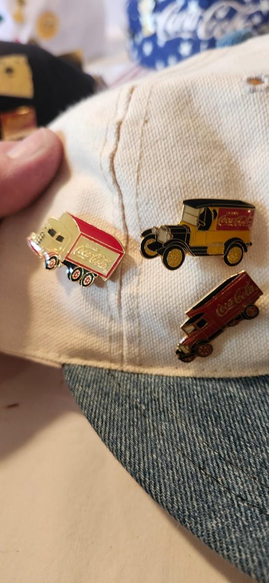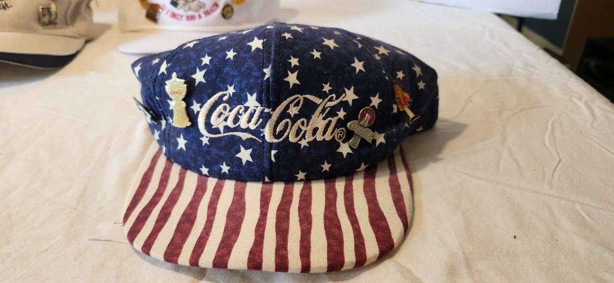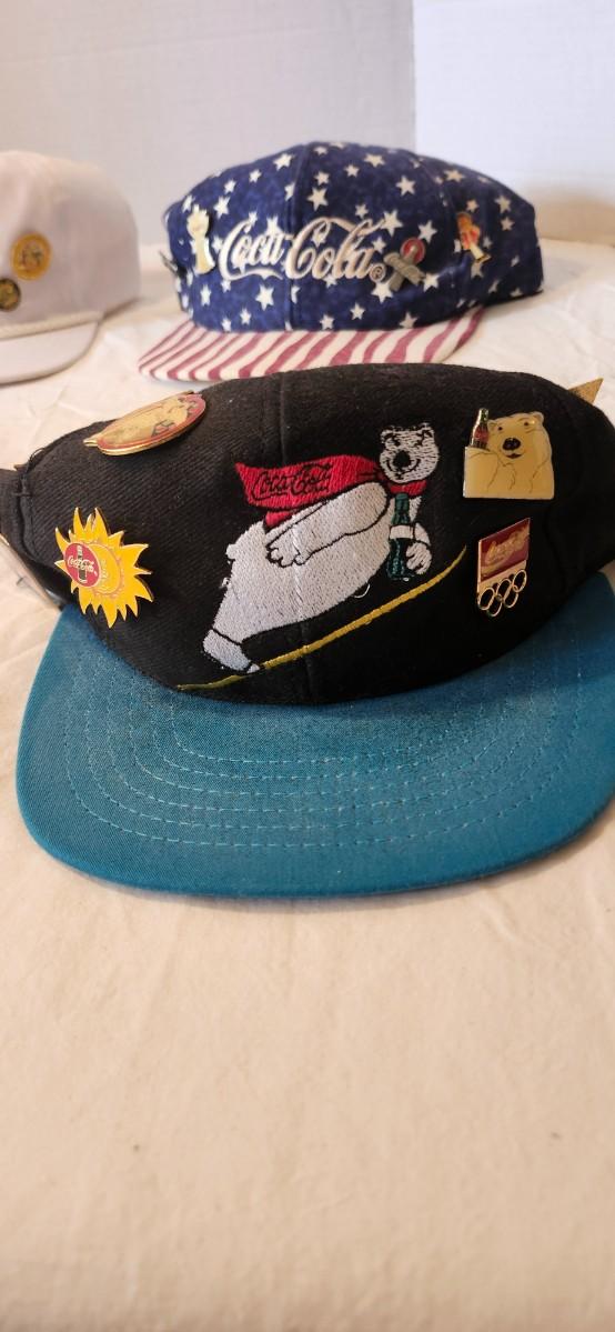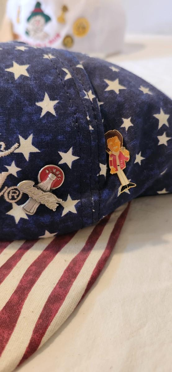 Vintage Baseballs Caps and Vintage Enamel Pins, including Coca-Cola and Felix the cat