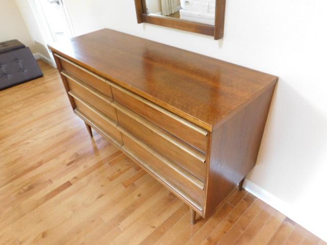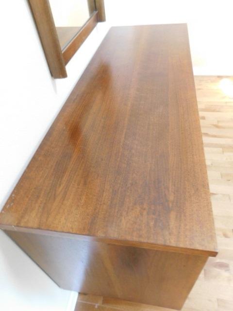Vintage Bassett 6 Drawer Stretch Dresser with Separate Mirror 52"x18"x30" expect some wear or scratches to surface. Main floor