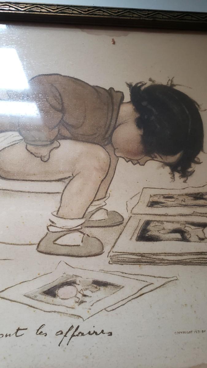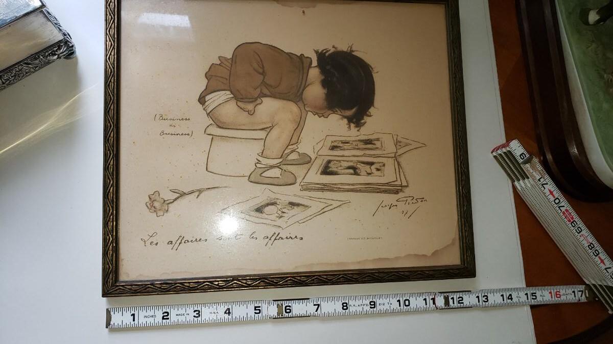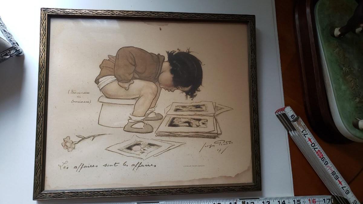Vintage bathroom print with a little water damage perfect for a bathroom