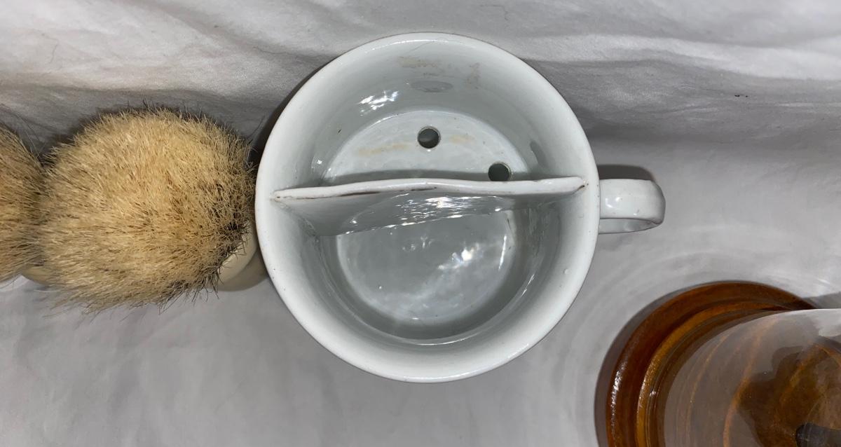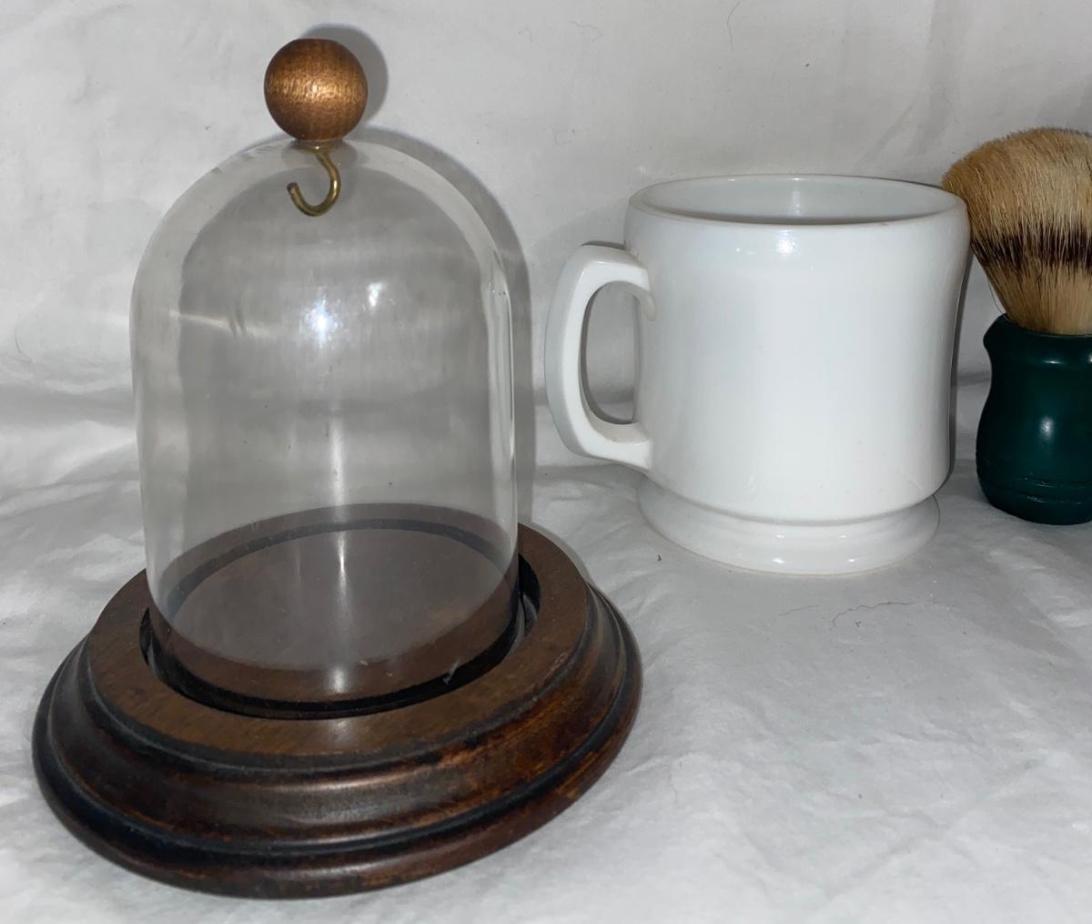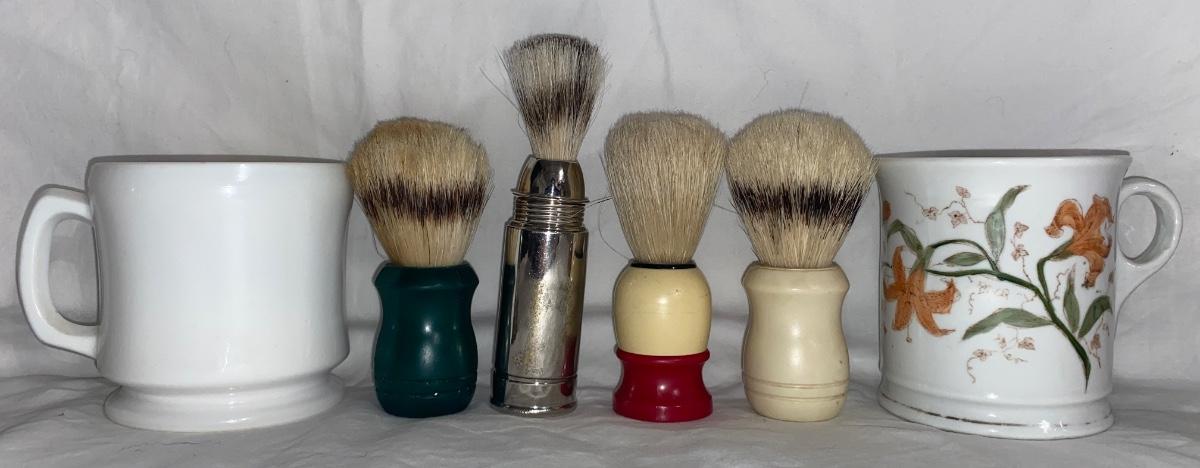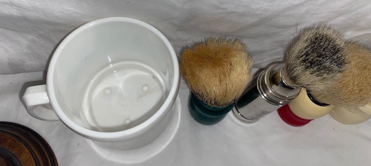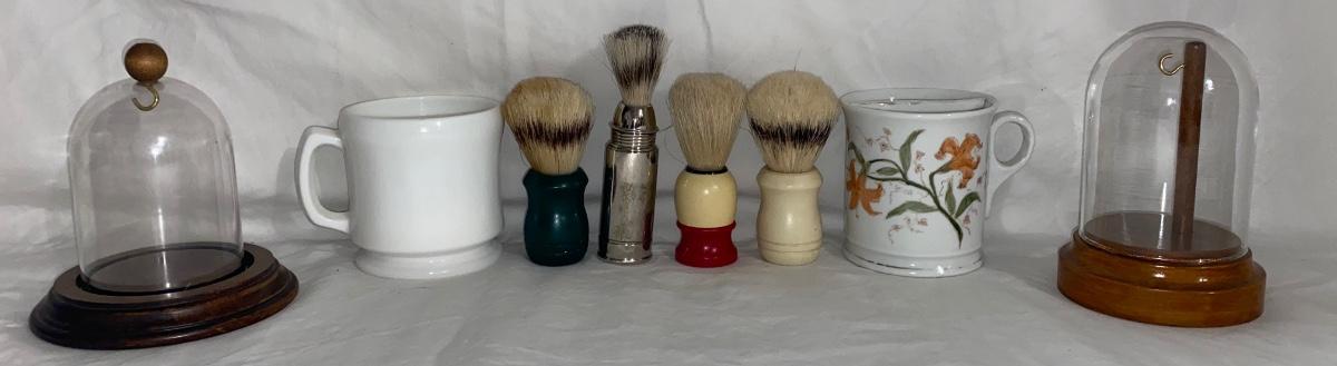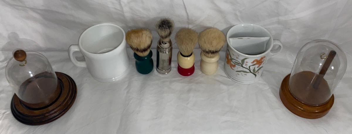 Vintage bath/shaving items and vintage display cases. All preowned and sold as is