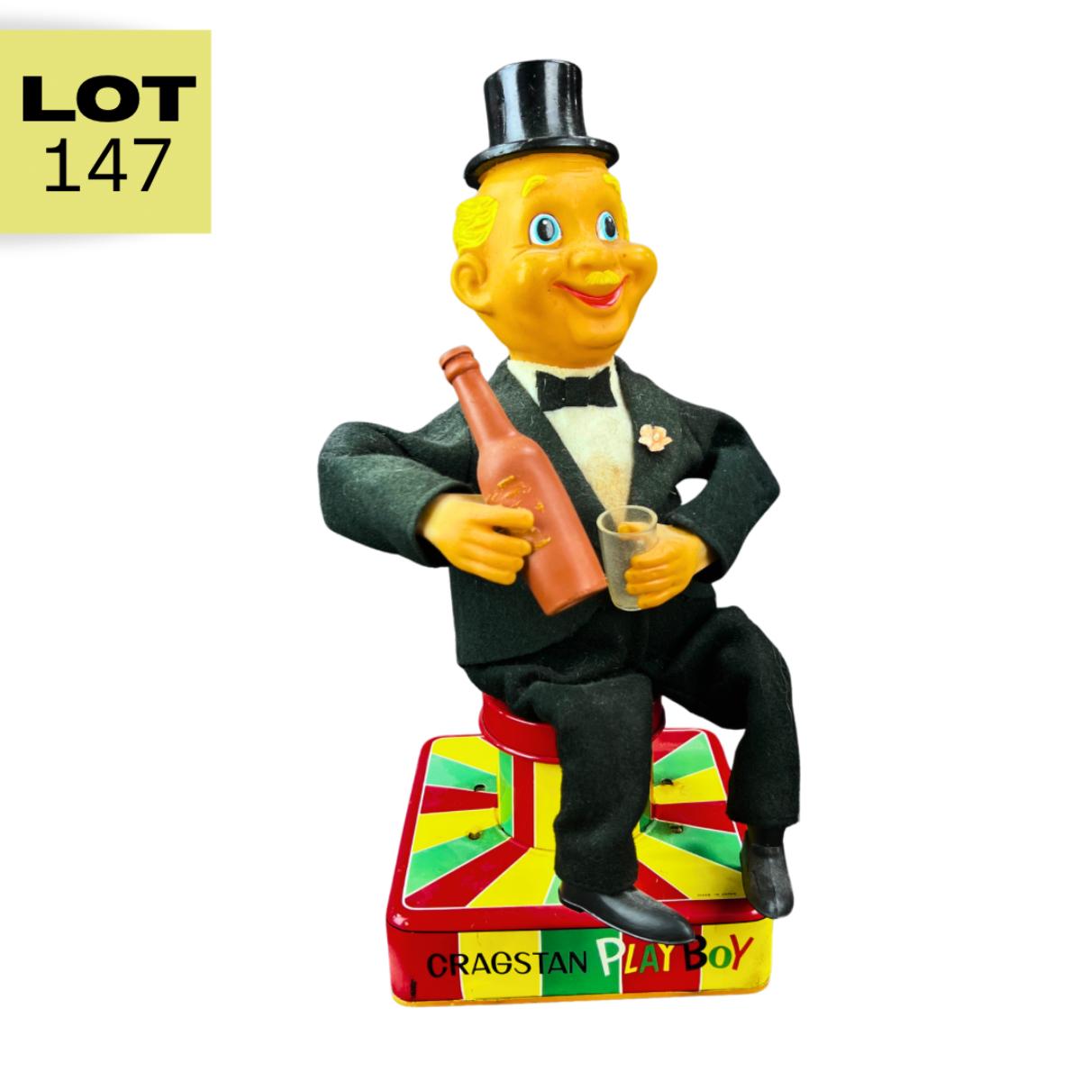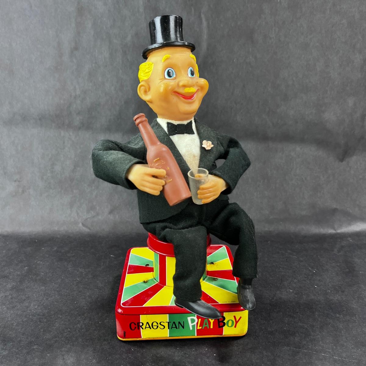 The Cragstan Playboy really knows how to throw a party. Produced by Cragstan in the 1960s and 70s. You'll know it's a Cragstan toy because it has their name plastered all over it. This toy DOES NOT work. Please see photos for details and condition. **|** ::: Shipping is available on this lot. If you require shipping you must let us know at the close of the auction. We will coordinate with you after the item has been won. Shipping fees will include insurance up to or exceeding the value of all items being mailed. If you have any questions regarding this lot please contact the auctioneer either via this website, by direct email or by phone. PICK UP TIMES and other important information can be found in the TERMS and DESCRIPTION of the auction. Please take a look for pertinent information. Thanks!