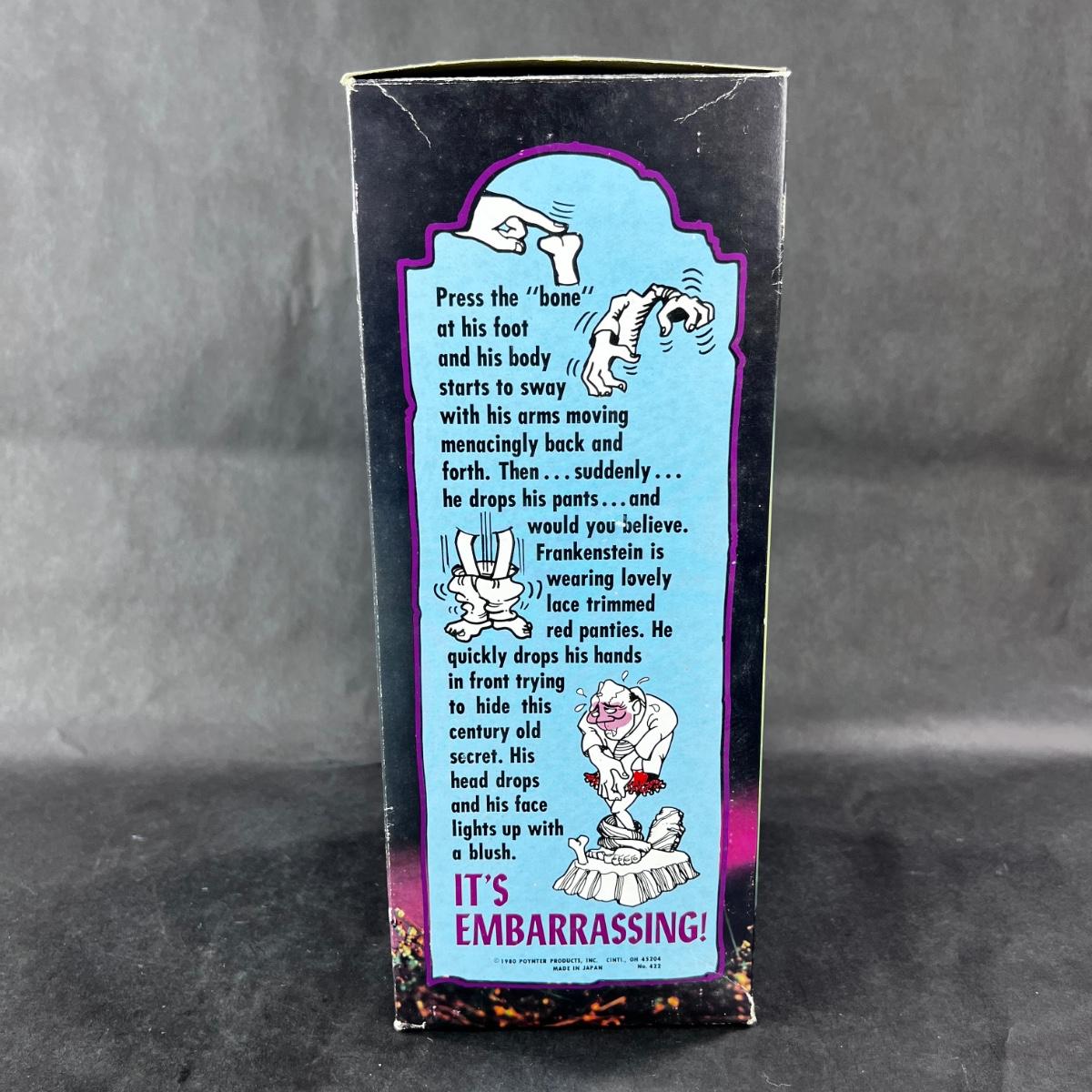 This Vintage Battery-Opp toy reveals Frankenstein's Secret - fancy panties. He groans back and forth, and then suddenly will drop his pants. We tried to get it filmed, but he's so shy. It does work though. **Works, Video of Function on YouTube Video, Clean - Uses Standard Batteries** **|** Please see photos for details and condition. ::: Shipping is available on this lot. If you require shipping you must let us know at the close of the auction. We will coordinate with you after the item has been won. Shipping fees will include insurance up to or exceeding the value of all items being mailed. If you have any questions regarding this lot please contact the auctioneer either via this website, by direct email or by phone. PICK UP TIMES and other important information can be found in the TERMS and DESCRIPTION of the auction. Please take a look for pertinent information. Thanks!
