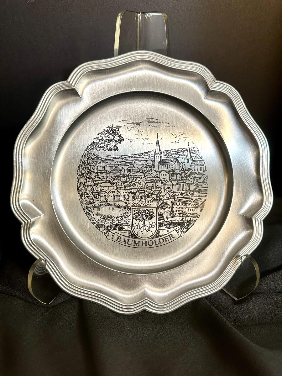 Purchased in Baumholder Germany in the 1980's. Heavy pewter display plate.