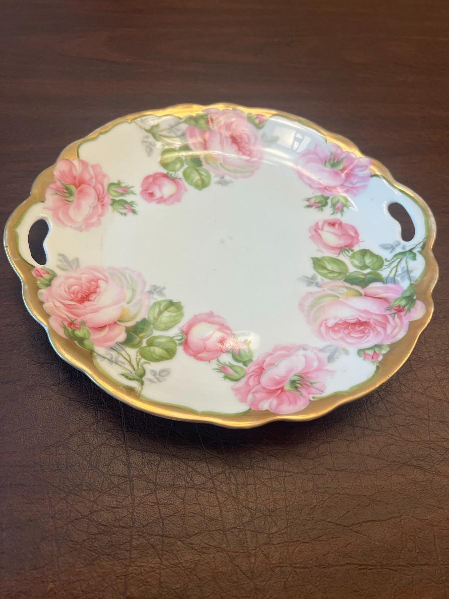 Vintage Bavarian Porcelain Rose Plate – Gold Trim & Handles