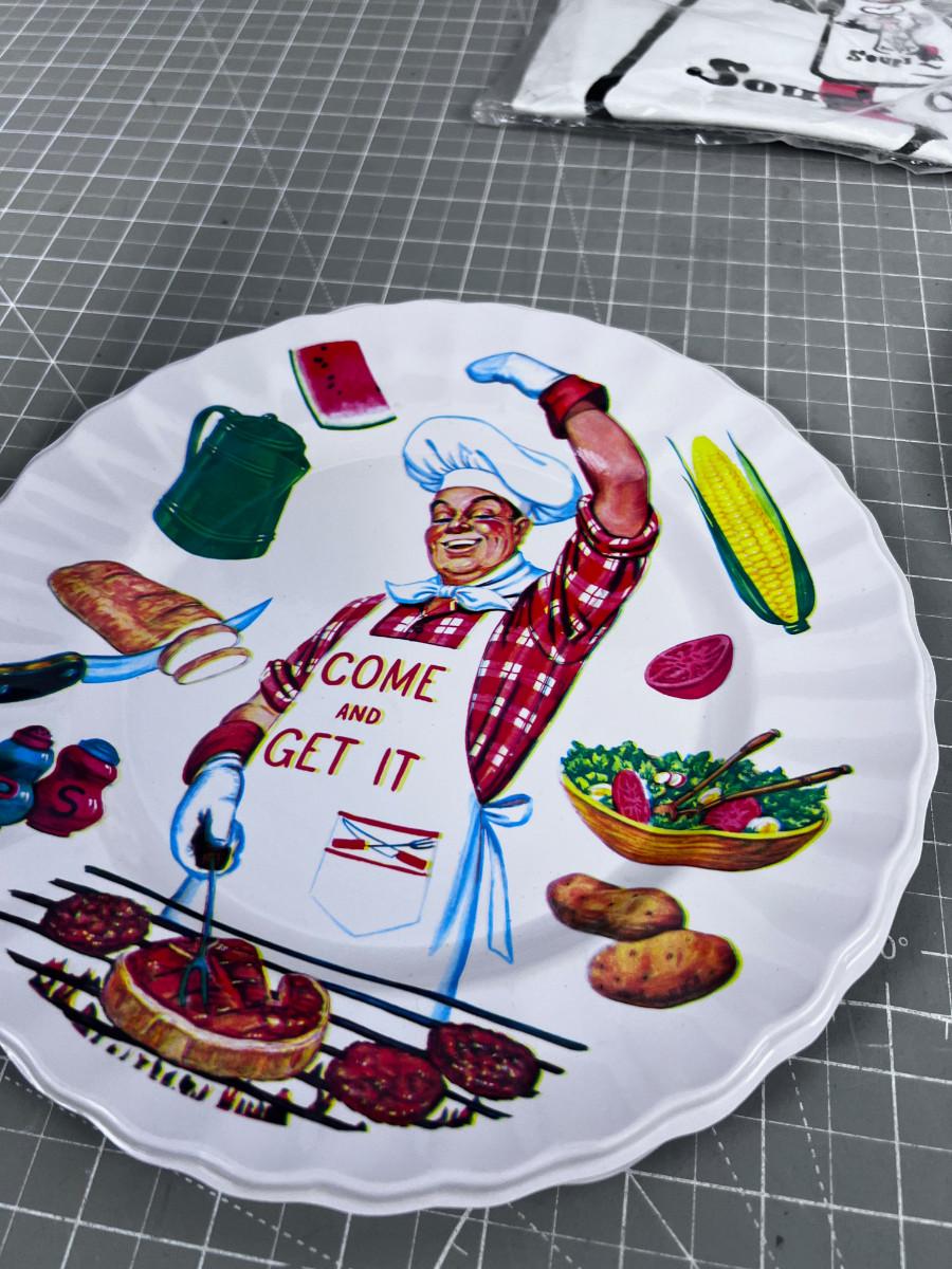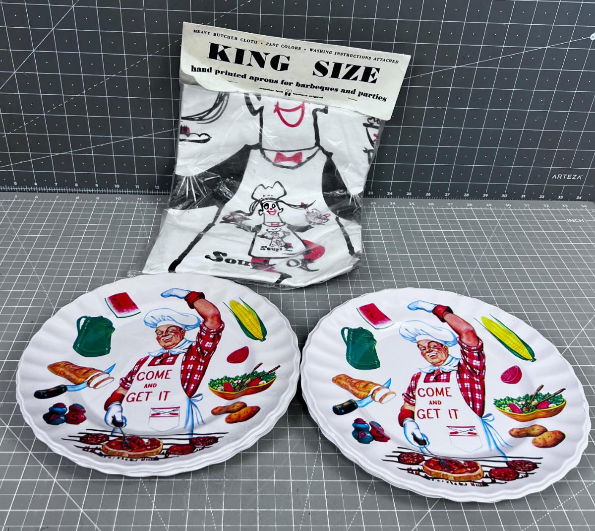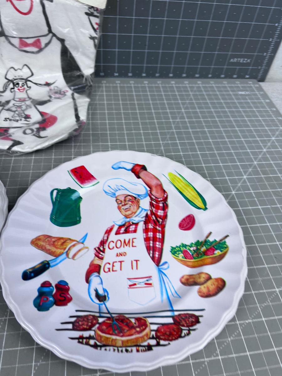 Vintage BBQ Apron and Plastic Plates