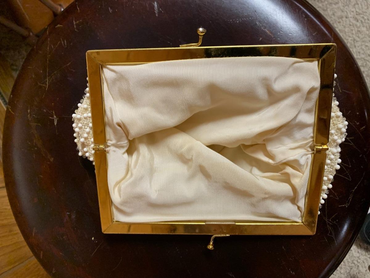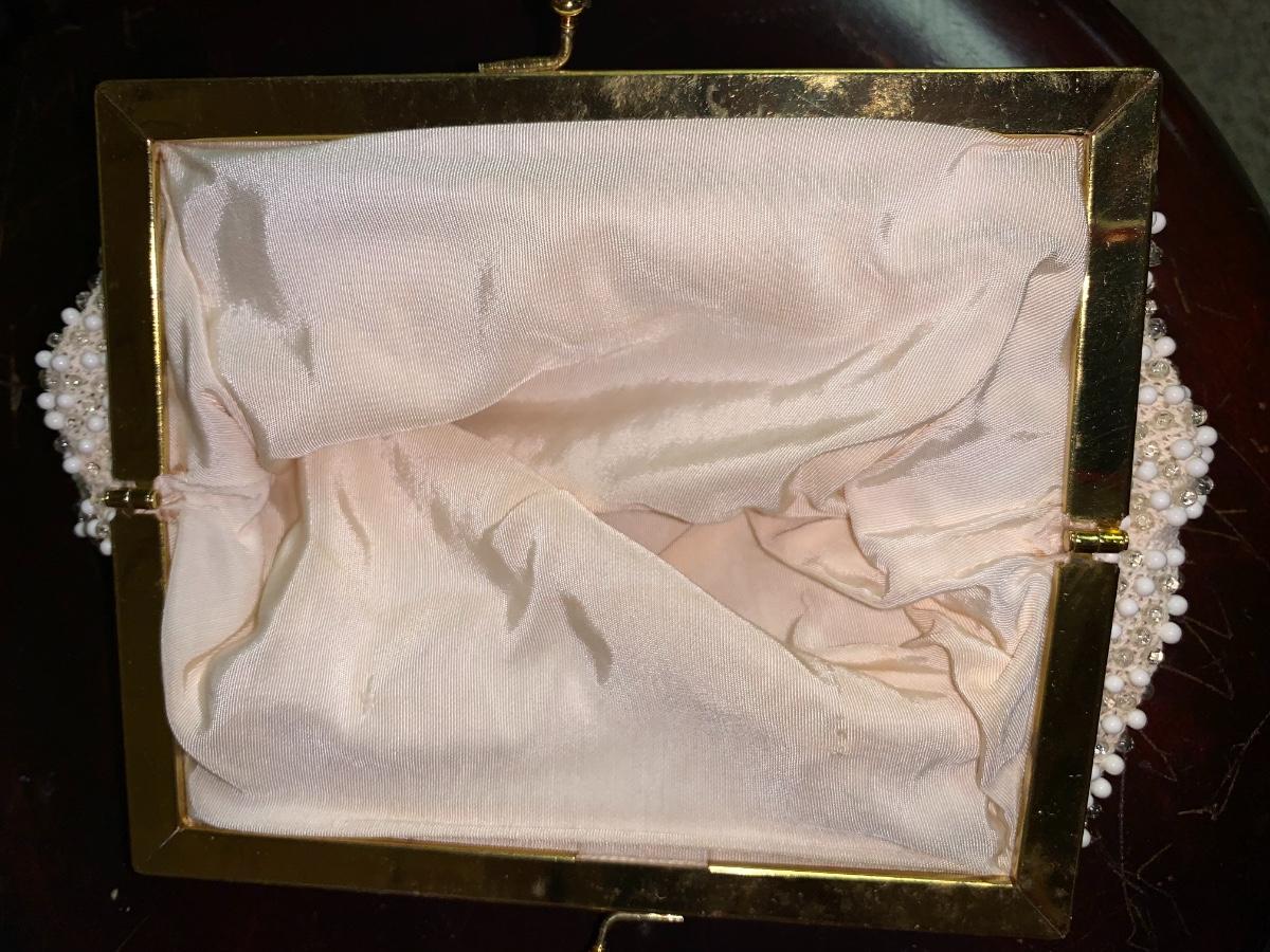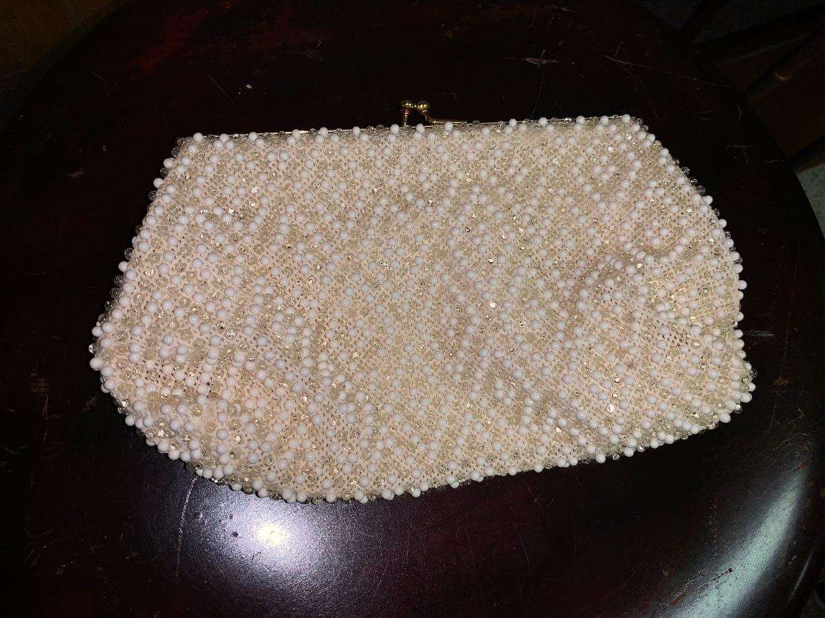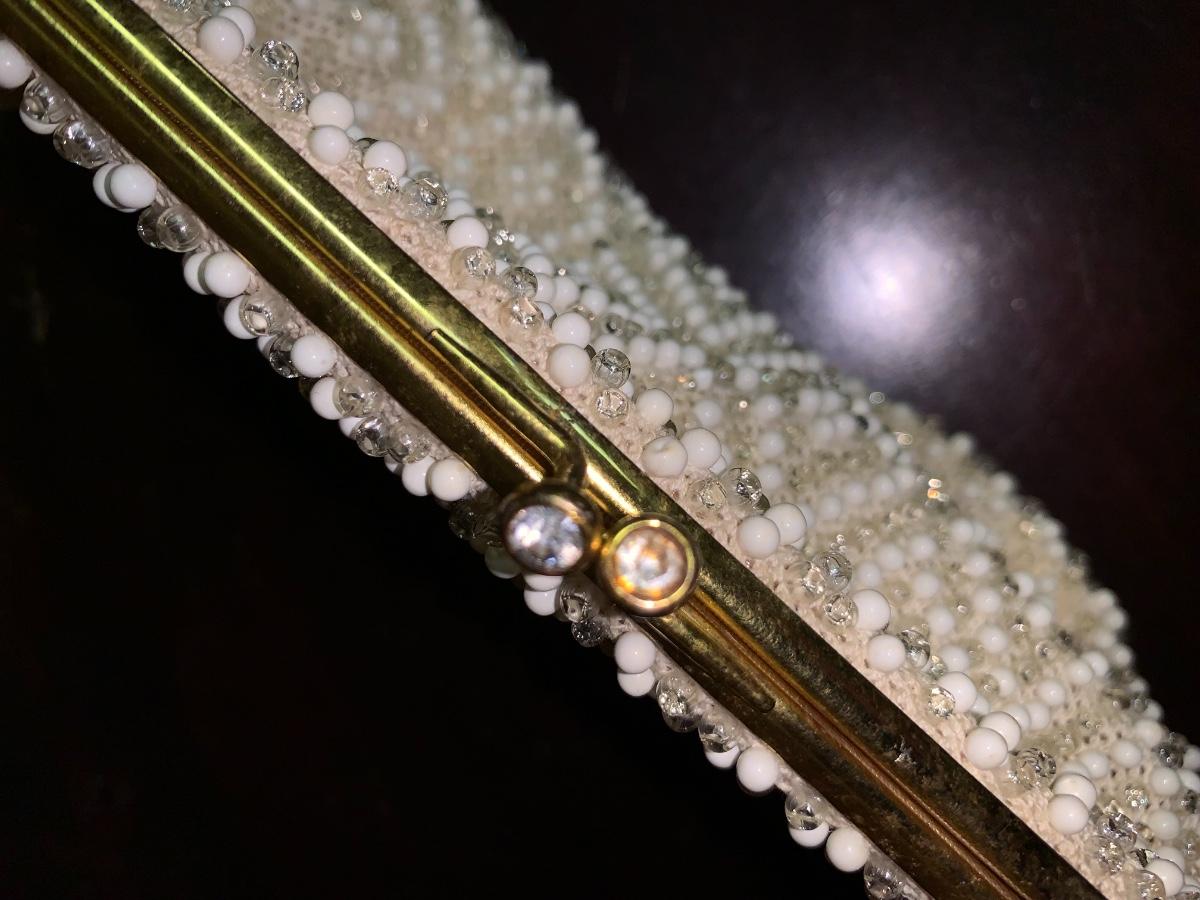 Vintage beaded bag, very clean, rhinestone accent snap closure 5" x 8"