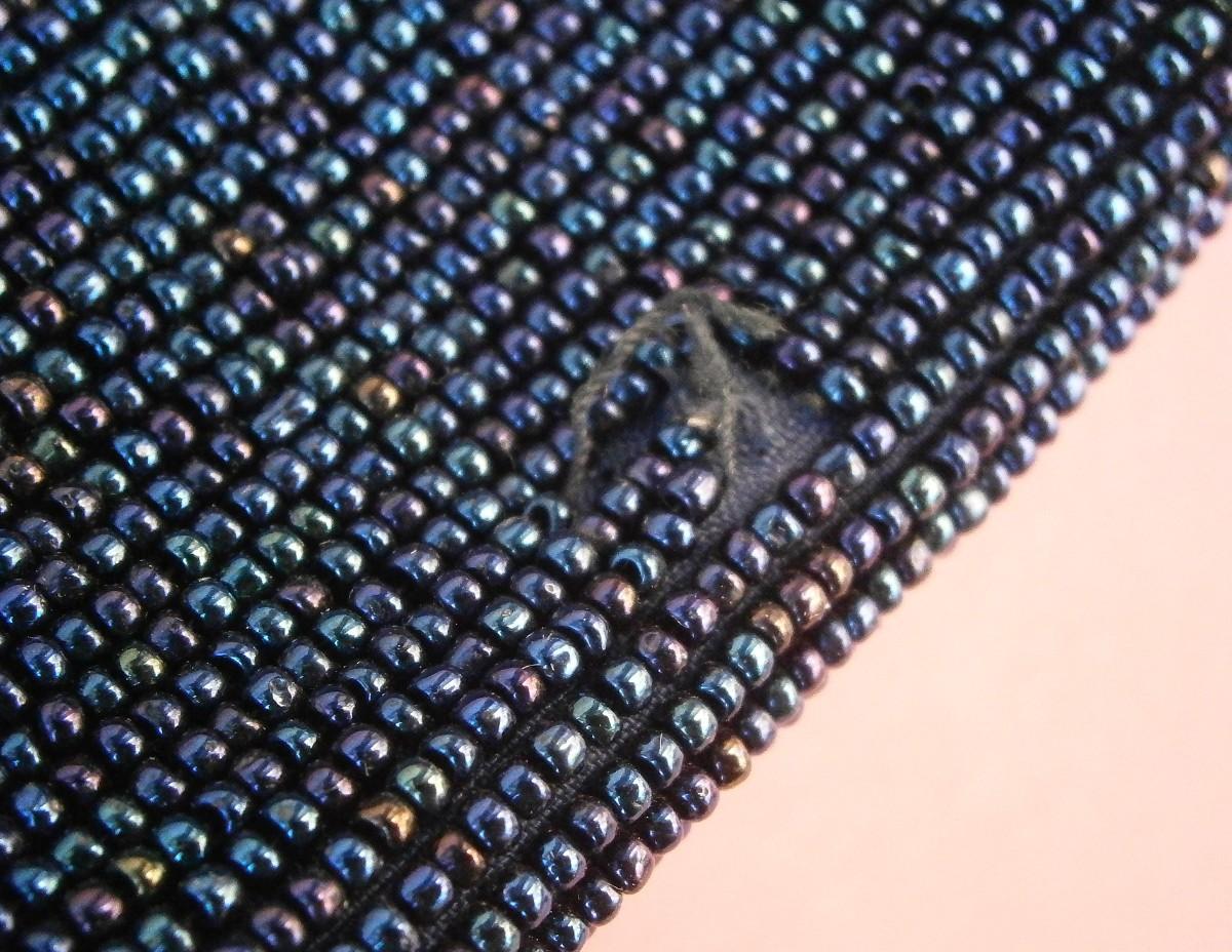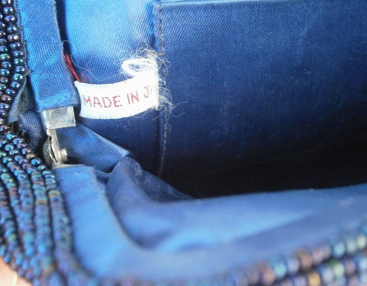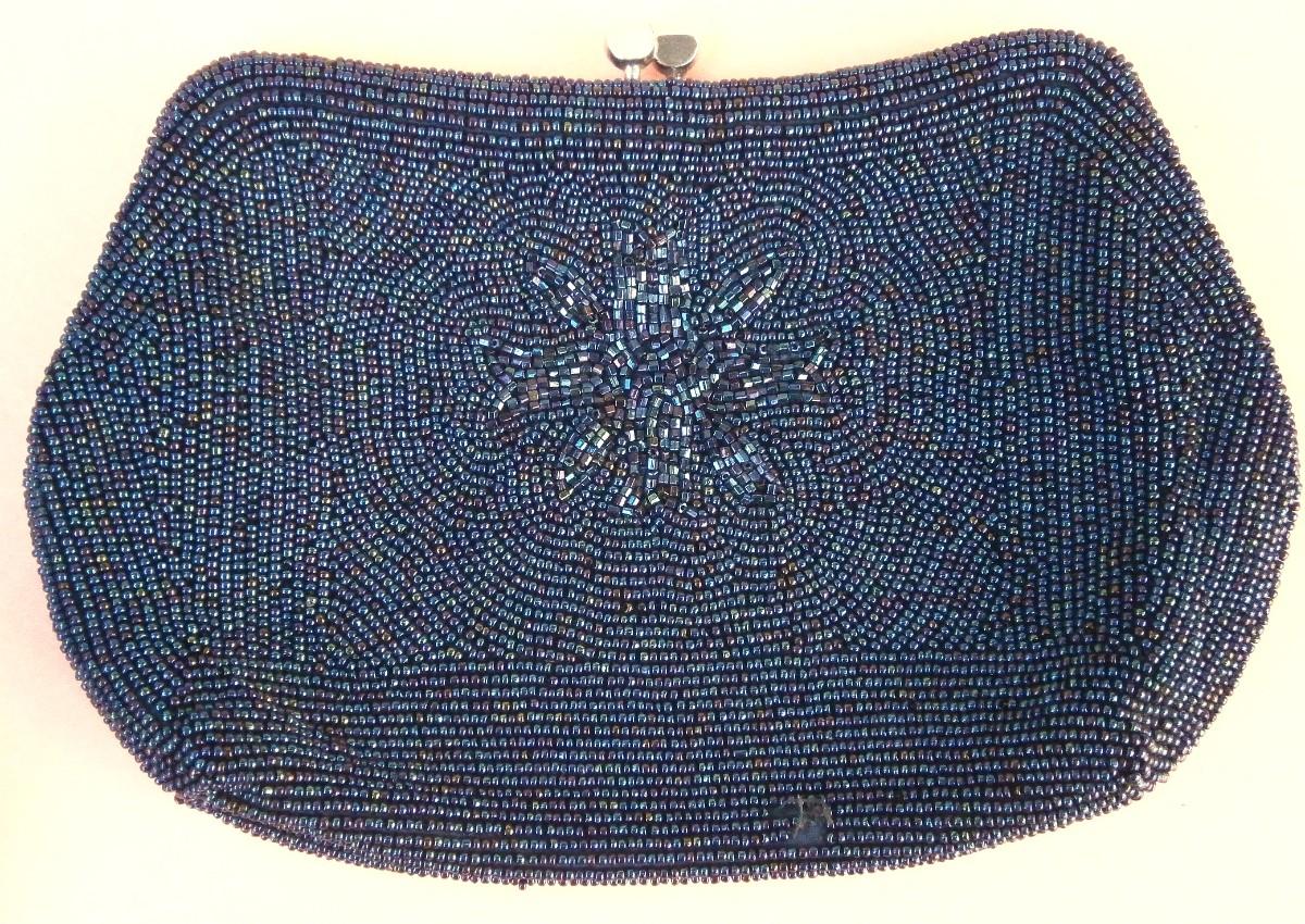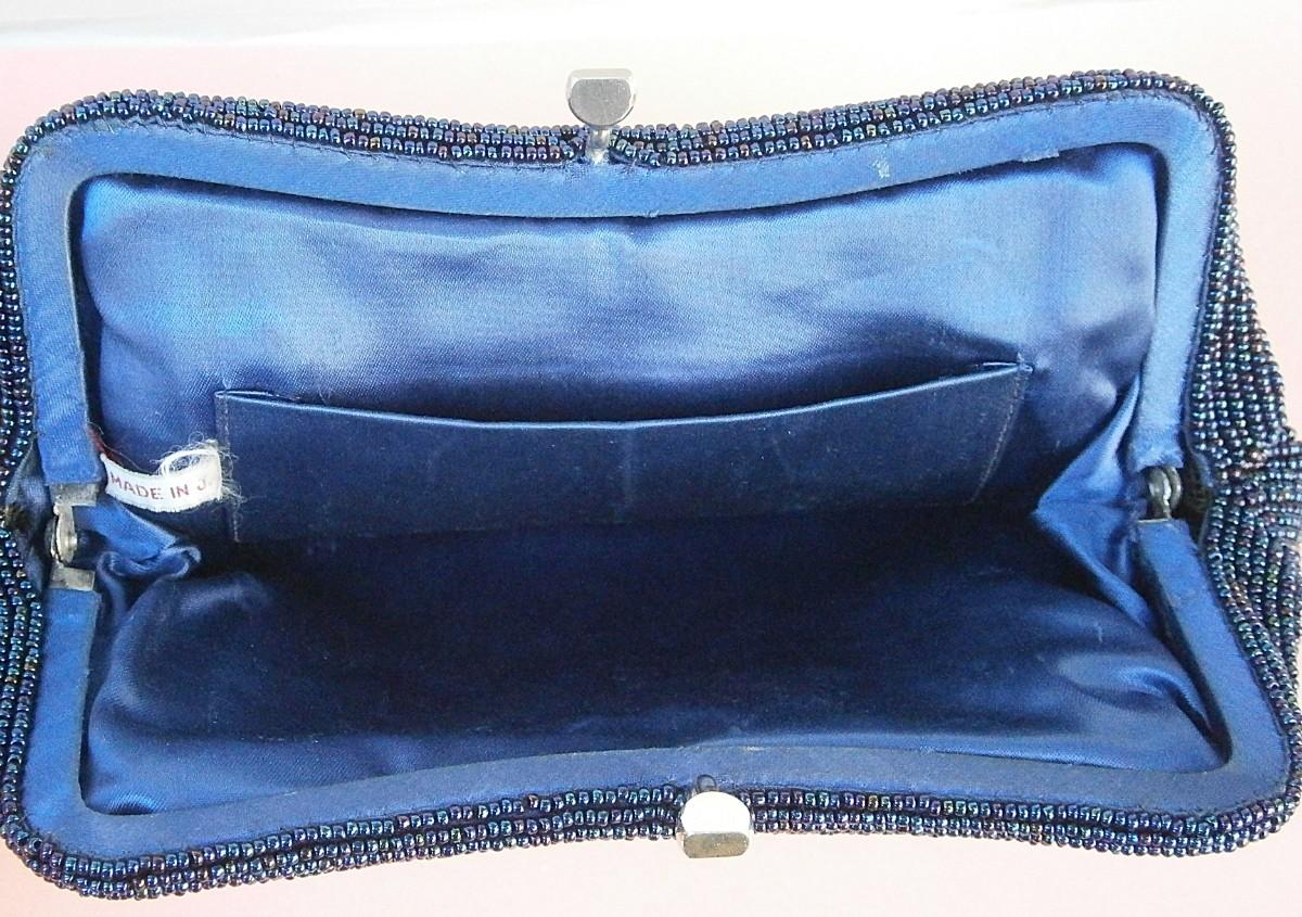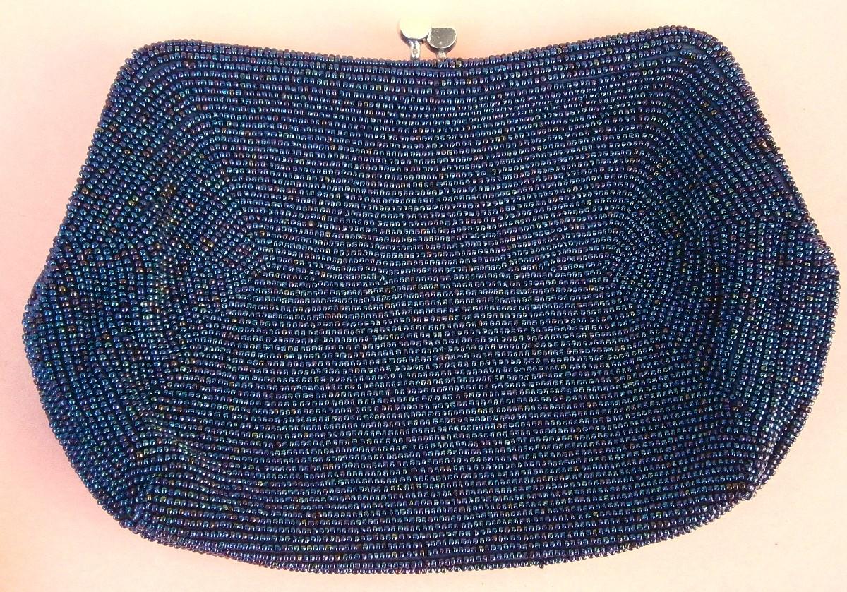 Vintage Beaded Clutch Purse made in Japan from the 1950's-60's, 7 3/4 in, wide x 5 1/2 tall, has small spot missing beads.