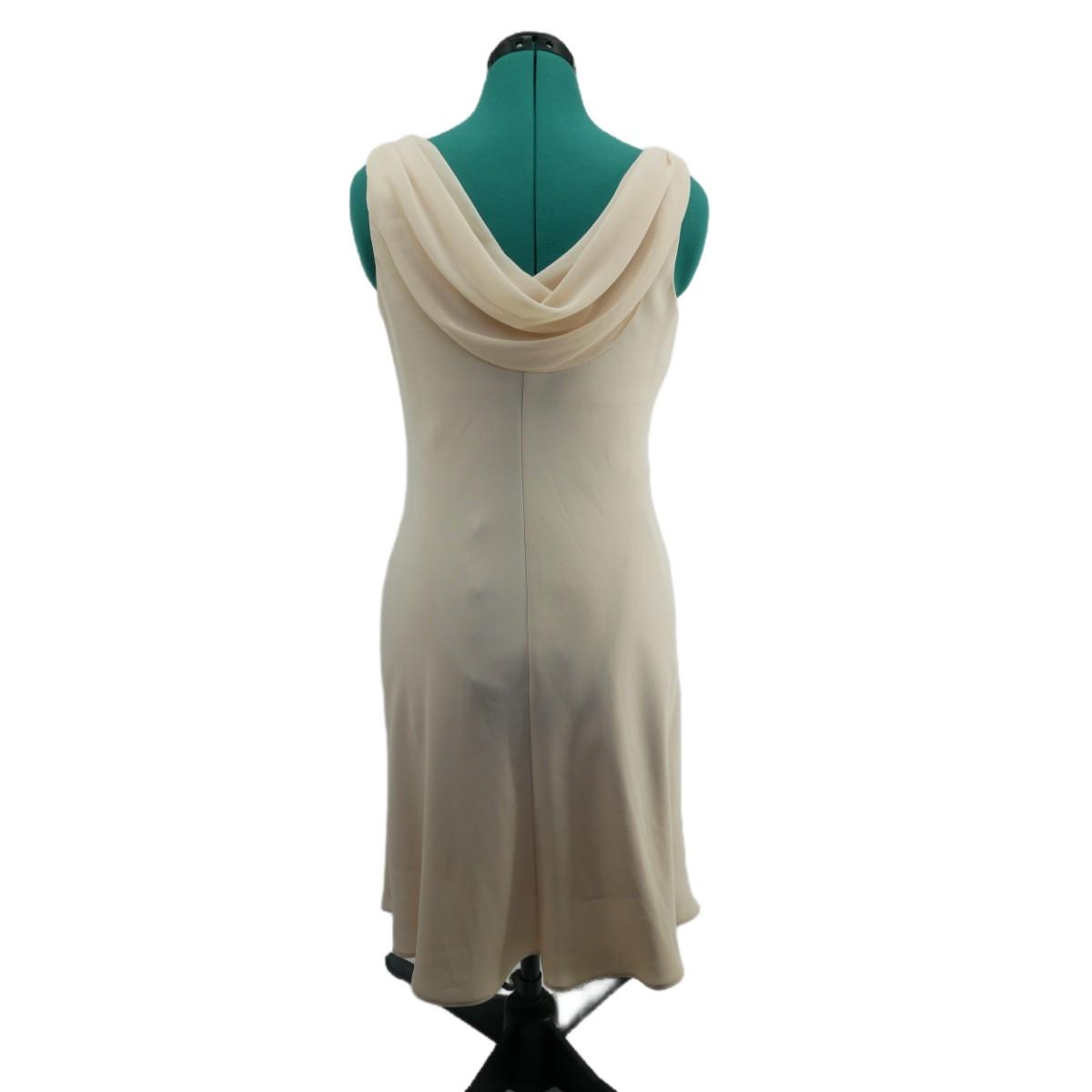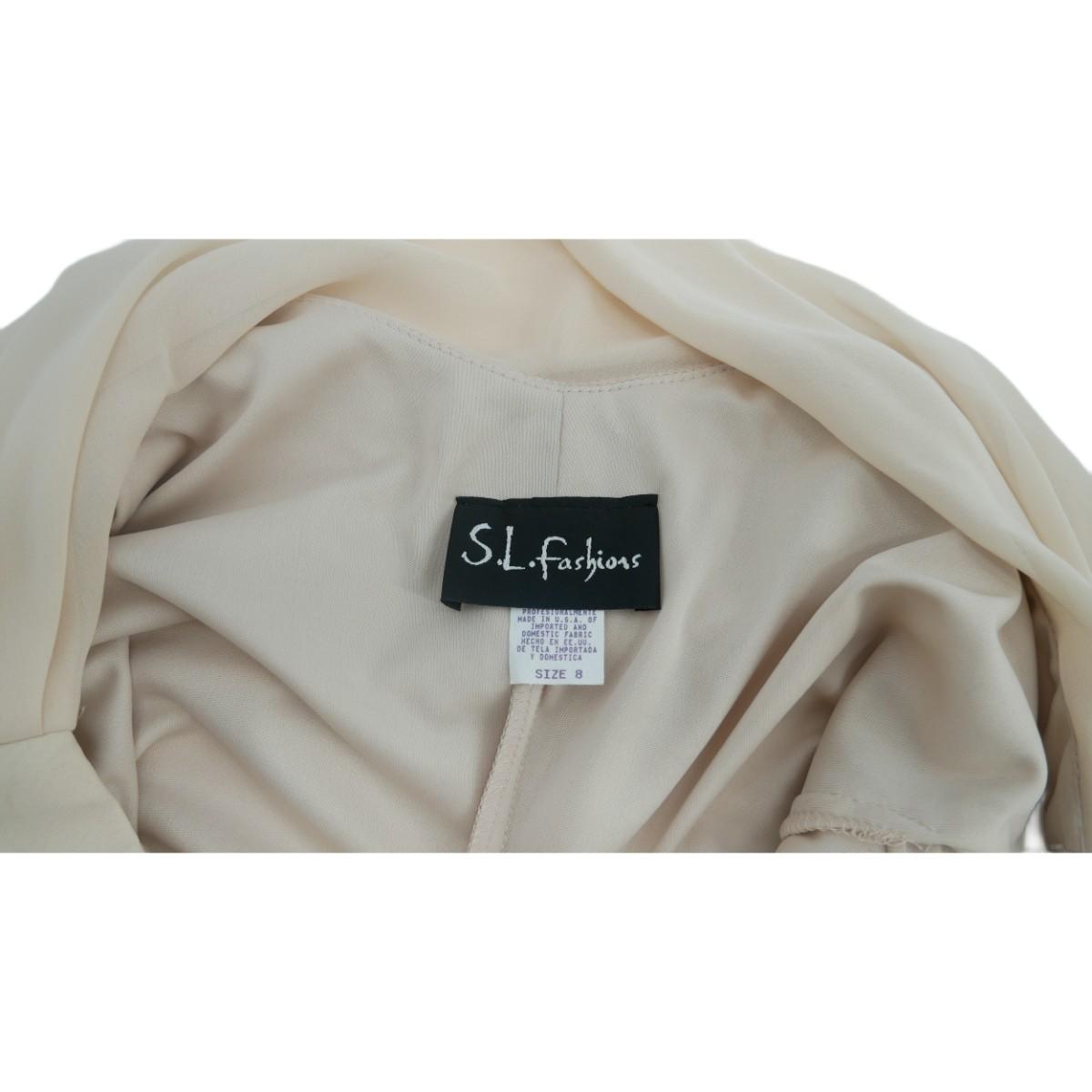 Vintage S.L. Fashions cream colored formal dress with gorgeous beading and draped back. Women's size 8, made in the USA.