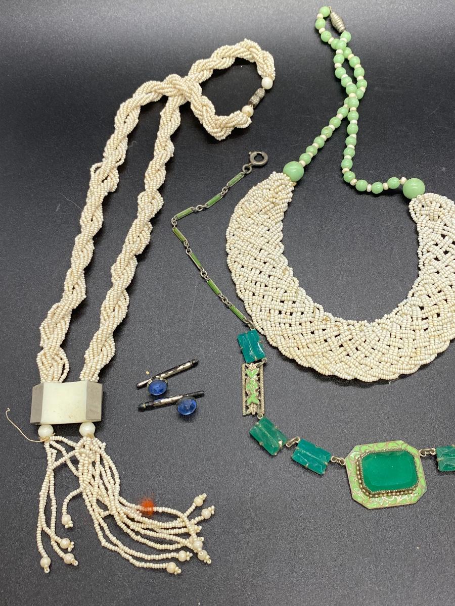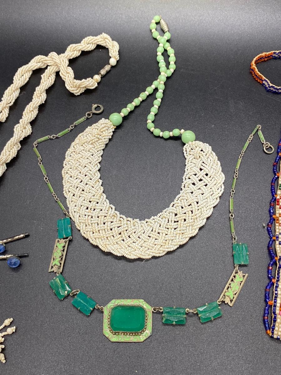 Vintage lot of jewelry, mostly beaded styles. All are in good condition.