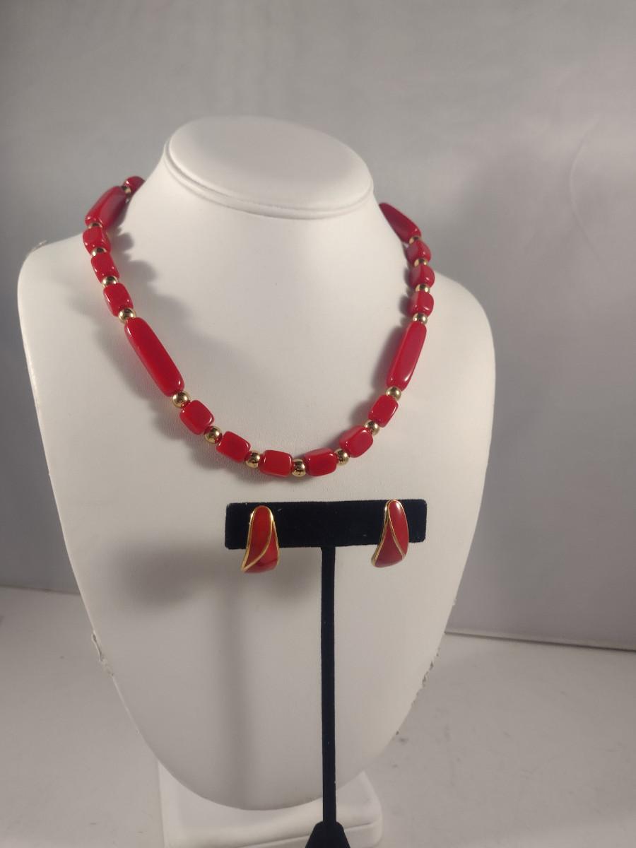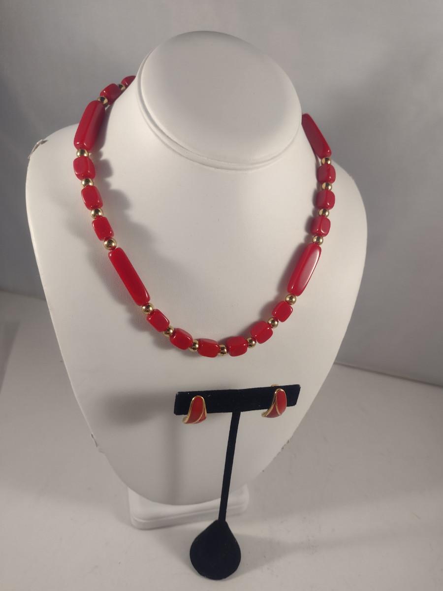 Vintage Beaded Necklace and Clip-on Earring Set (#16)