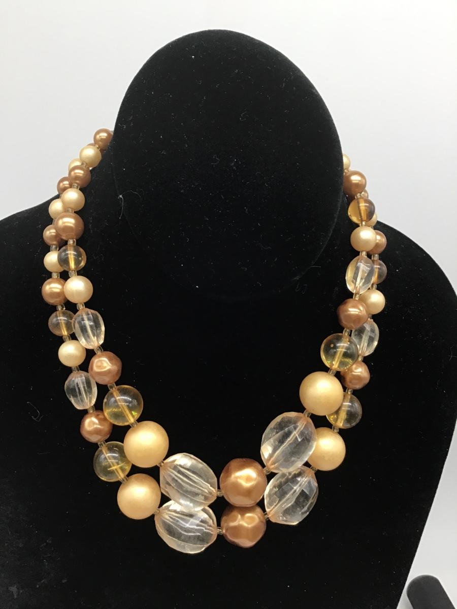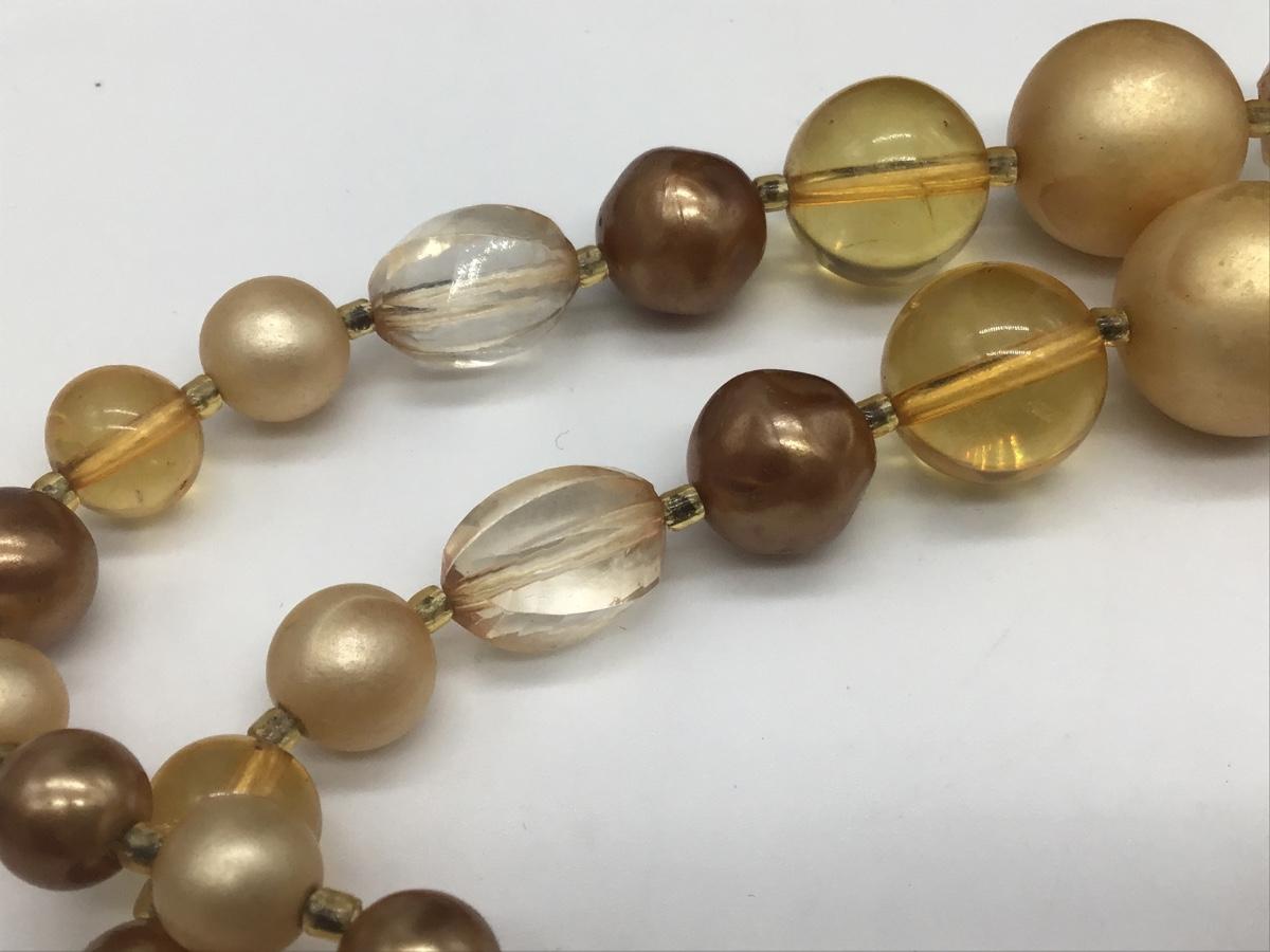 Vintage Beaded Necklace. Browns Tans Amber Tones marked