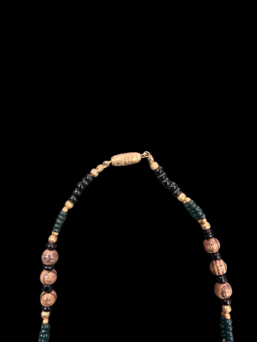 Vintage Beaded Necklace with A Large Ornate Replica Coin Medallion Pendant. Screw Latch