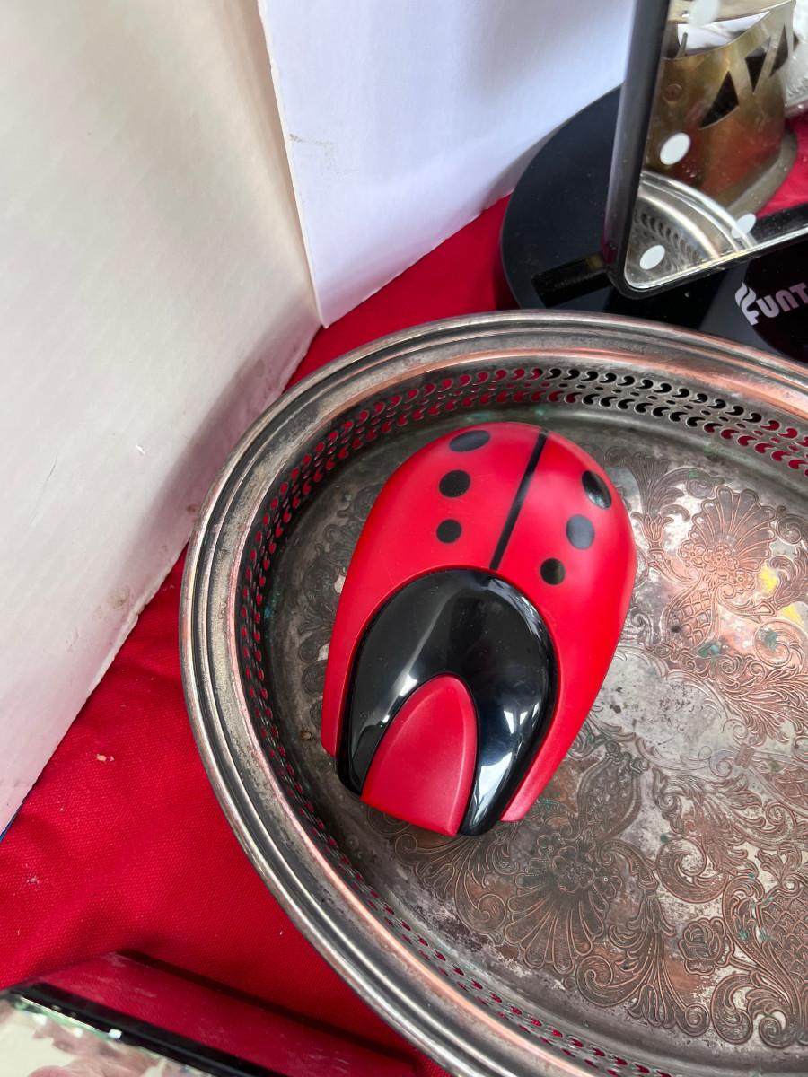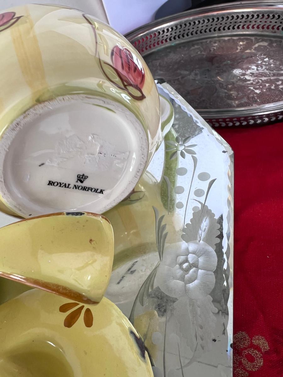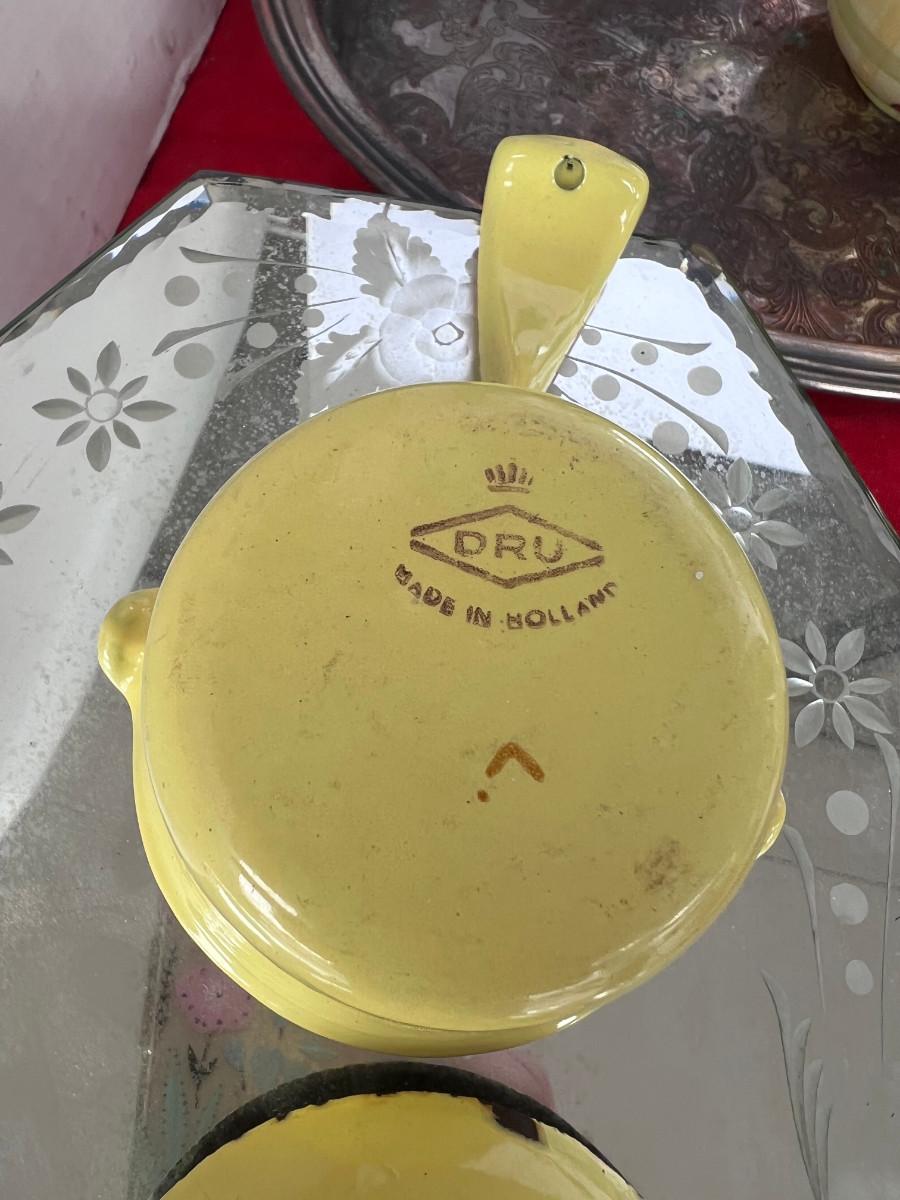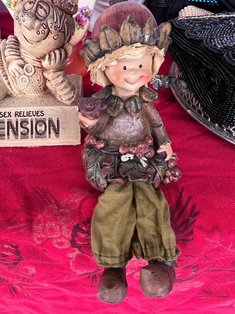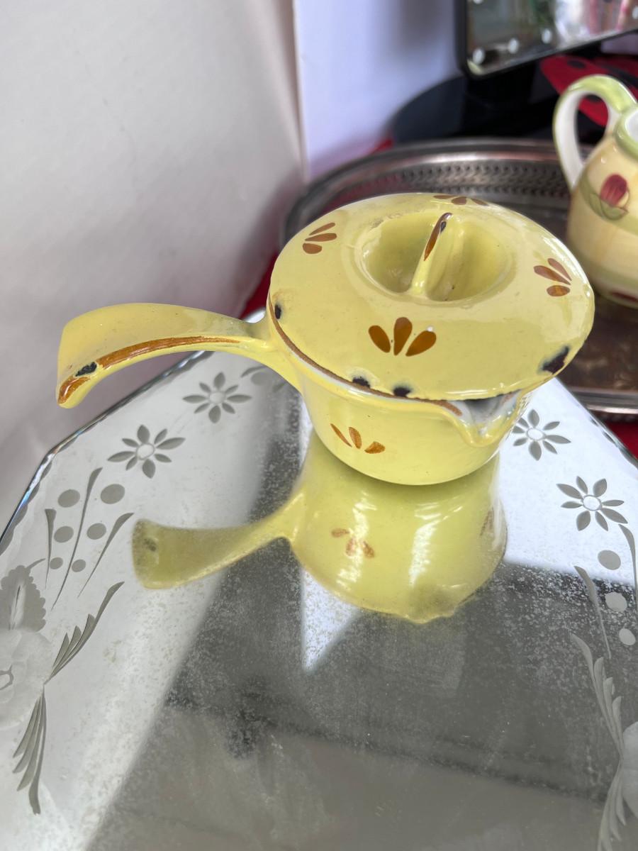 Lot of vintage collectibles good condition, evening gloves, 1950s mirrored jewelry box, white satin pumps, 1970s kitsch figurines. Vintage enamel pot, ceramic pitcher, elephant tea pot. beaded purses. This lot can be shipped but be aware heavy and breakable so will be double boxed.