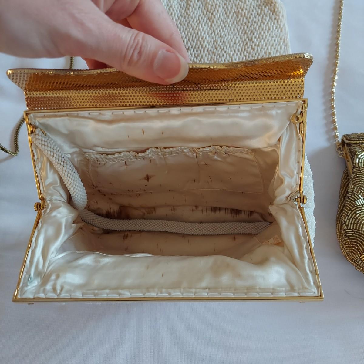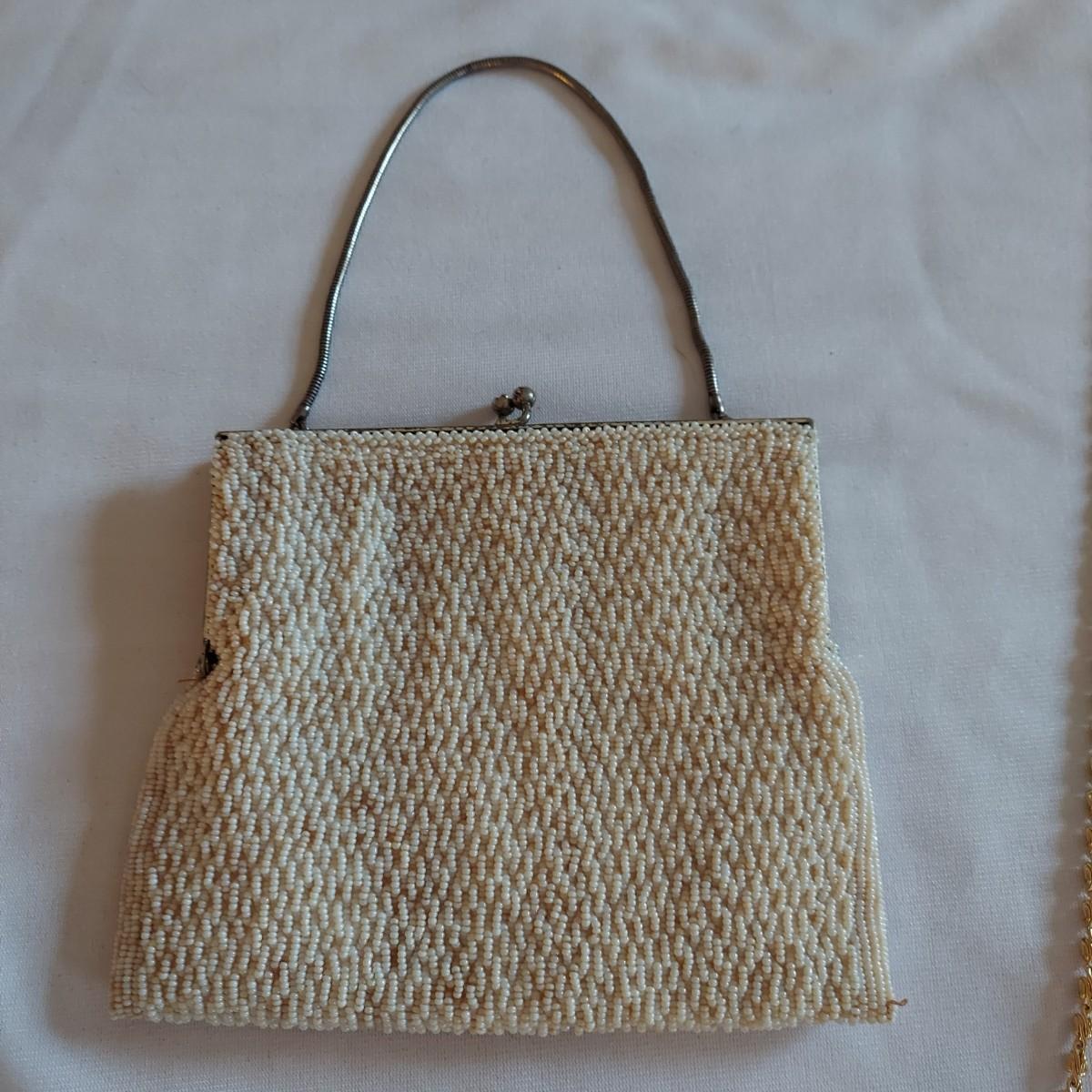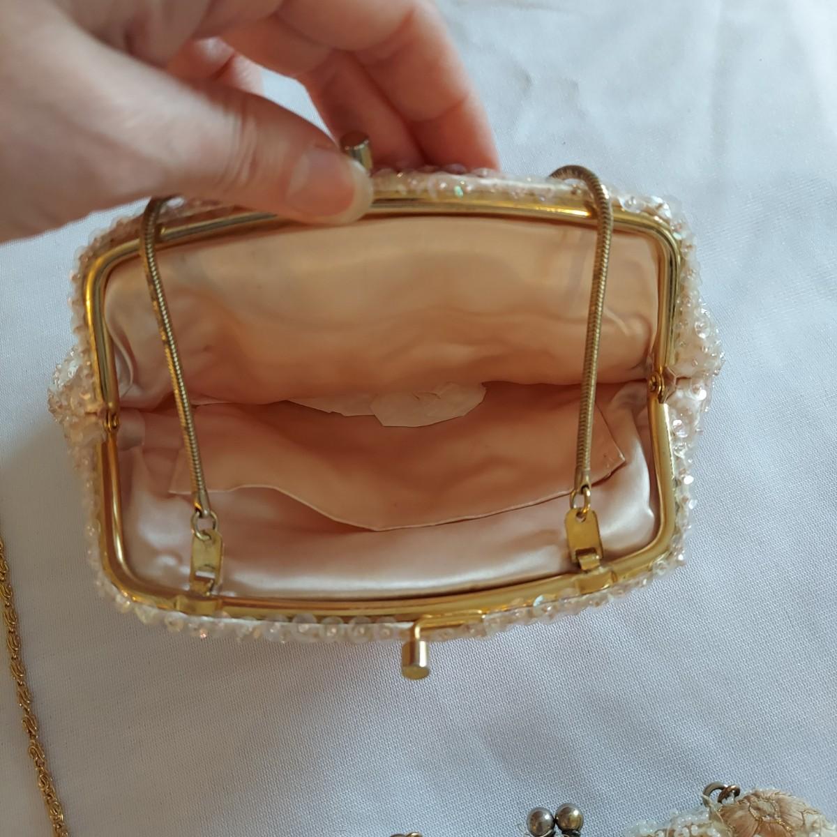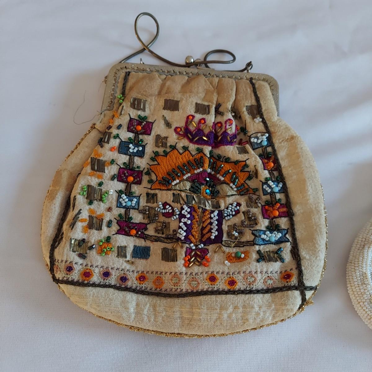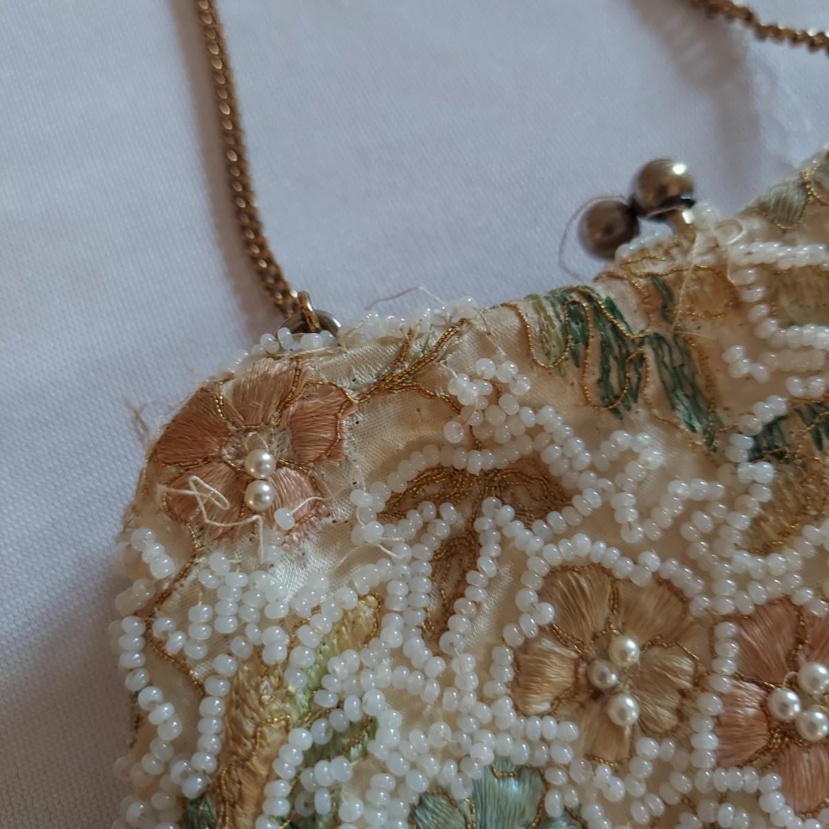 Lot includes 12 vintage beaded evening bags. The rose clutch is 10" x 7"H. Some have stains or loose beads. The rose bag has a broken handle. Please see photos. Shipping available