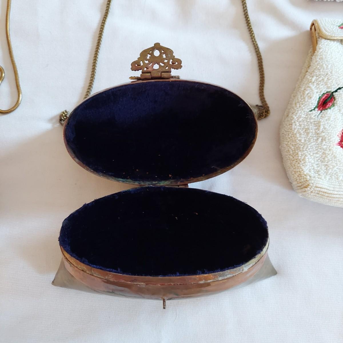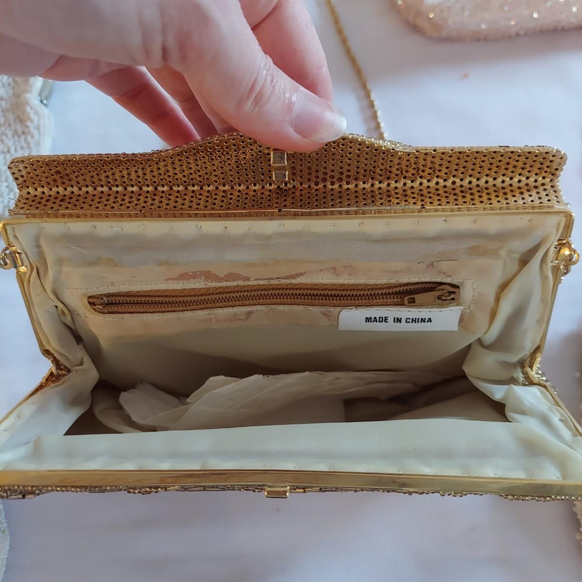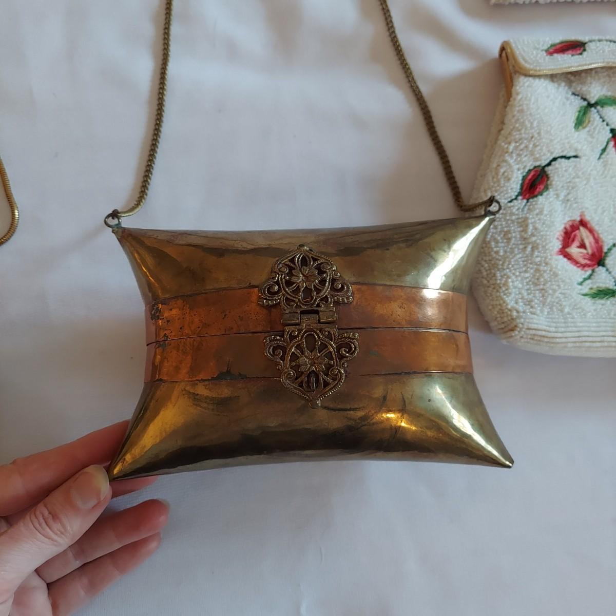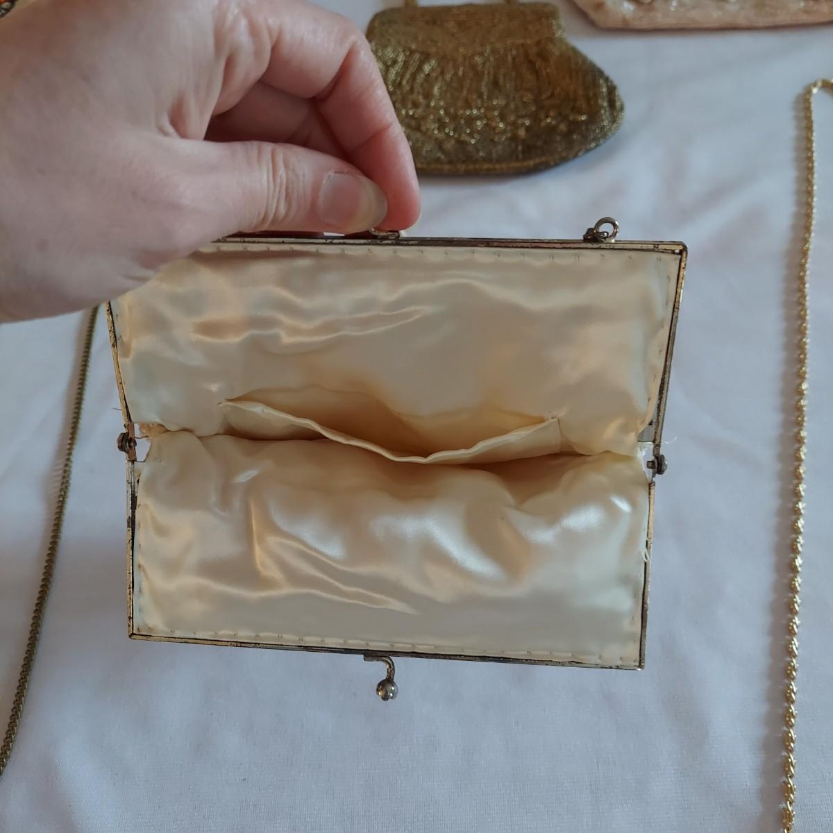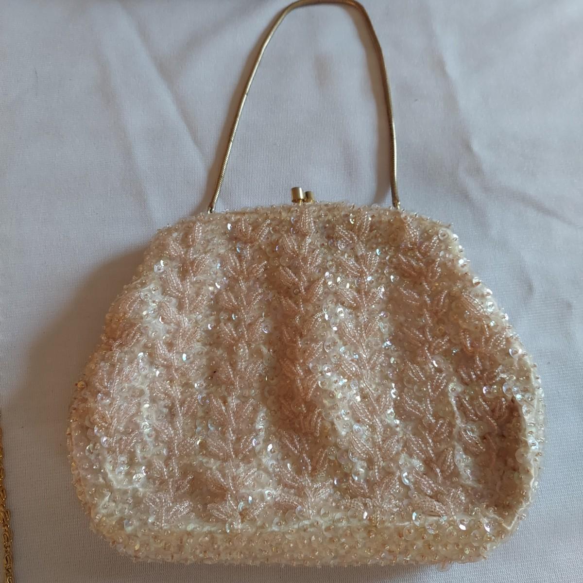 Lot includes 12 vintage beaded evening bags. The rose clutch is 10" x 7"H. Some have stains or loose beads. The rose bag has a broken handle. Please see photos. Shipping available