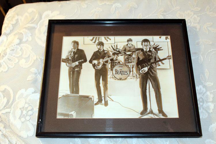 Vintage Beatles black and white photo, sight size 7.5 x 9.5", framed