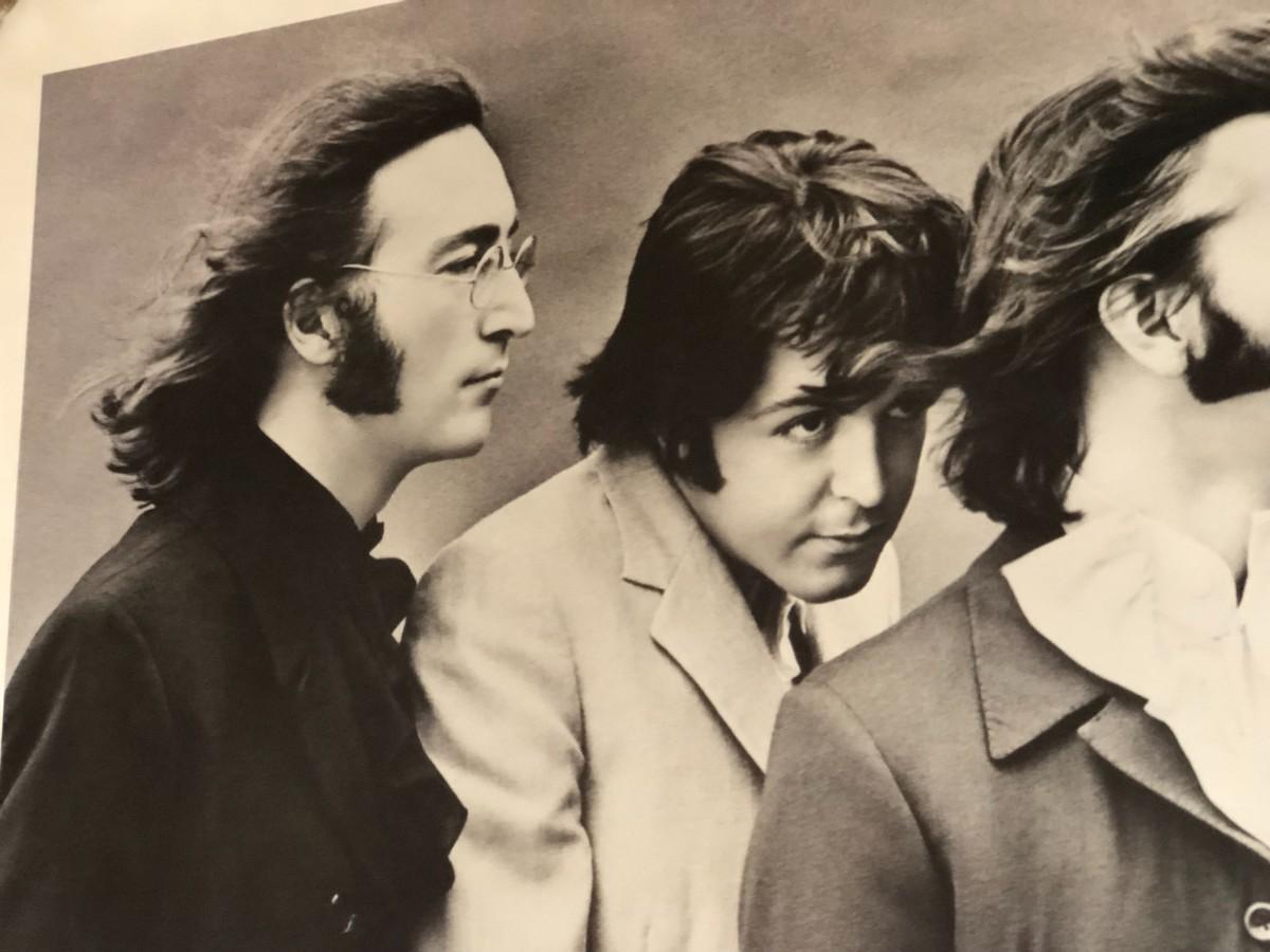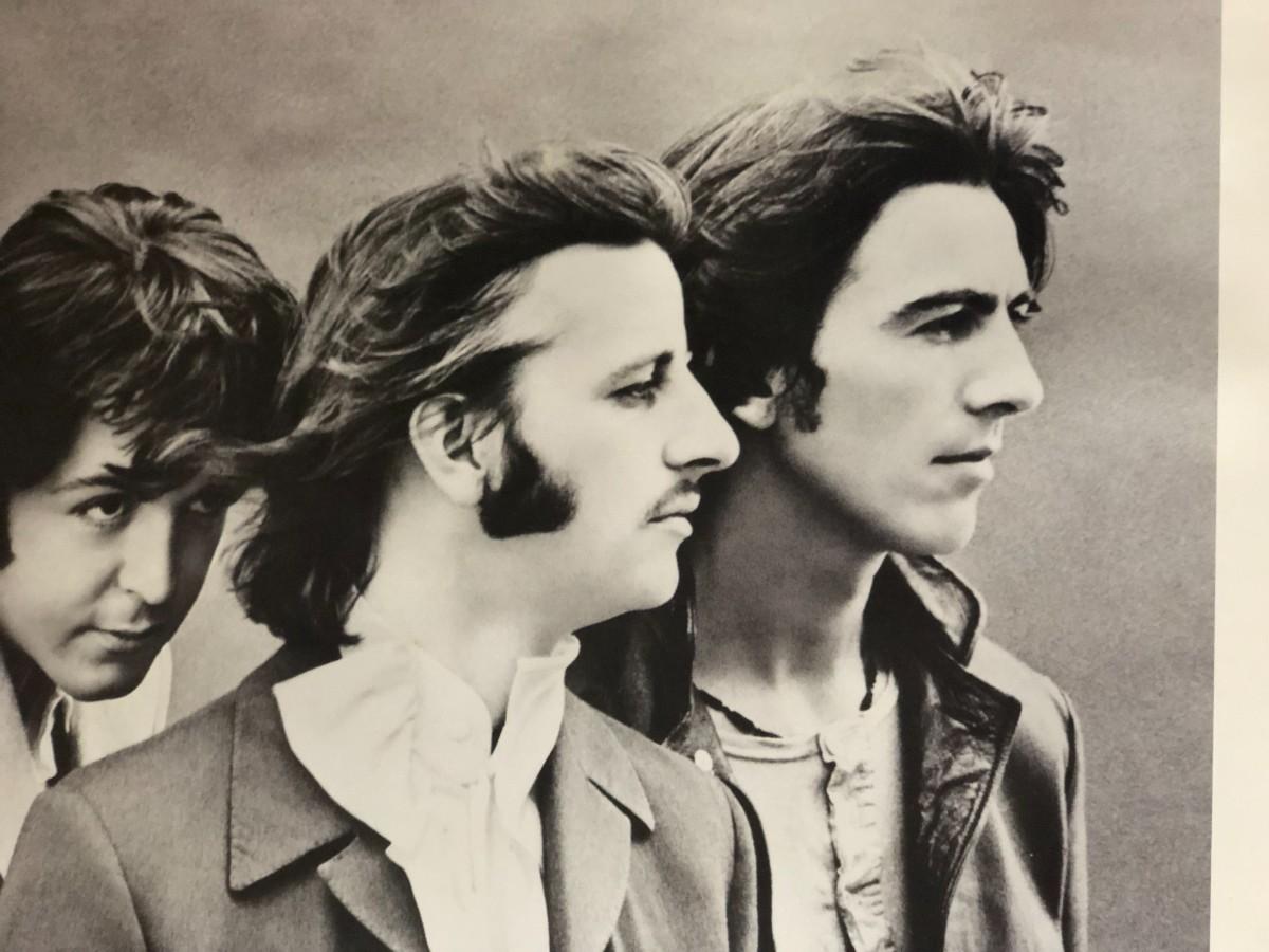Fantastic panoramic photograph poster of the four Beatles band members, in black and white. In very good condition.