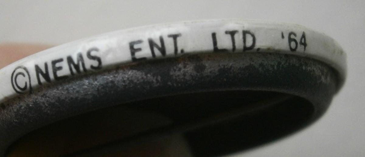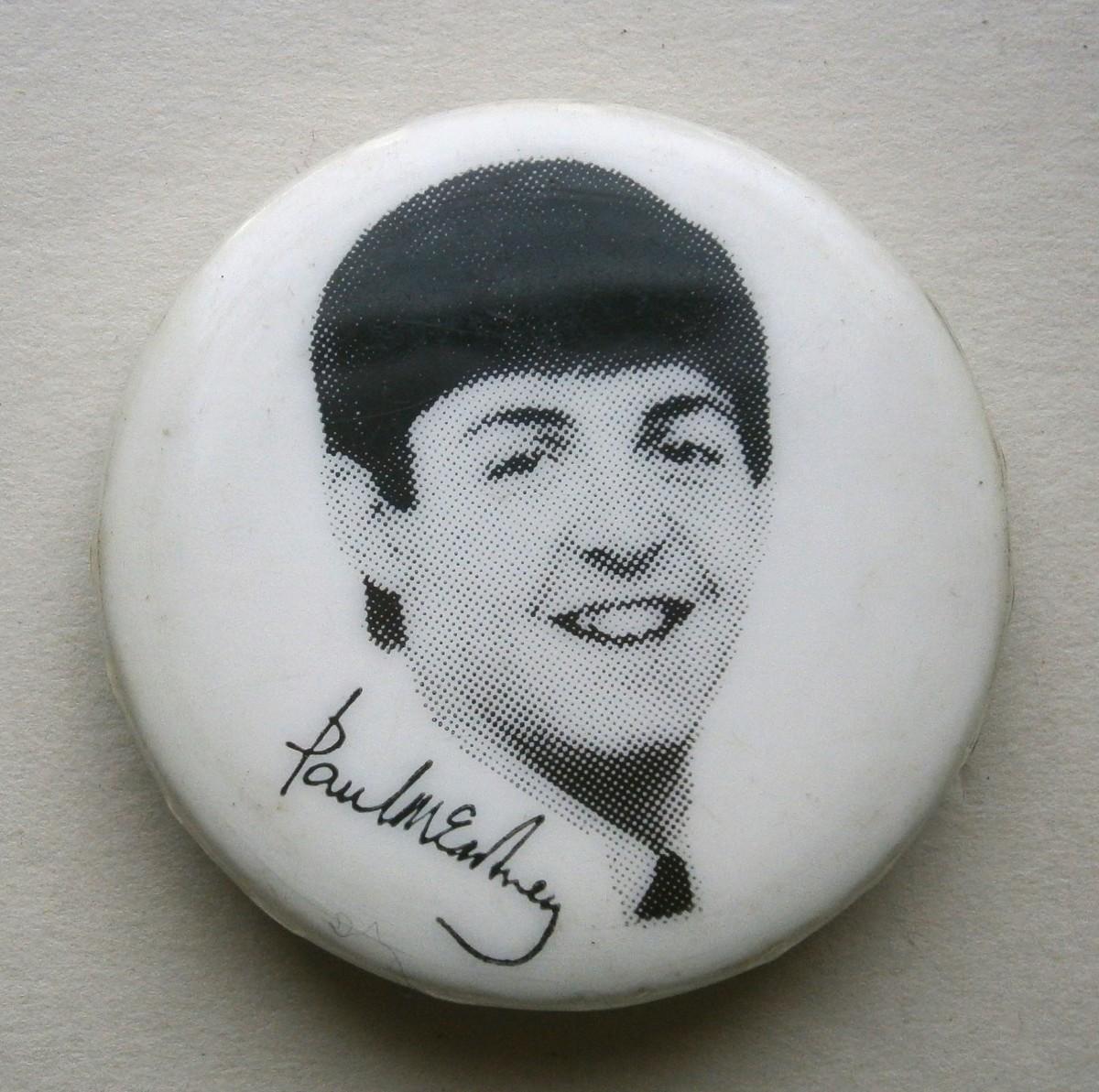 Vintage Beatles "Paul Mccartney " Pinback Button signed c. NEMS ENT. LTD '64, 1 1/4 in. diameter, celluloid over tin, original.