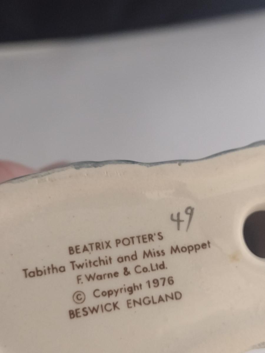 Vintage Beatrix Potter's 'Tabitha, Twitchit, and Miss Moppet' Beswick Porcelain Figurine- Approx 3 3/4" Tall