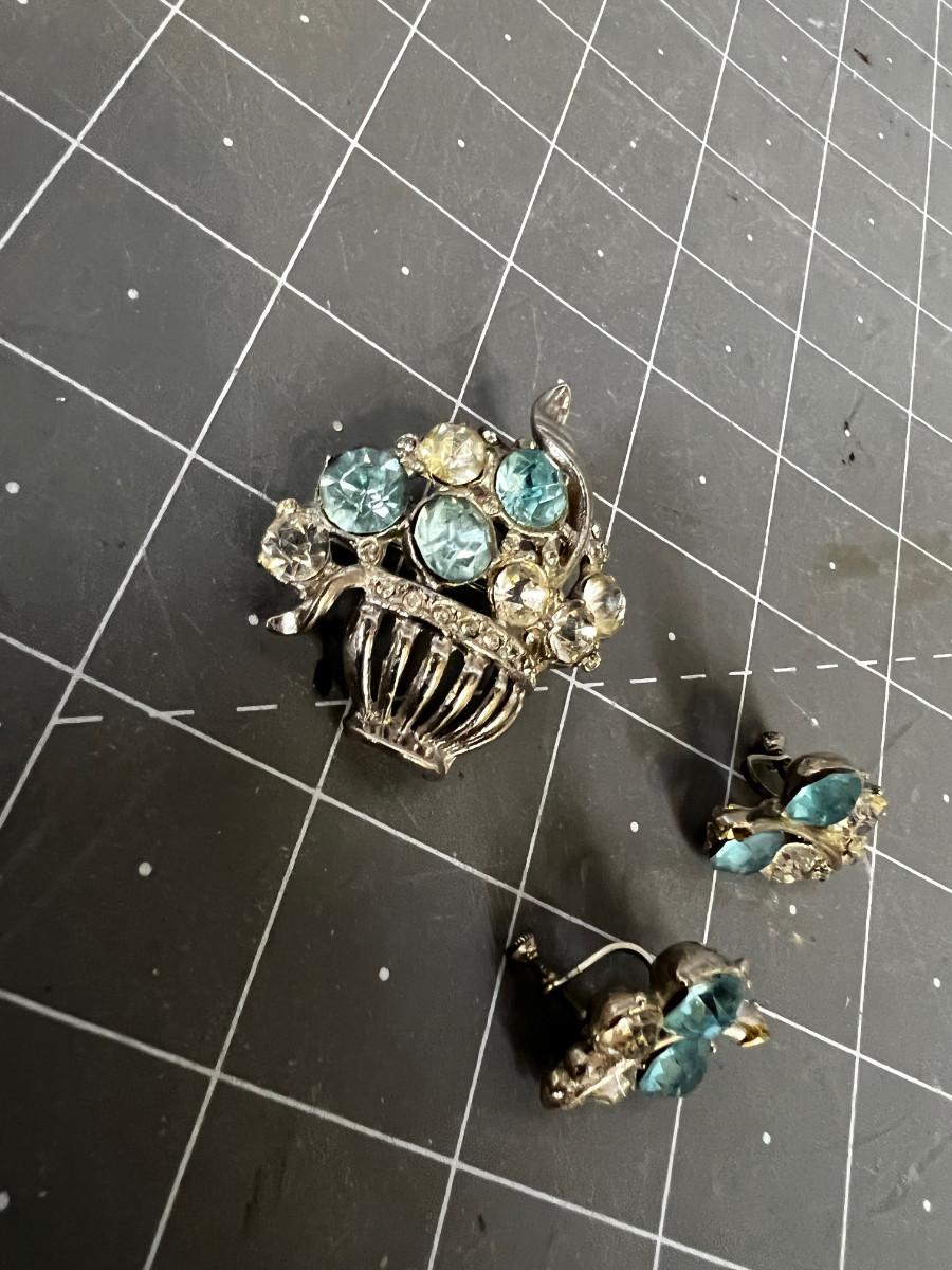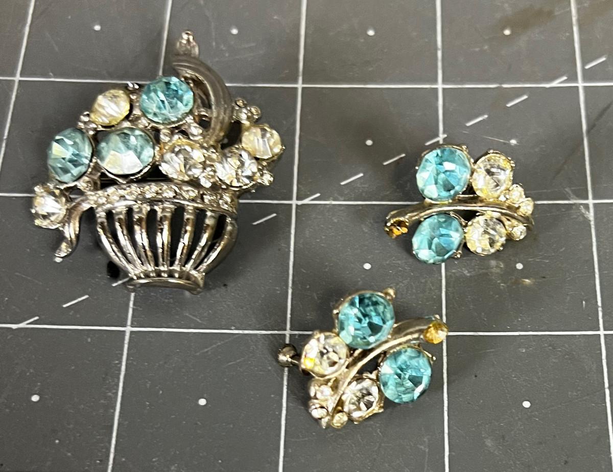 Vintage: Beautiful Aqua Mixed Earrings and Pin