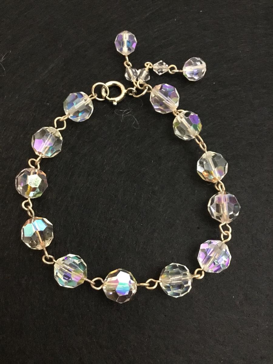 Vintage Beautiful Aurora Borealis, round crystal bead statement bracelet