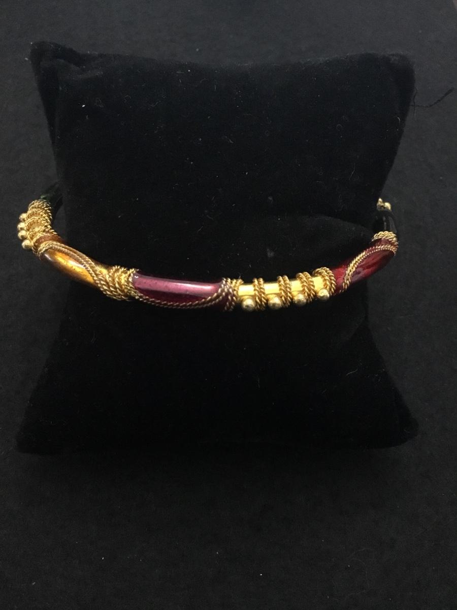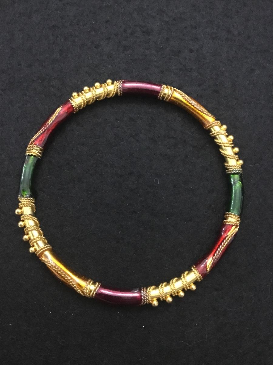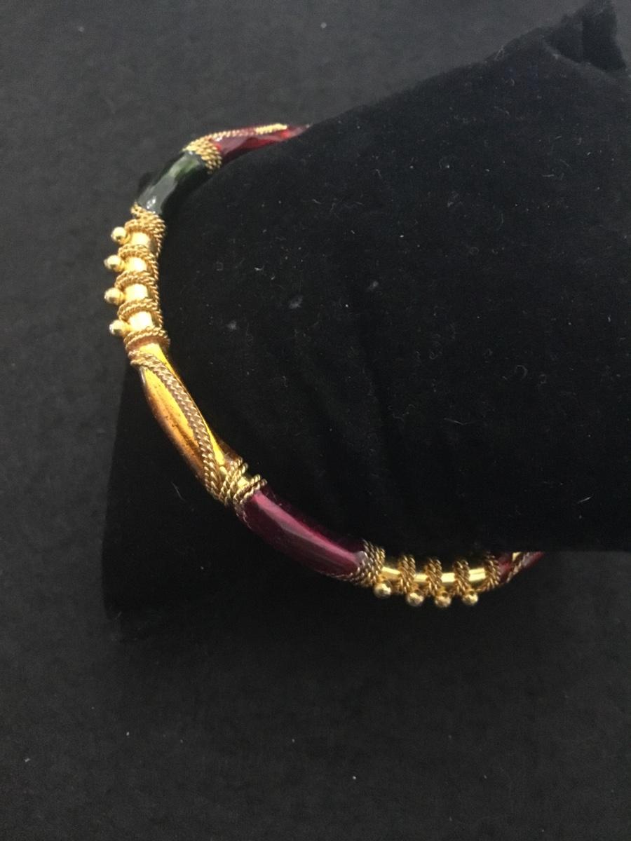 Vintage Beautiful gold tone Multi colored enamel bangle bracelet