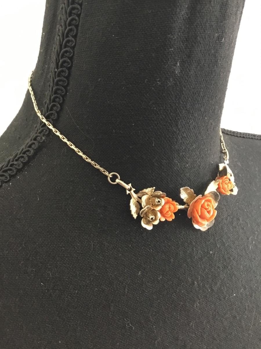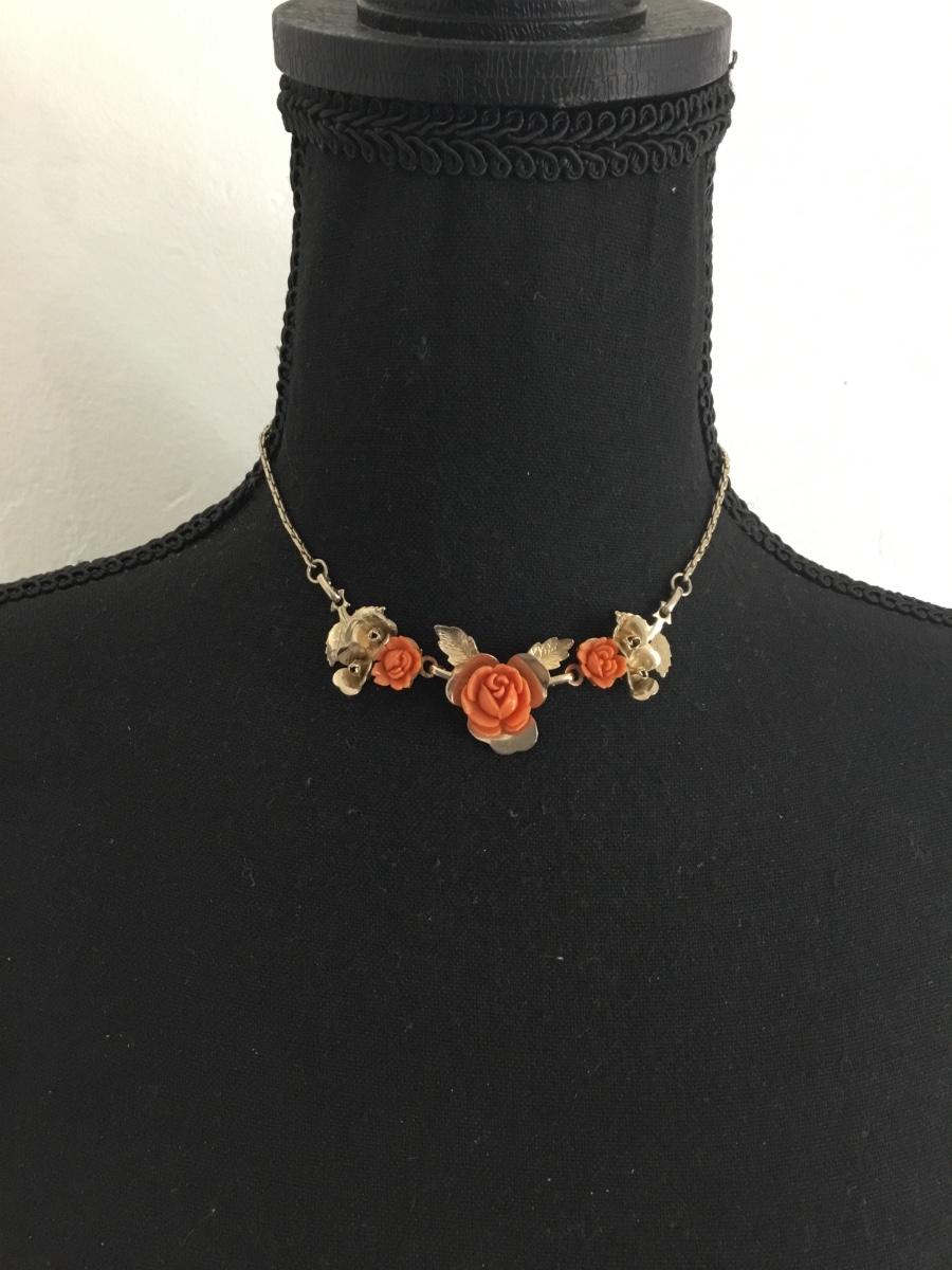 Vintage, beautiful, gold, toned, celluloid, rose floral statement, necklace