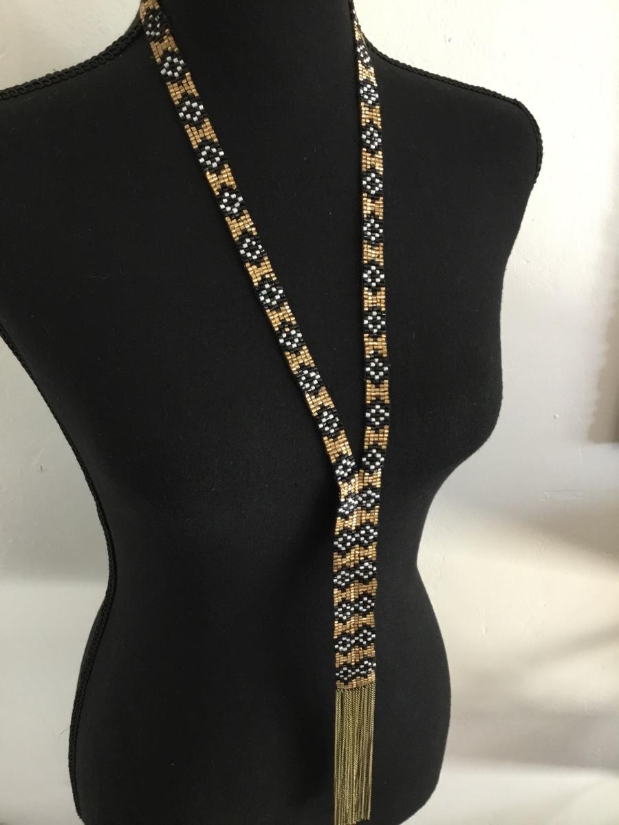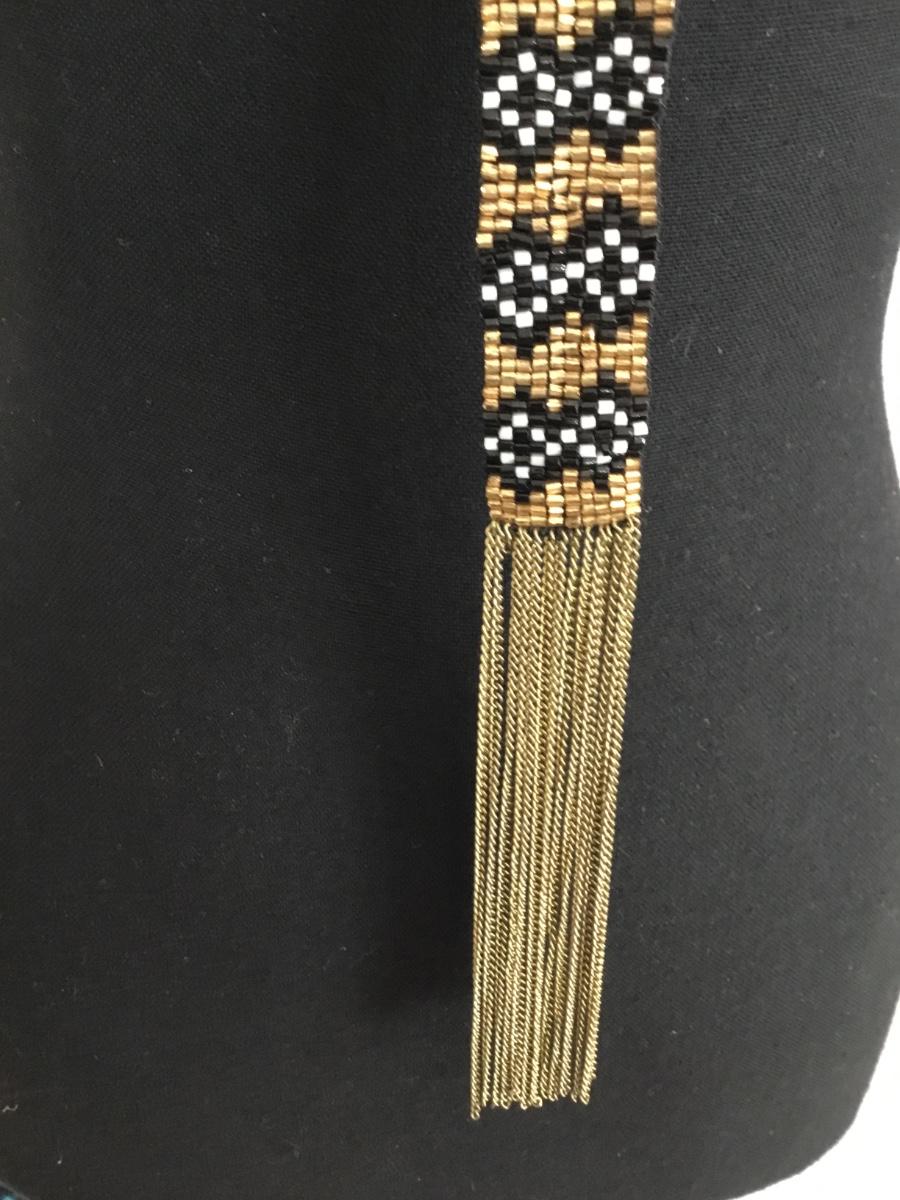 Vintage Beautiful handmade glass bead and gold tone chain tassel statement, necklace