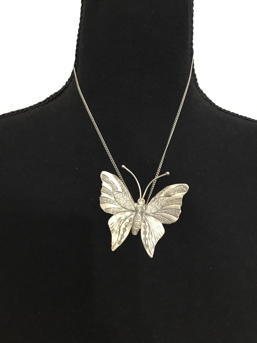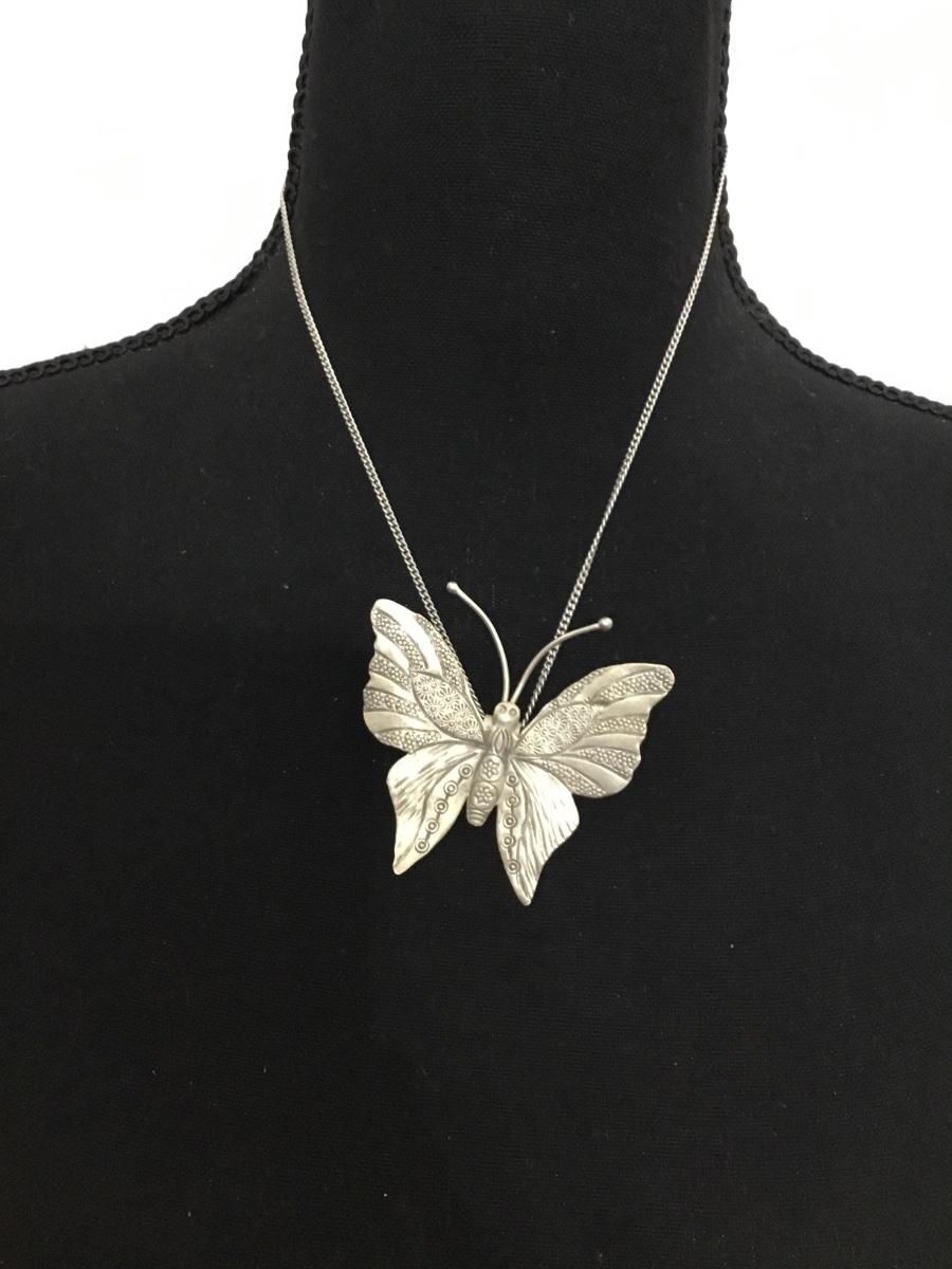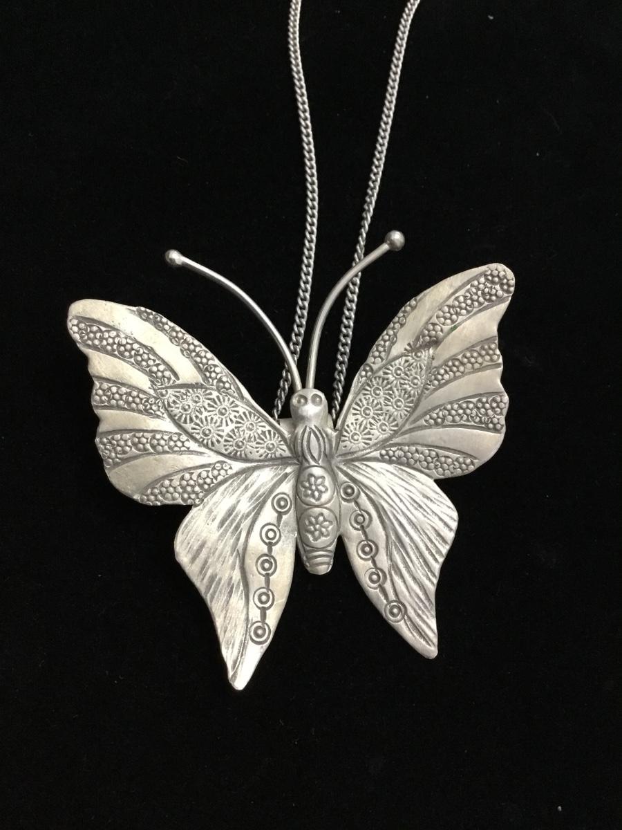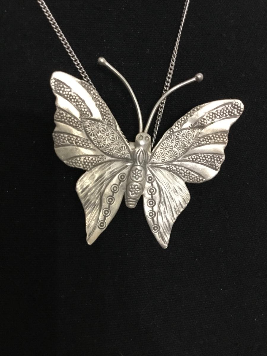 Vintage Beautiful, one of a kind, unique 925 sterling, silver butterfly and 925 sterling silver chain necklace