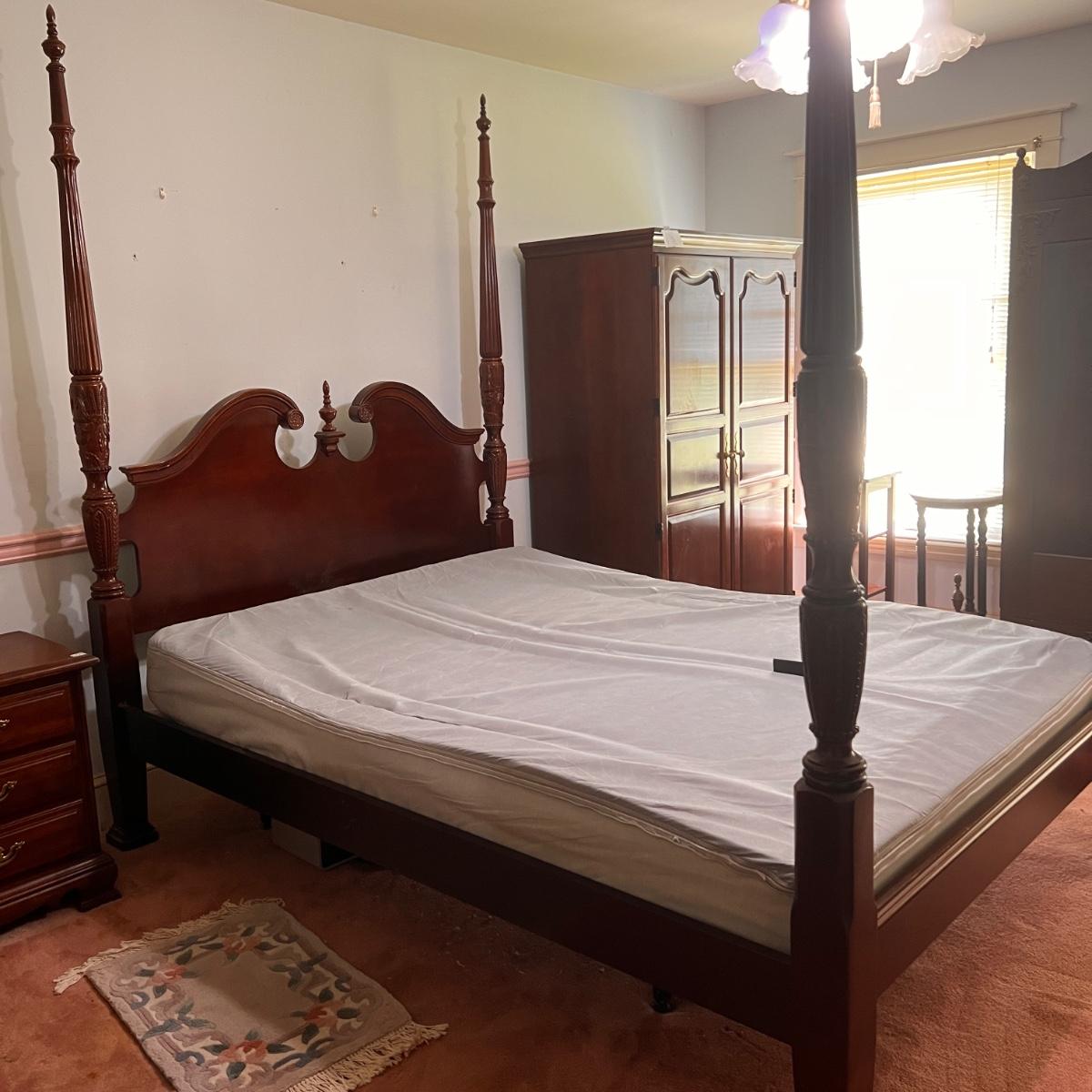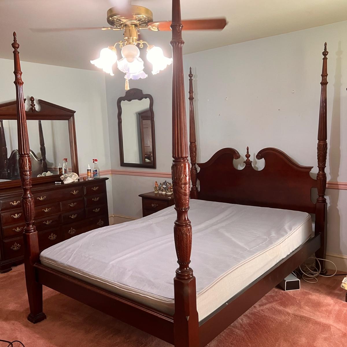 Antique Vntg. 4 Post Chippendale Style Queen Bed Frame