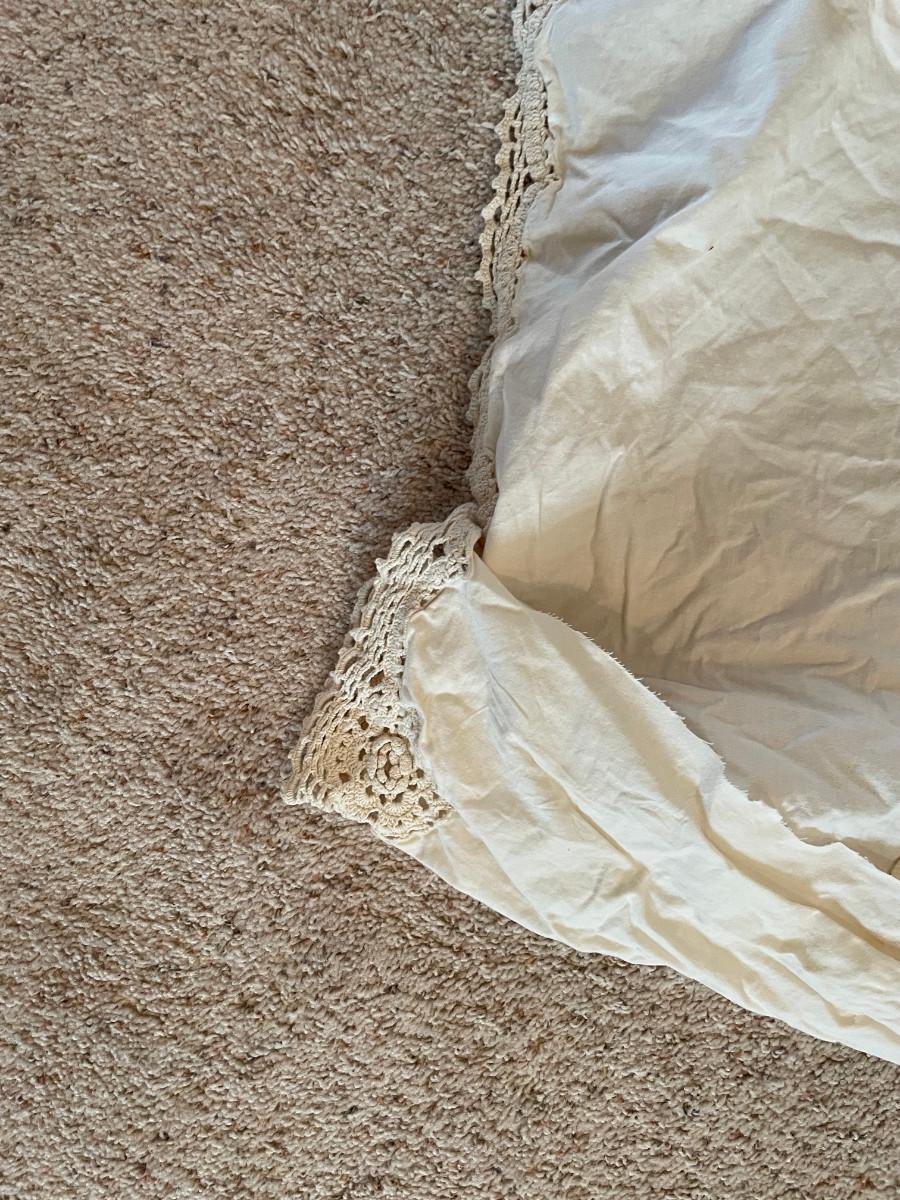 The lace edge on this is still somewhat good. Great for making something new out of.