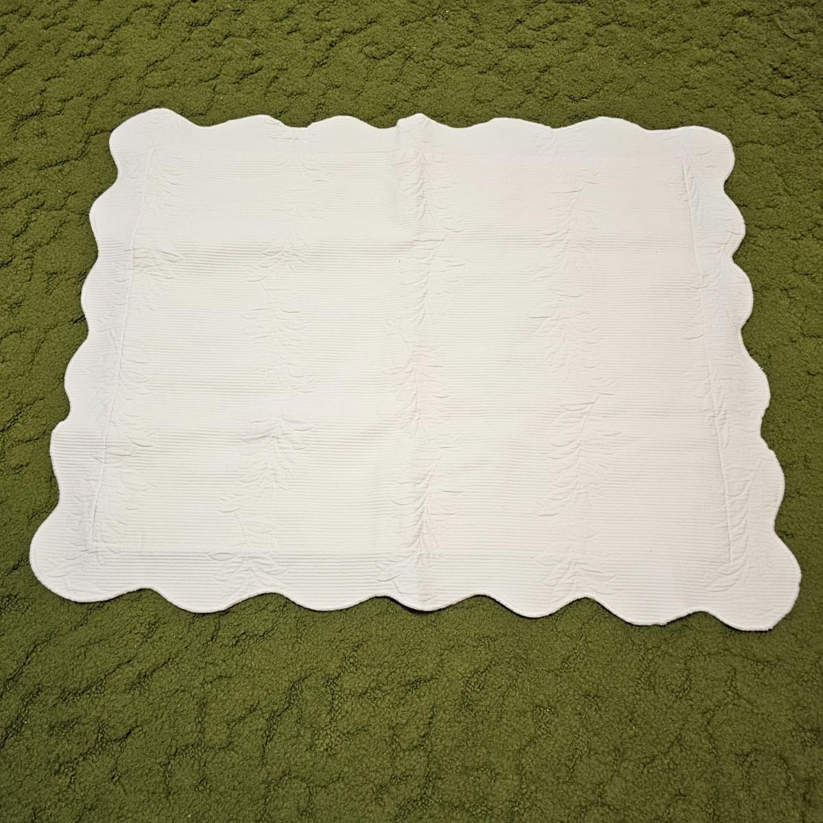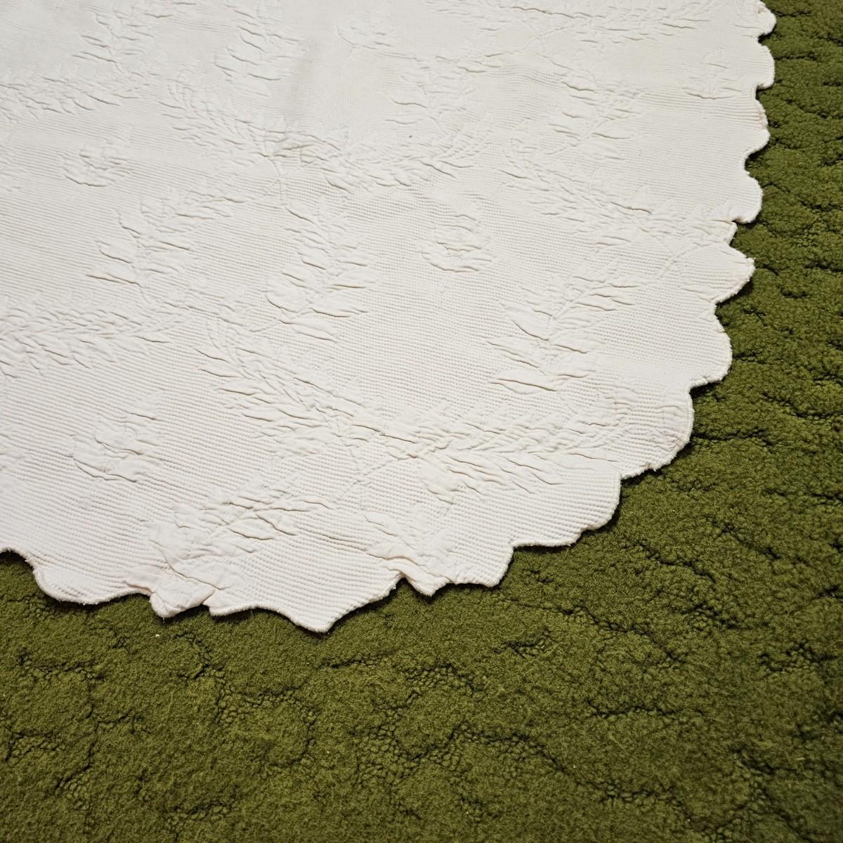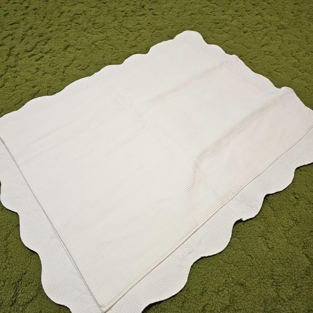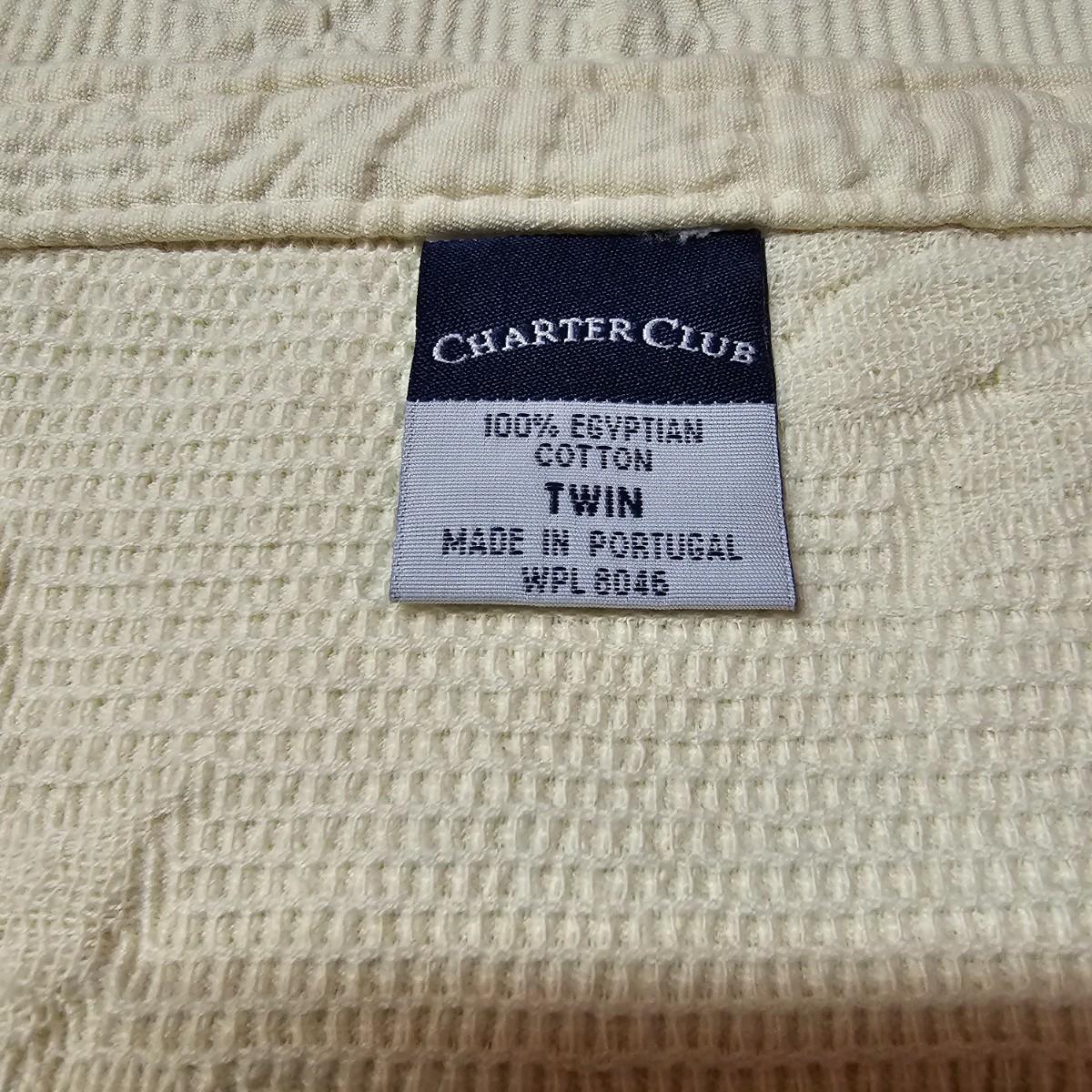 A vintage chenille bedspread in off white with decorative knotted fringe. Spreads measures 94" x 108", is by Bates, listed as George Washington's Choice. A few minor spots. Other items are a twin size Charter Club bedspread of Egyptian cotton, and a matching pillow sham. Spread is 64" x 90", sham is 24" x 31". Also a few spots, see photos for details. Shipping available.