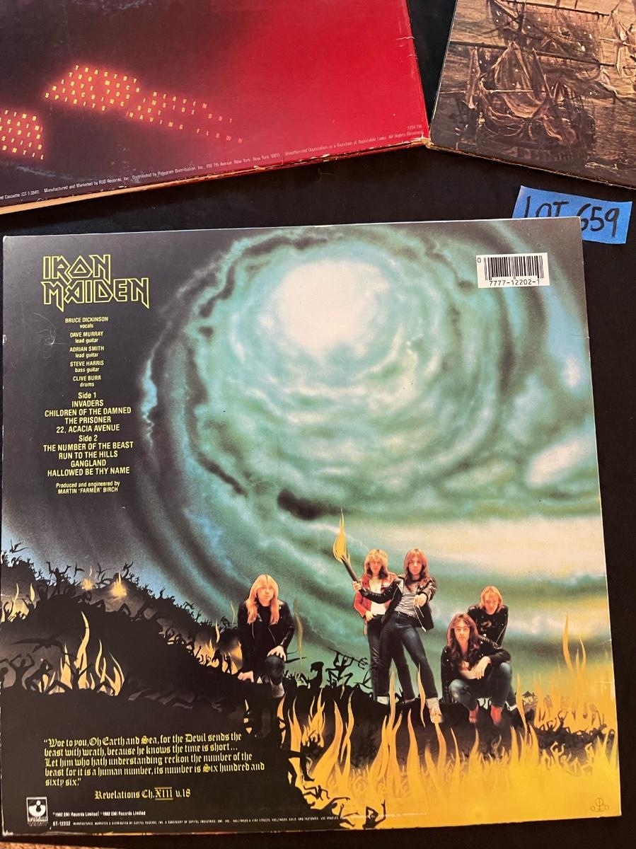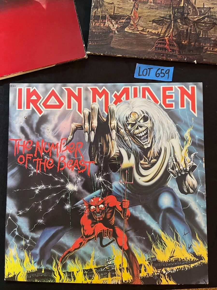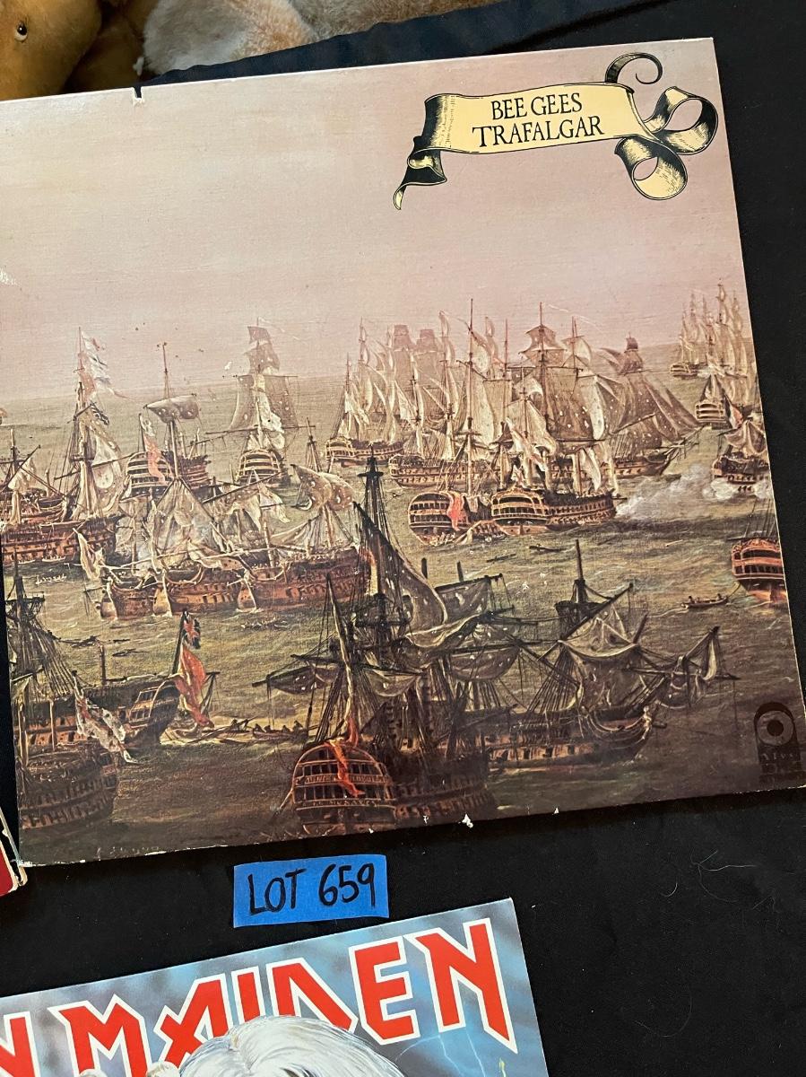 (2) Vintage Bee Gees Vinyls, Iron Maiden Vinyl.