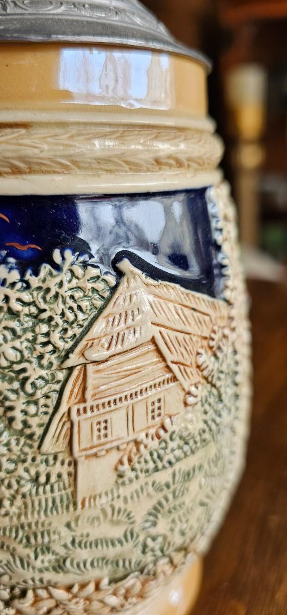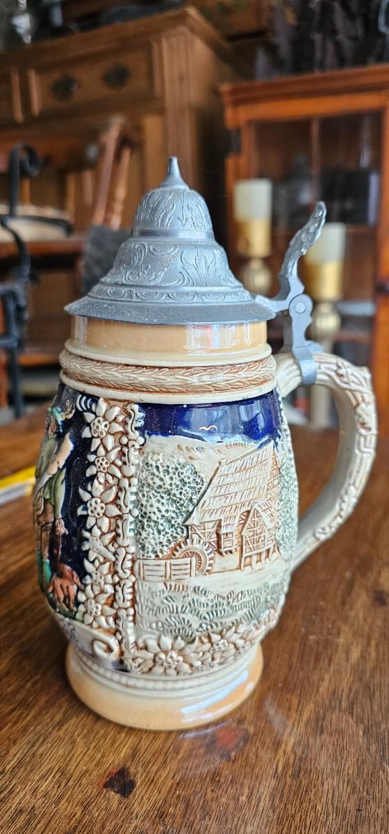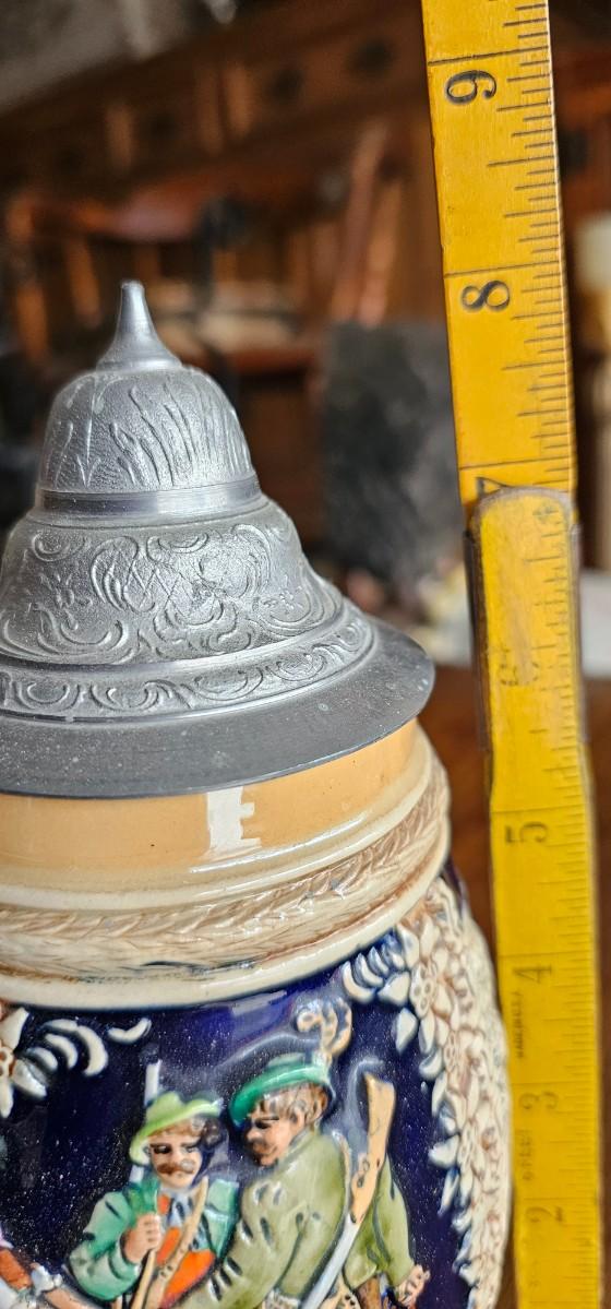 vintage # 3043 Blue Glaze Beer Stein & Pewter Lid