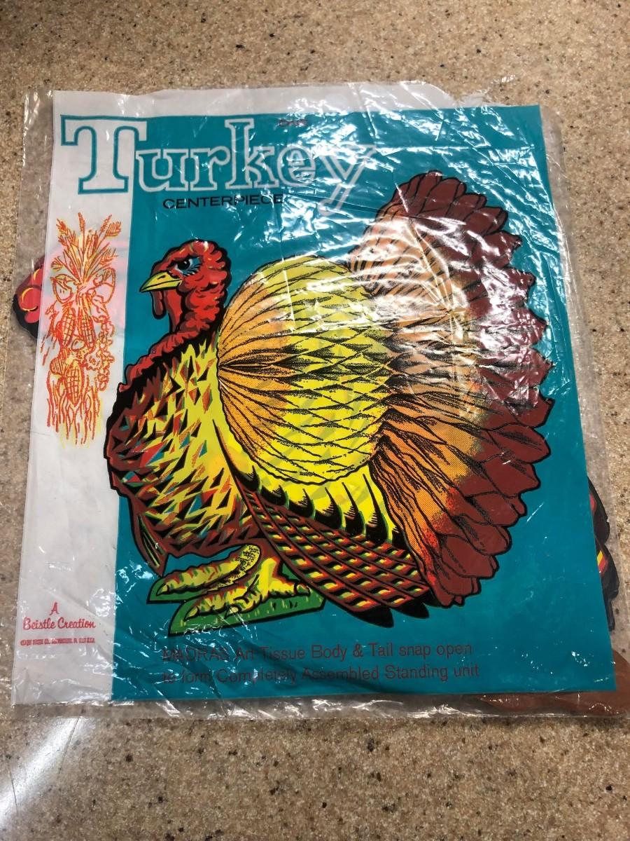 Vintage BEISTLE Diecut Turkey Honeycomb with Original Packaging Paper Thanksgiving.