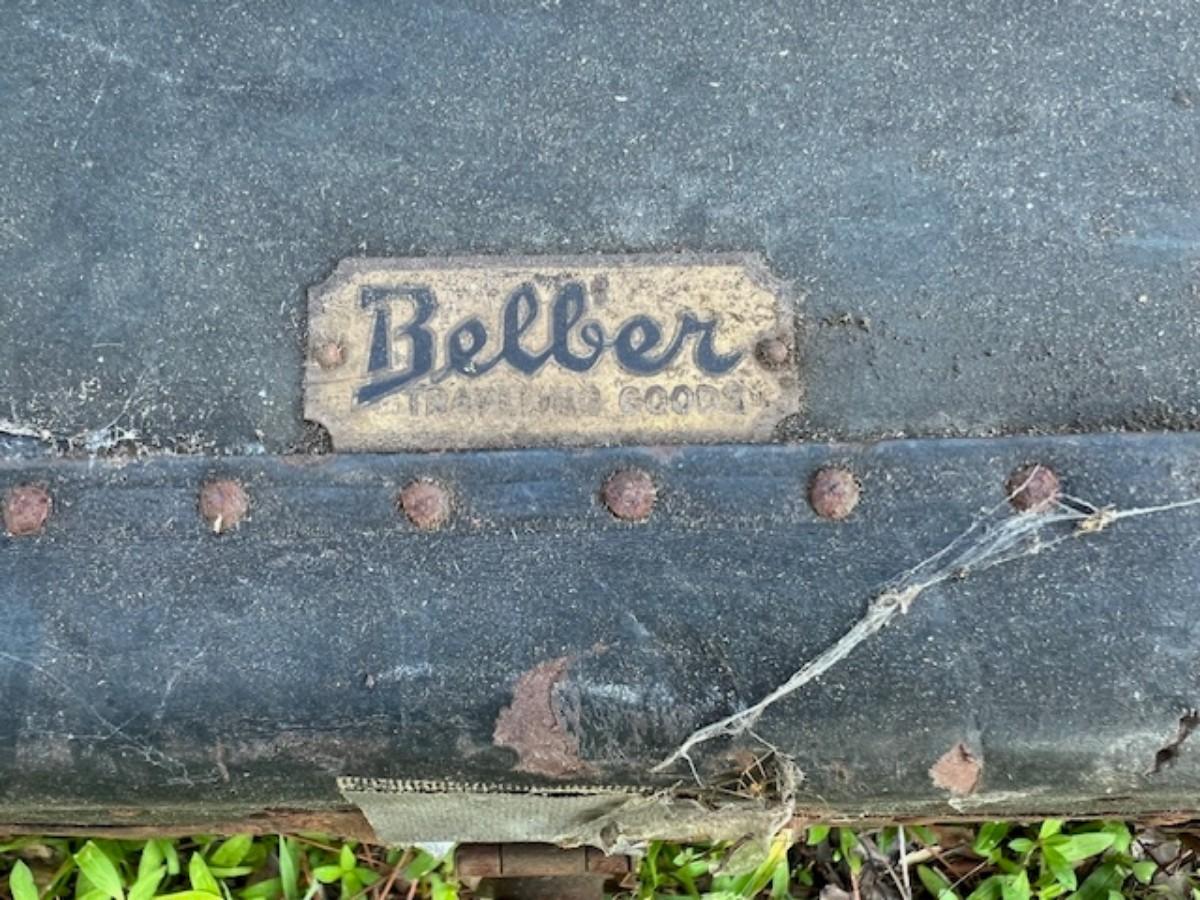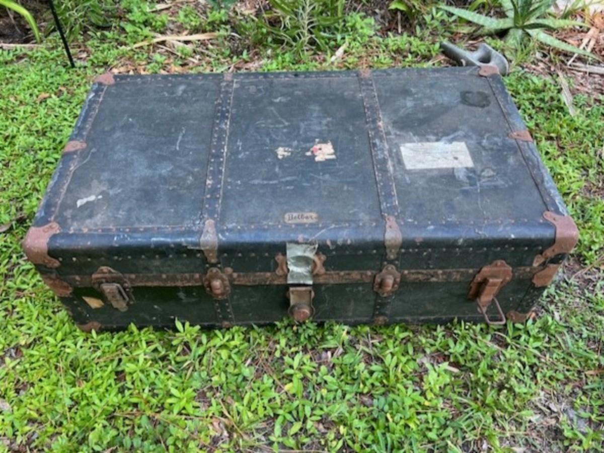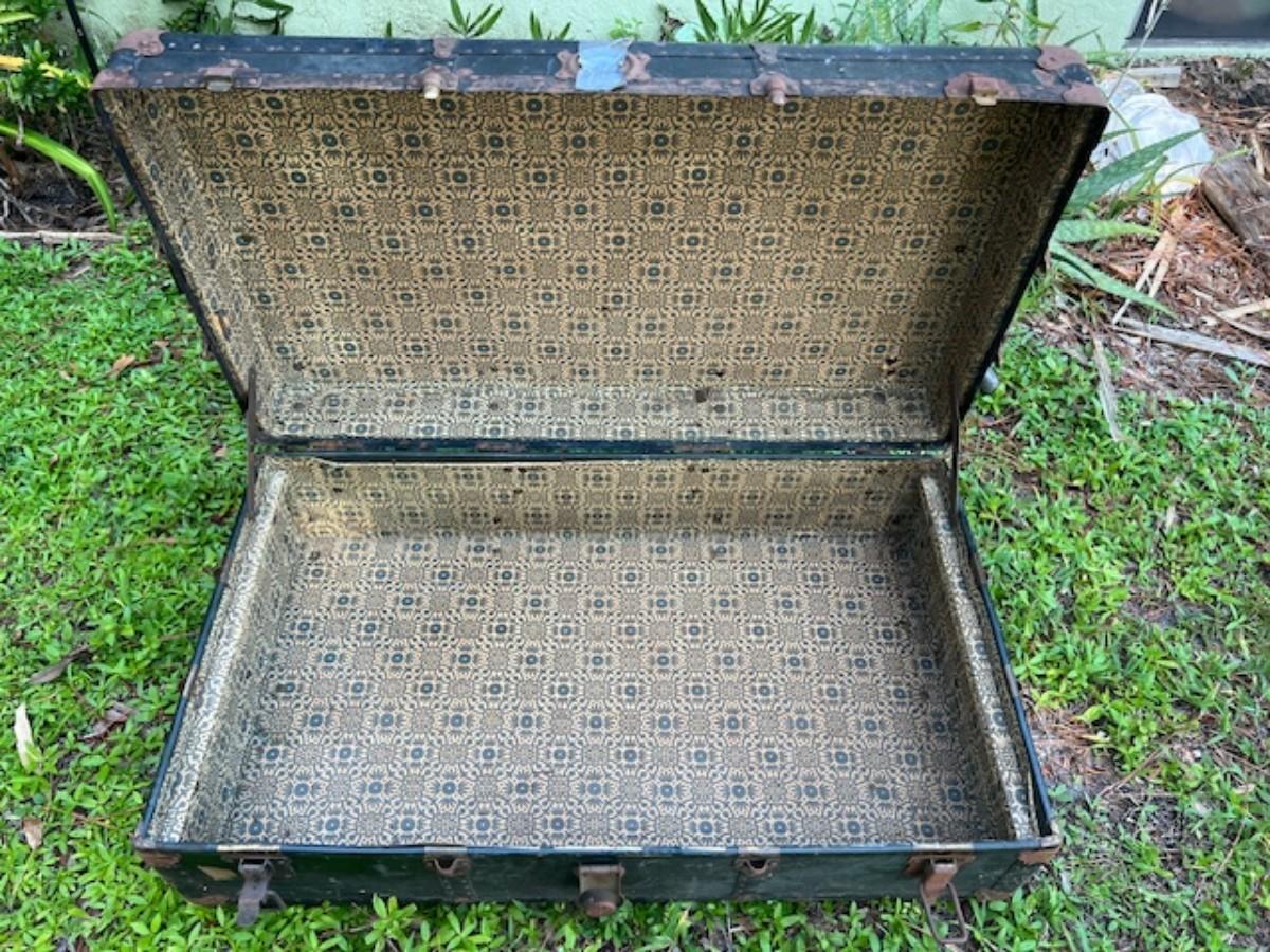 Age related wear, including surface rust on the hardware and broken leather handles. Measurement: 40"L x 22"D.