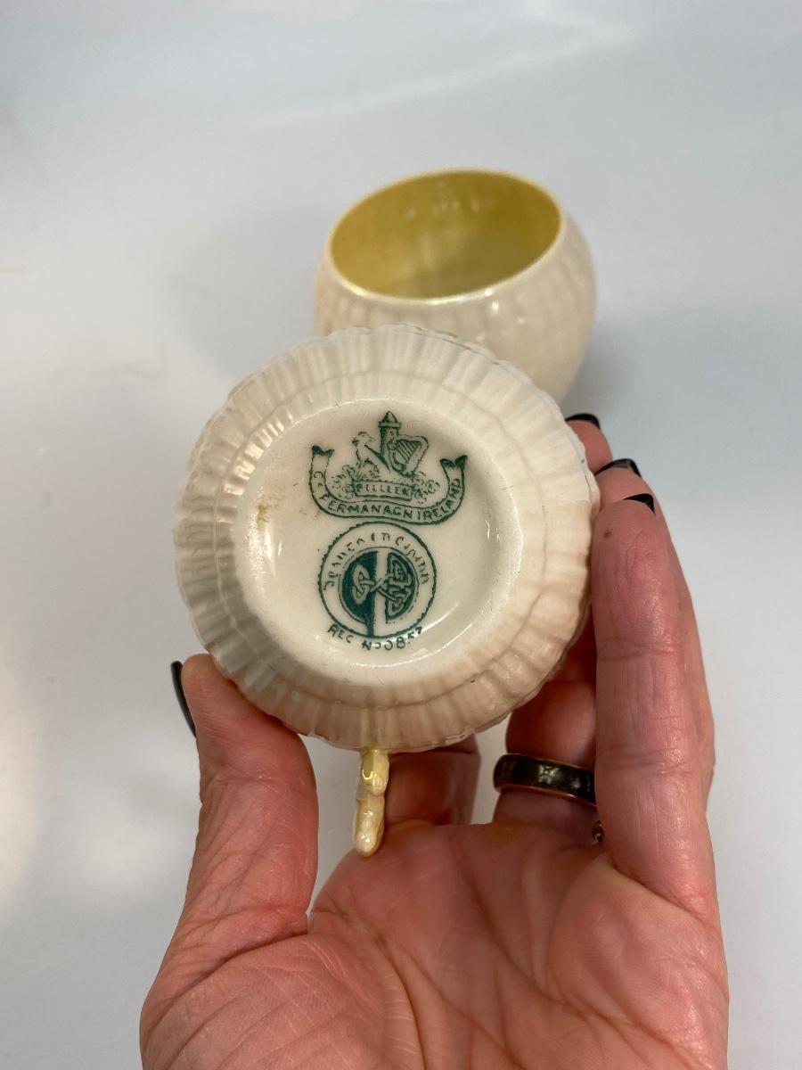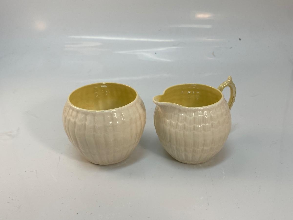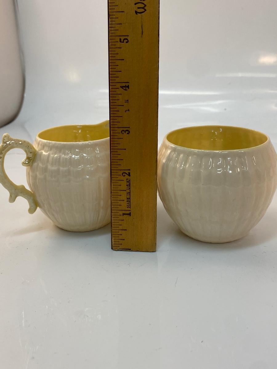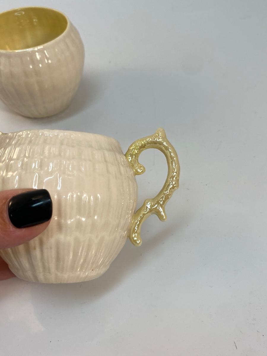 Vintage Belleek Green Label Yellow Limpet Cream and Sugar Set