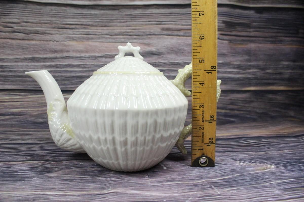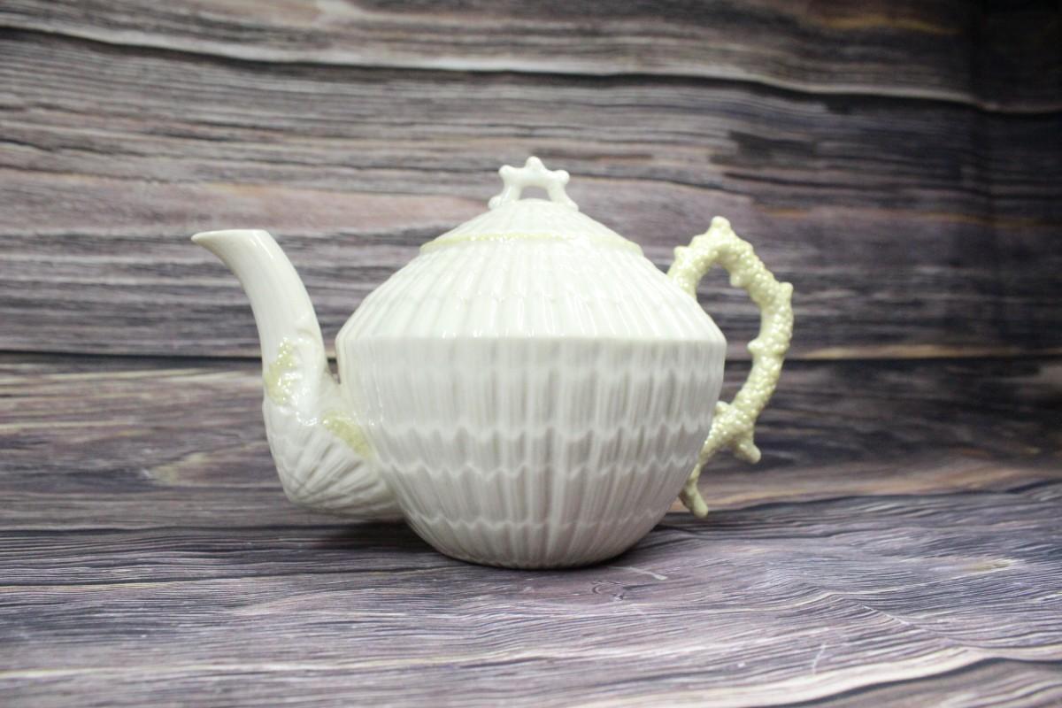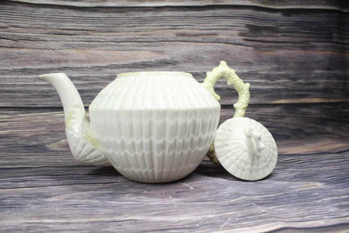 Vintage Belleek Irish Limpet/Neptune Ceramic Vine Teapot