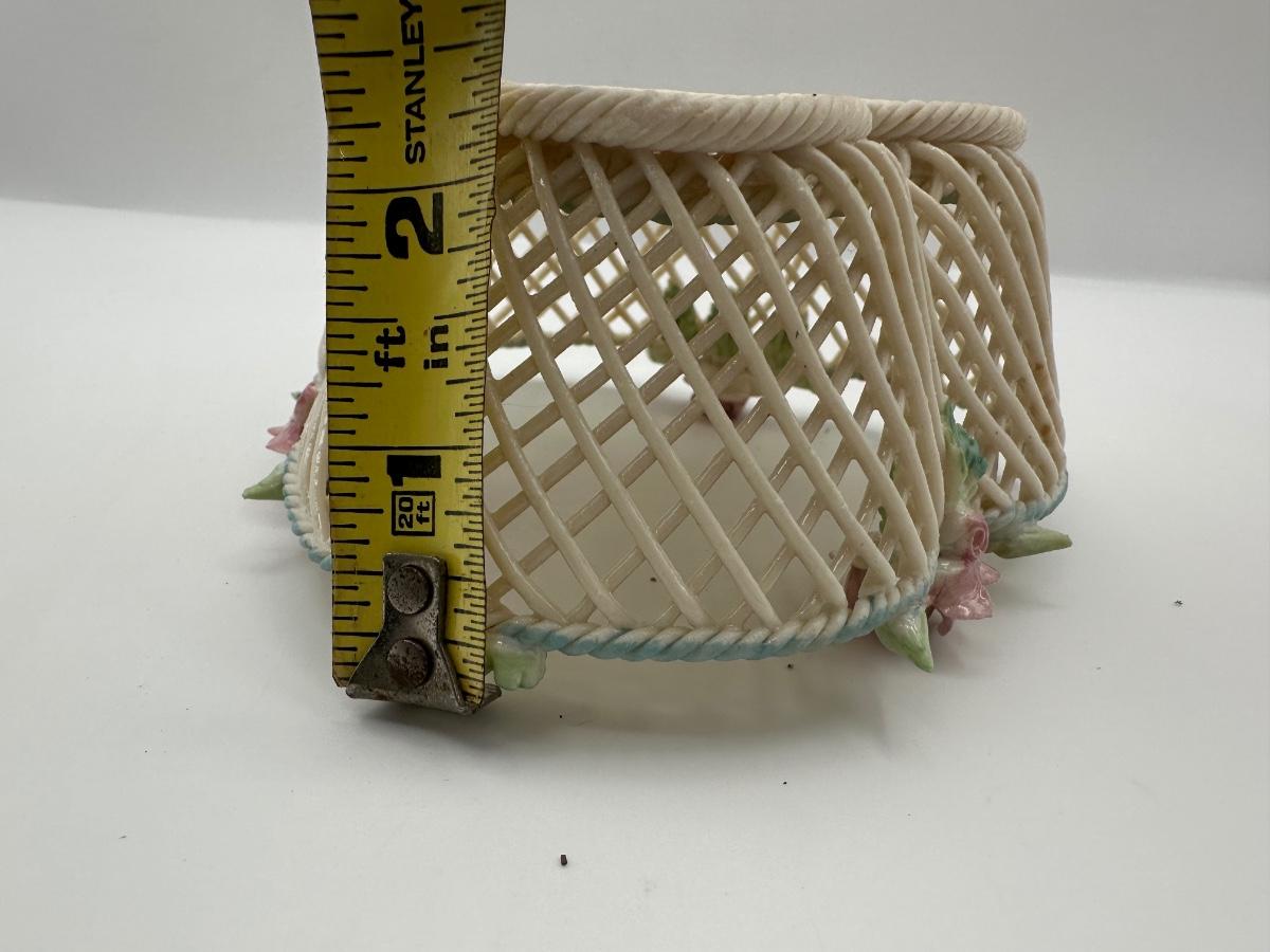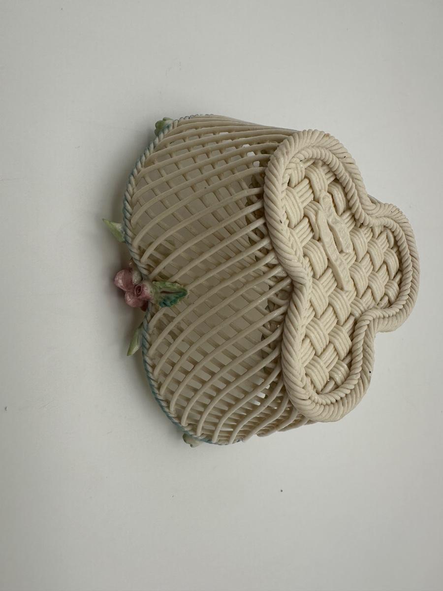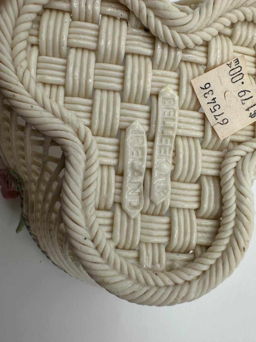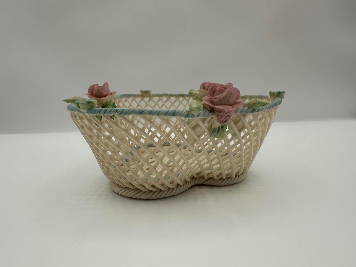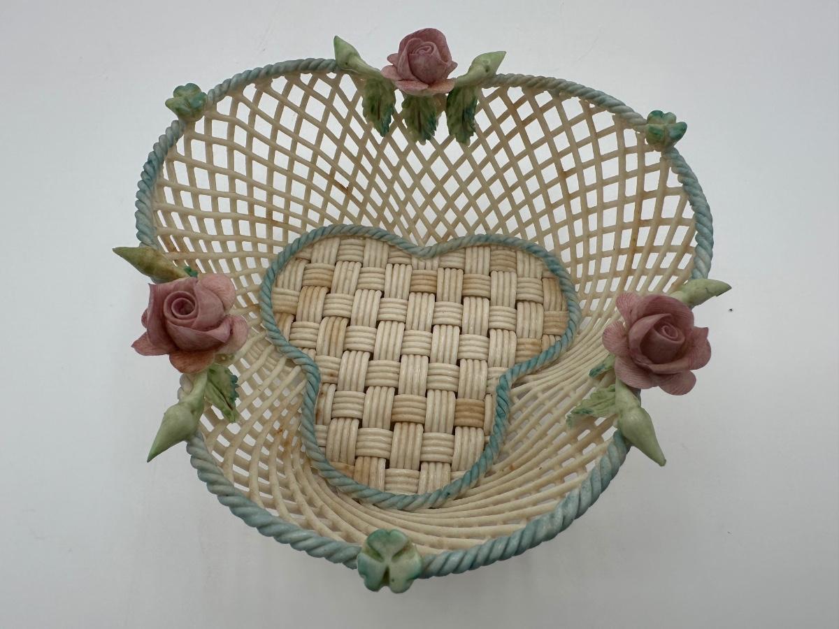 Vintage Belleek Shamrock Rose Clover Fine Porcelain Basket