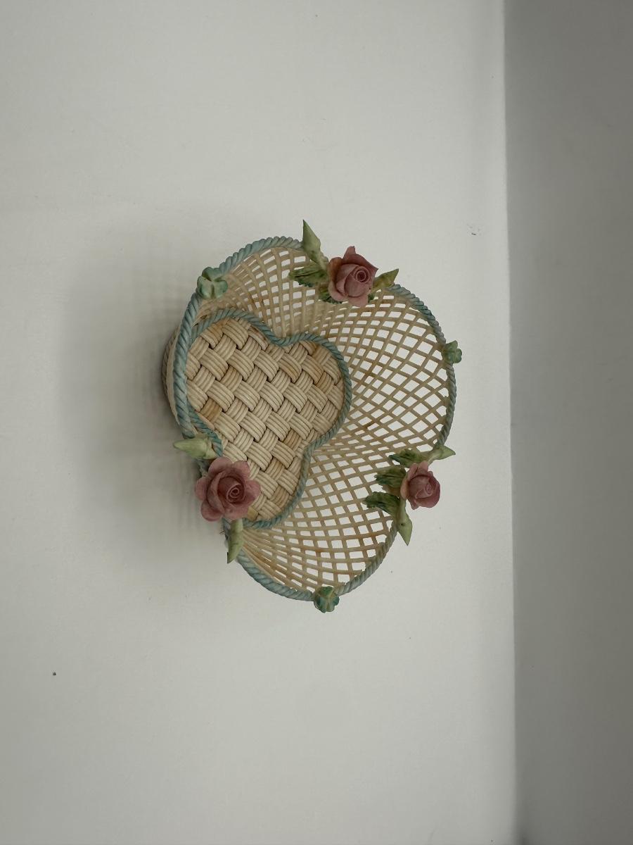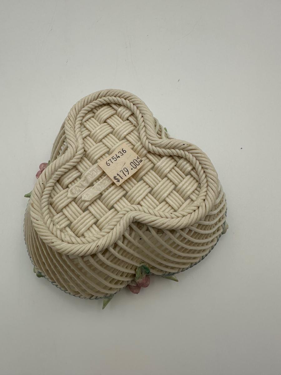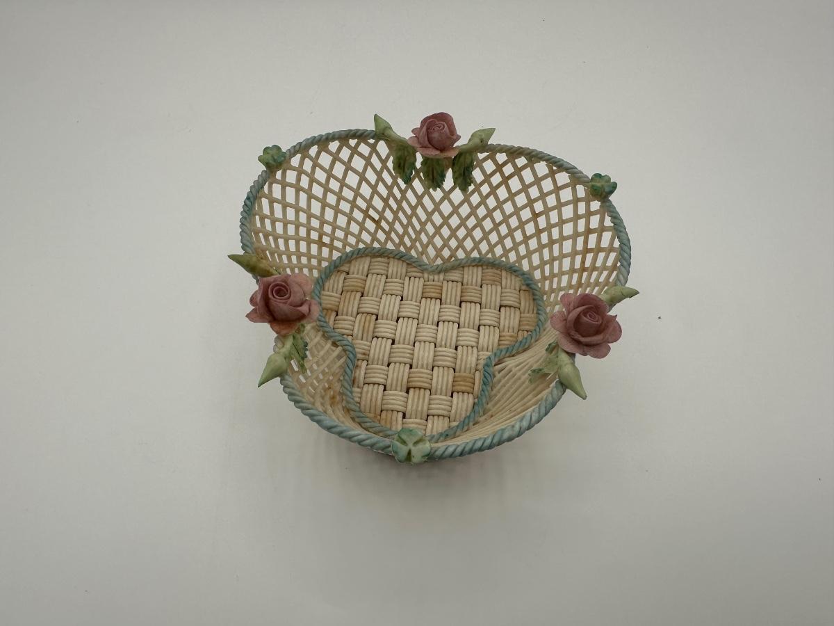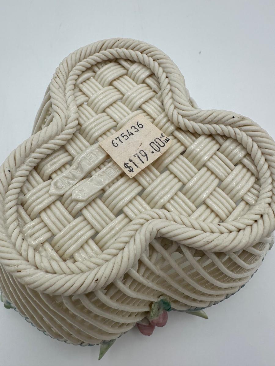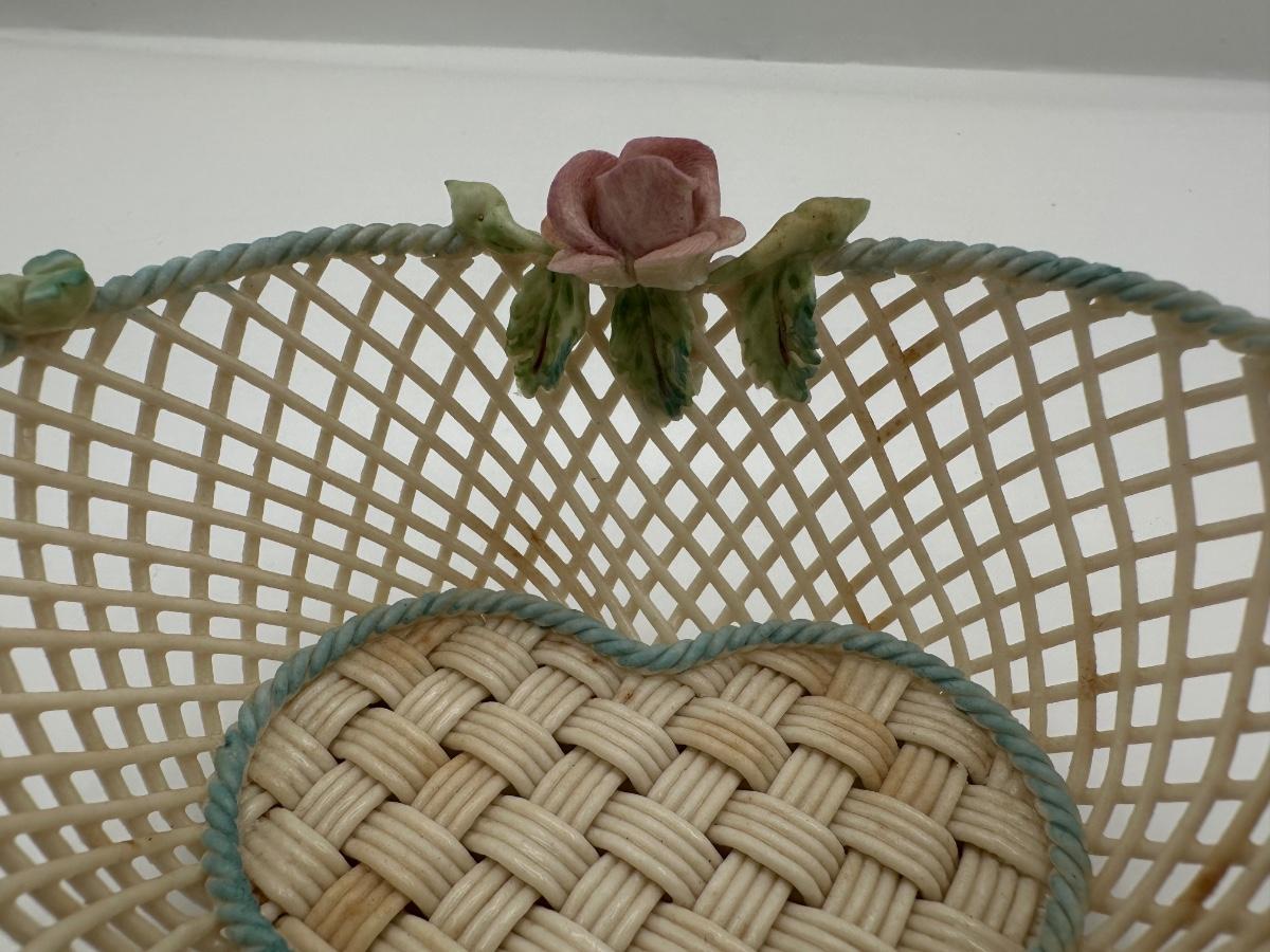 Vintage Belleek Shamrock Rose Clover Fine Porcelain Basket