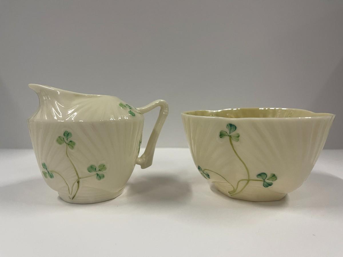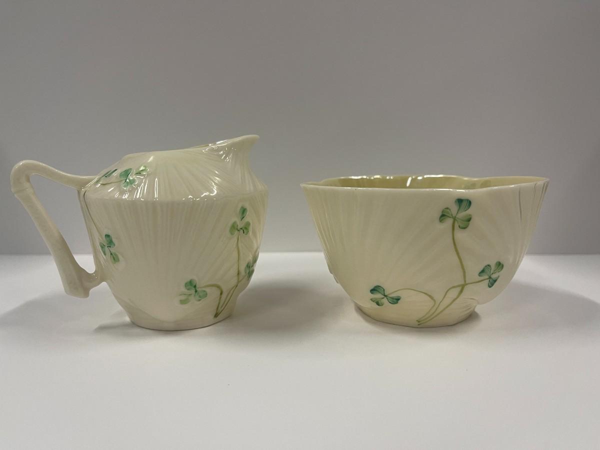 Vintage Belleek sugar and creamer, 6th mark (1965-1980)