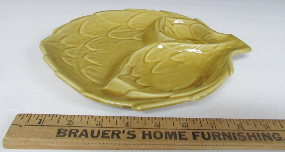 Vintage Belmar of California Pottery Divided Relish Dish Leaf Shaped