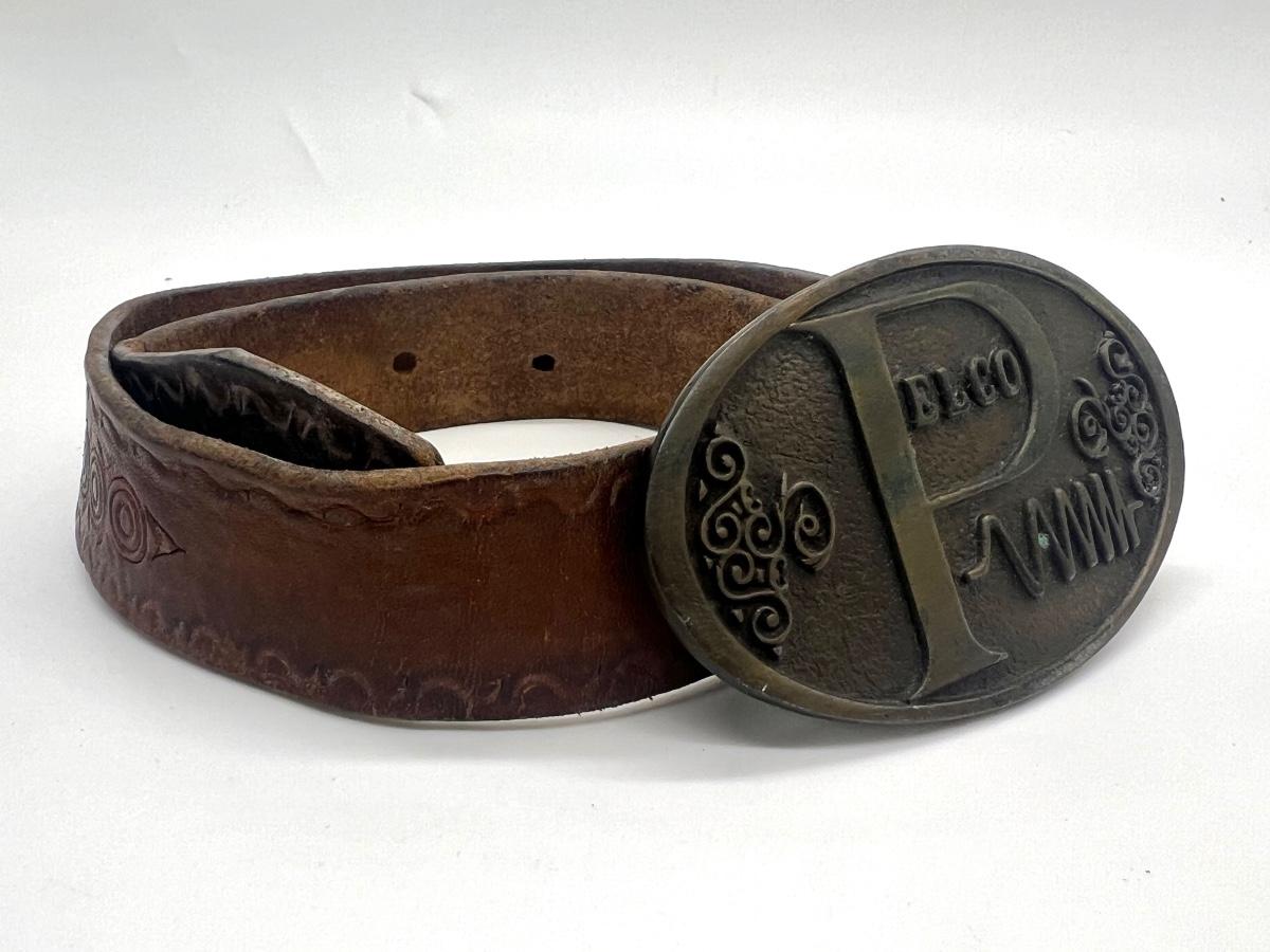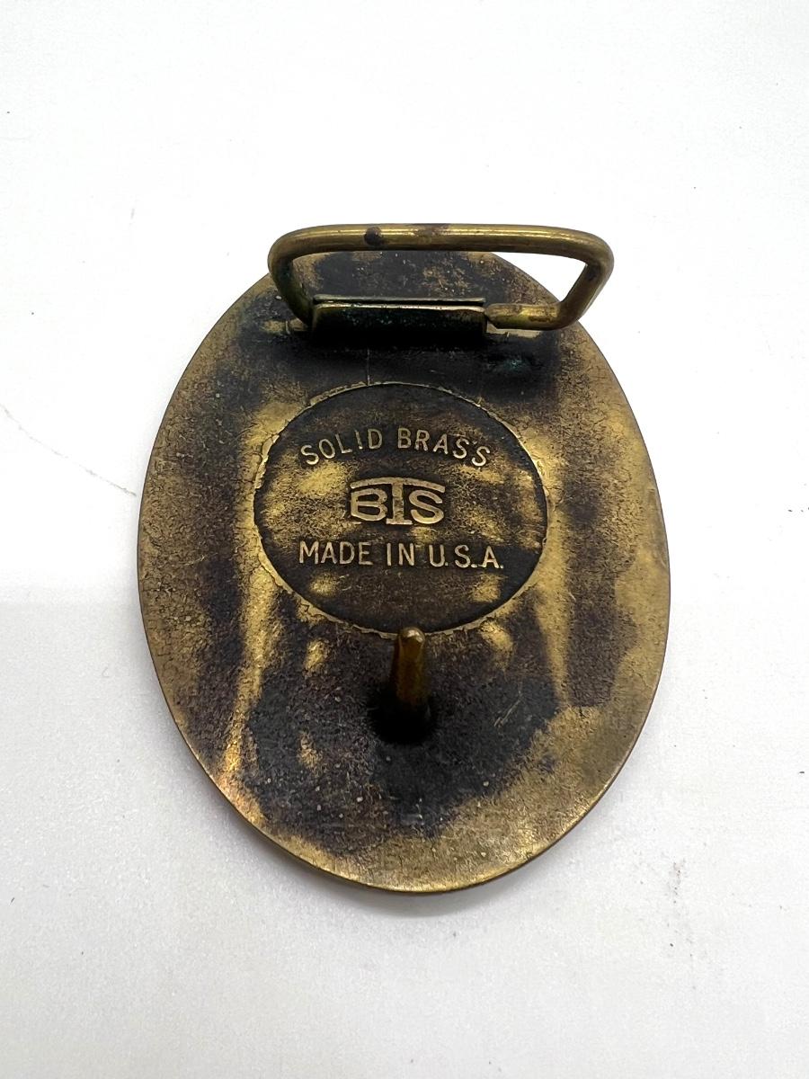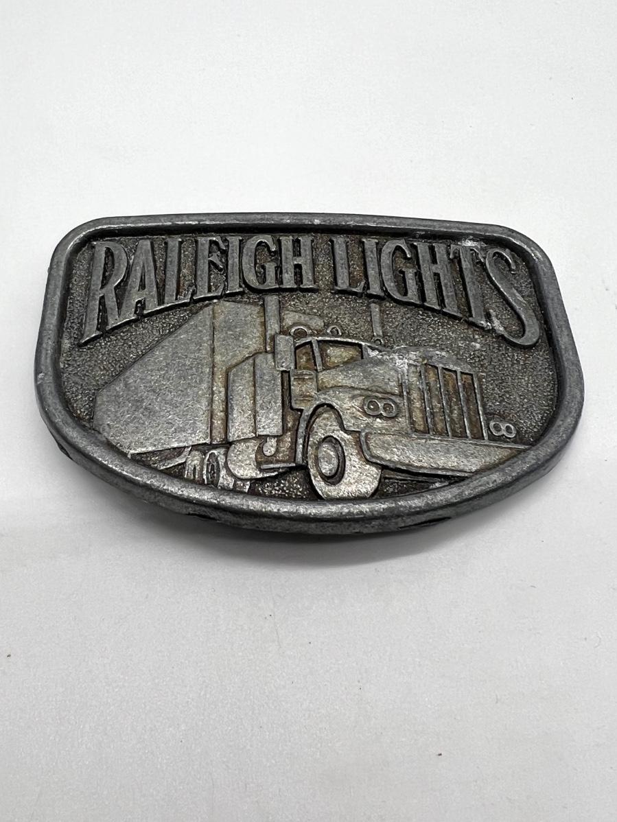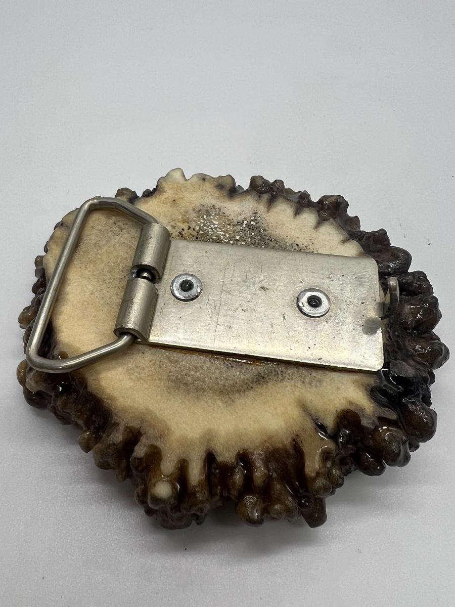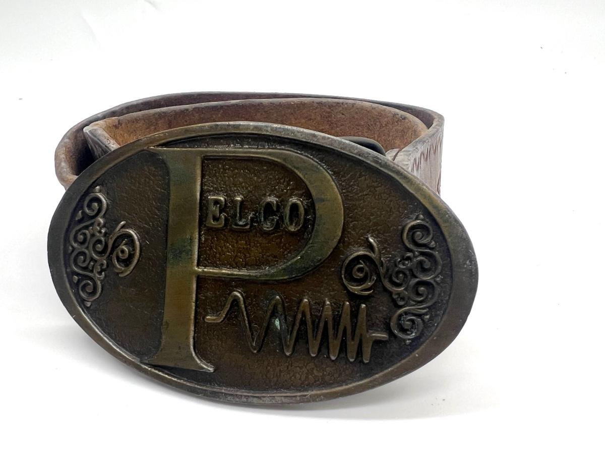 Five vintage Belt Buckle lot. VINTAGE 1970s PELCO security camera company, Vintage Elk Antler Rodeo Belt Buckle, Vintage metal Pewter RALEIGH LIGHTS belt buckle, Buffalo nickel coin belt, buckle Indiana metal craft and Hydradyne hydraulics fluid power solid brass belt buckle.