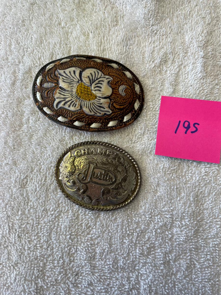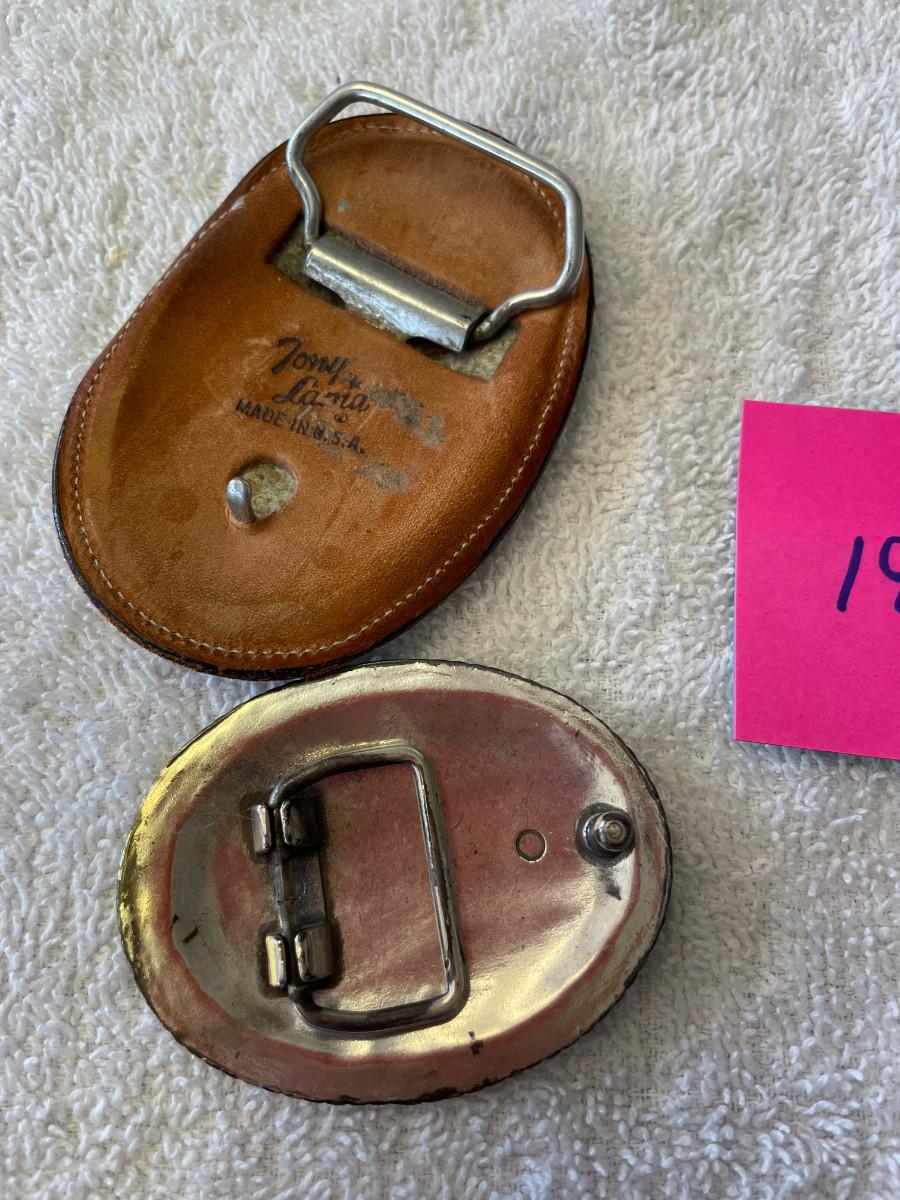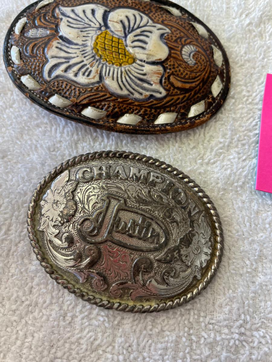 Tony Loma leather buckle & Justin boots buckle. Have some wear, but are cool!